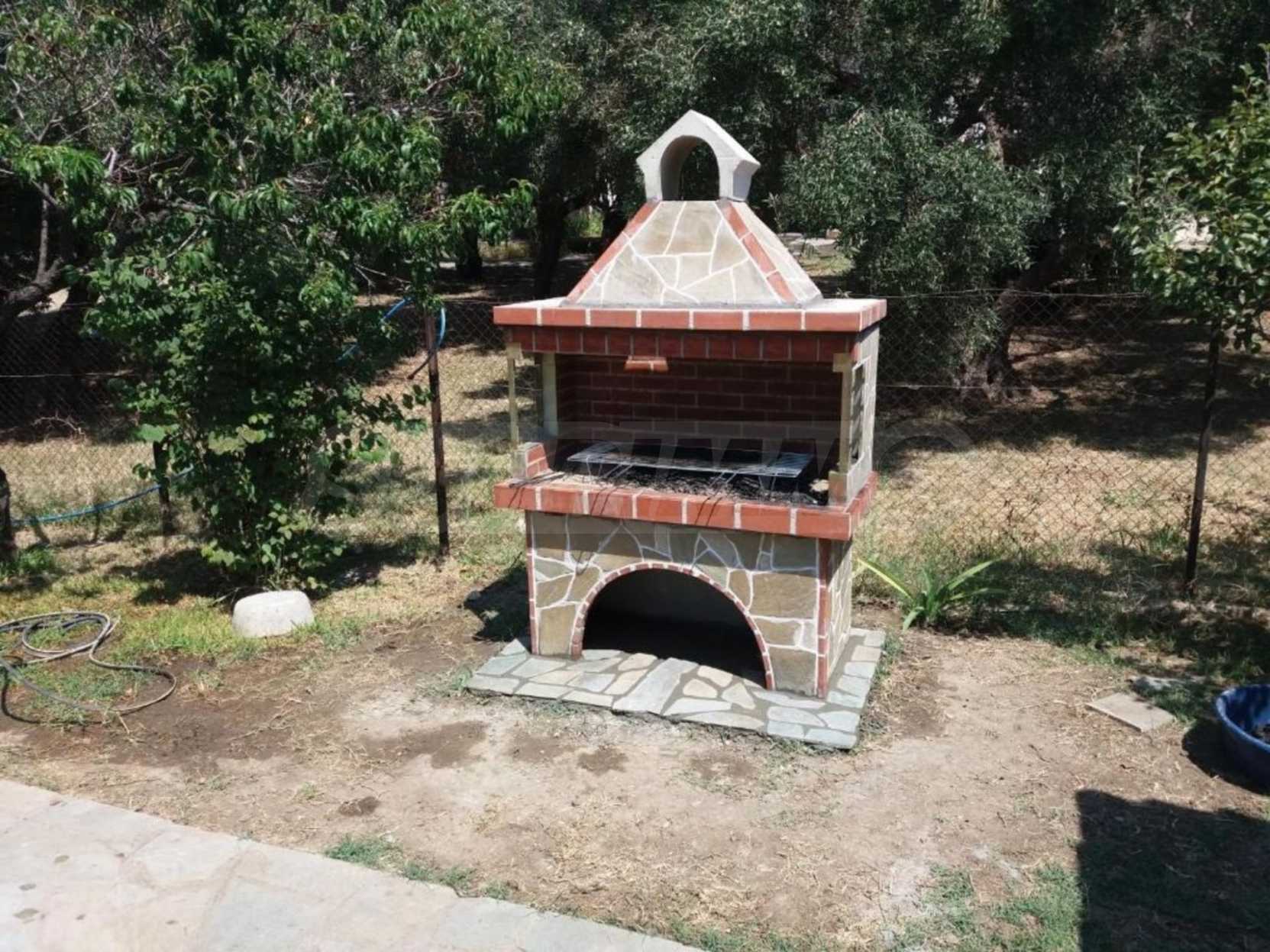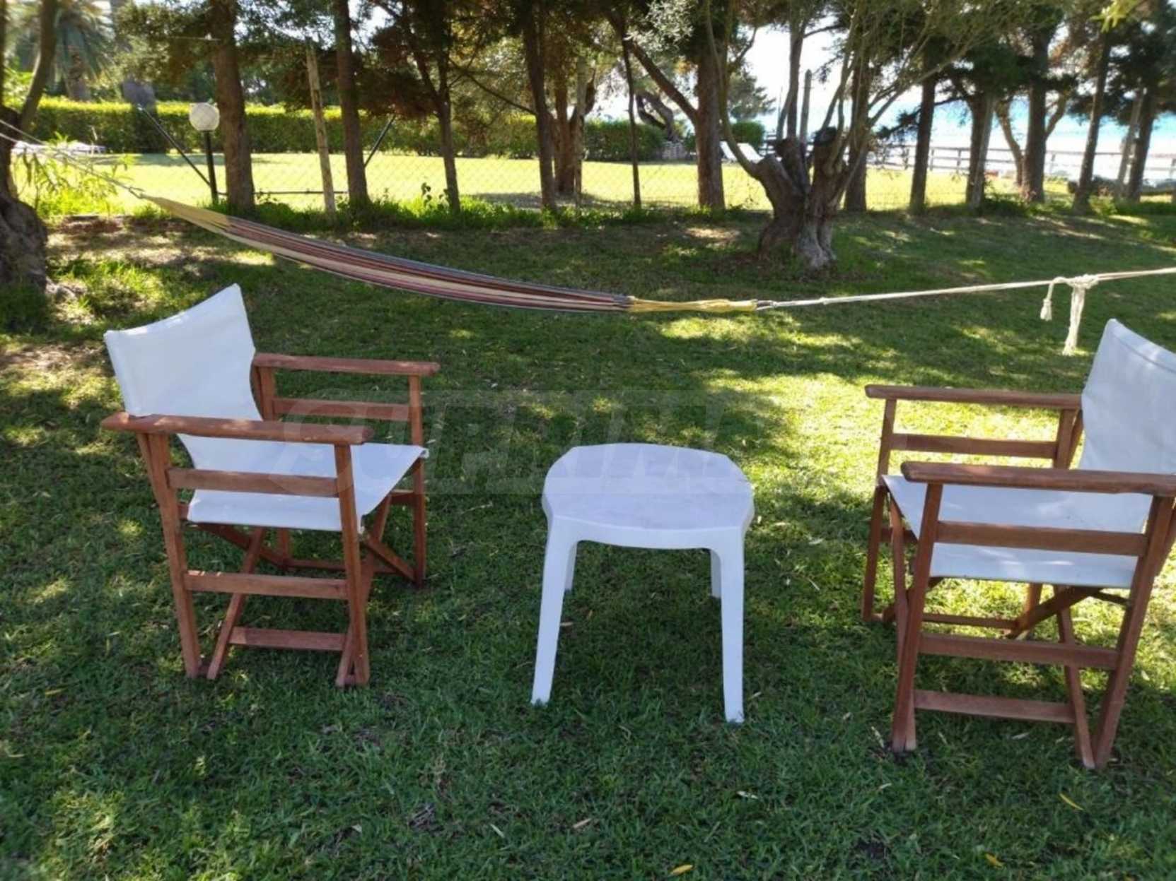 Beachfront detached house in Kassandra, Halkidiki, 66 m2, with a garden of 1100 m2, with lawn, drilling, plants, olive trees and a beautiful cobblestone courtyard. It has two bedrooms, two bathrooms and a gorgeous view to the mountain and the sea. It is very close to the village, in a tranquil spot, with access to the highway.
