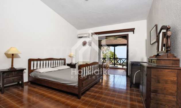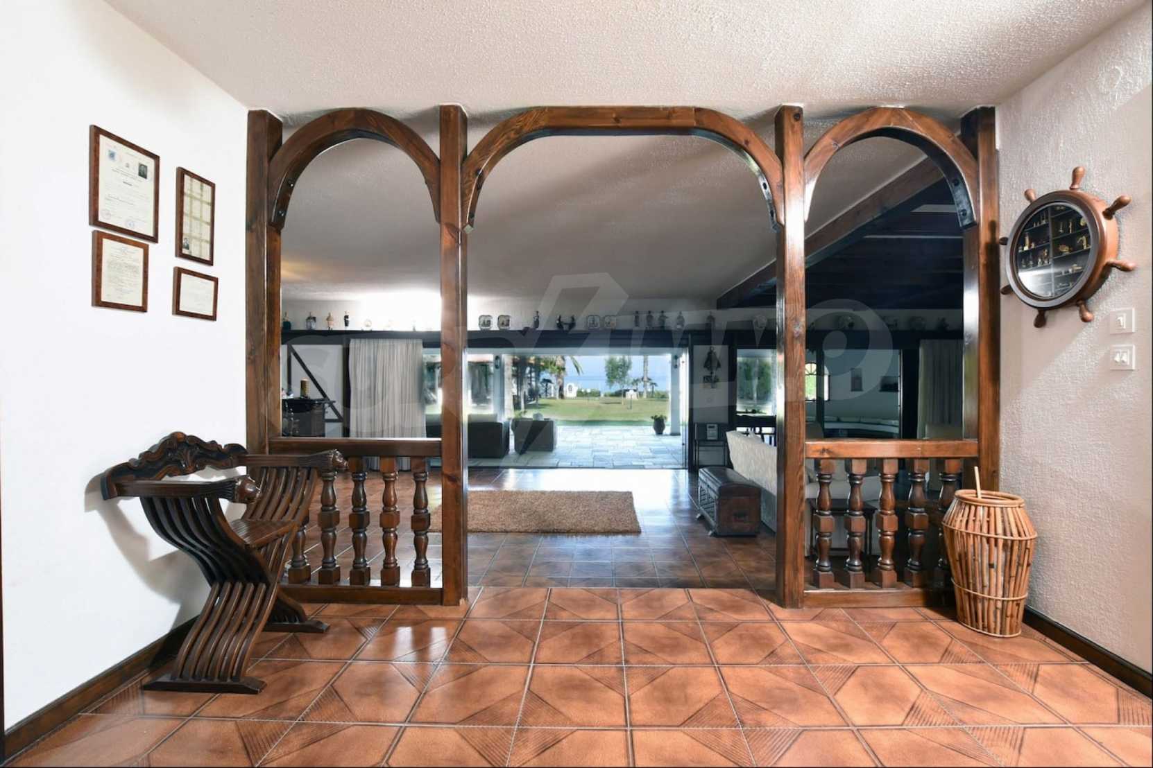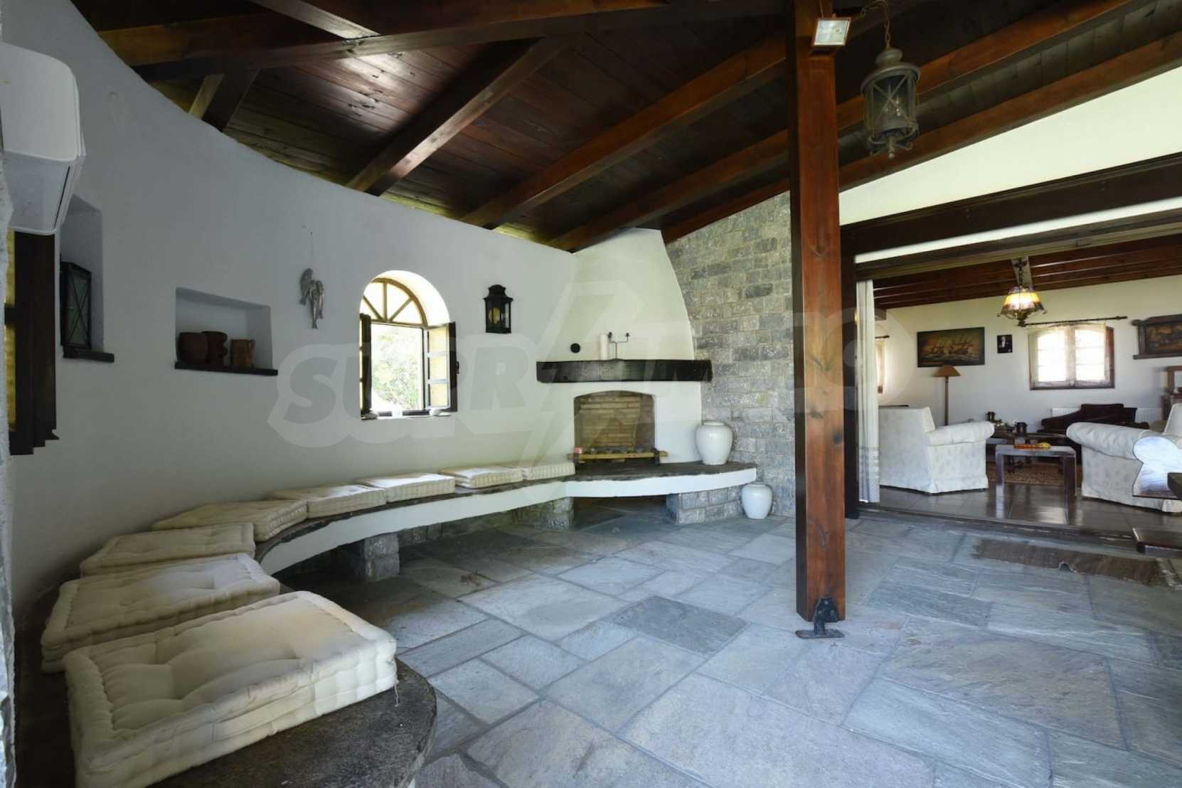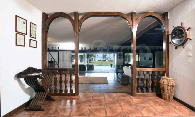 We offer you this villa with a total area of 400 m2. It was constructed in 2000. The property has fireplace and local heating. An air-conditioning system - also available. Armored front door and wooden window frames are available in the property. The furniture and appliances that are available include: an air-conditioner and an electric boiler. The property is connected to communal sewage system. Some of the other available facilities that you will certainly consider important include: a balcony, a bathroom with toilet, a parking space, a storage room and a secure entry system. From the inside you will be able to enjoy wonderful sea views.