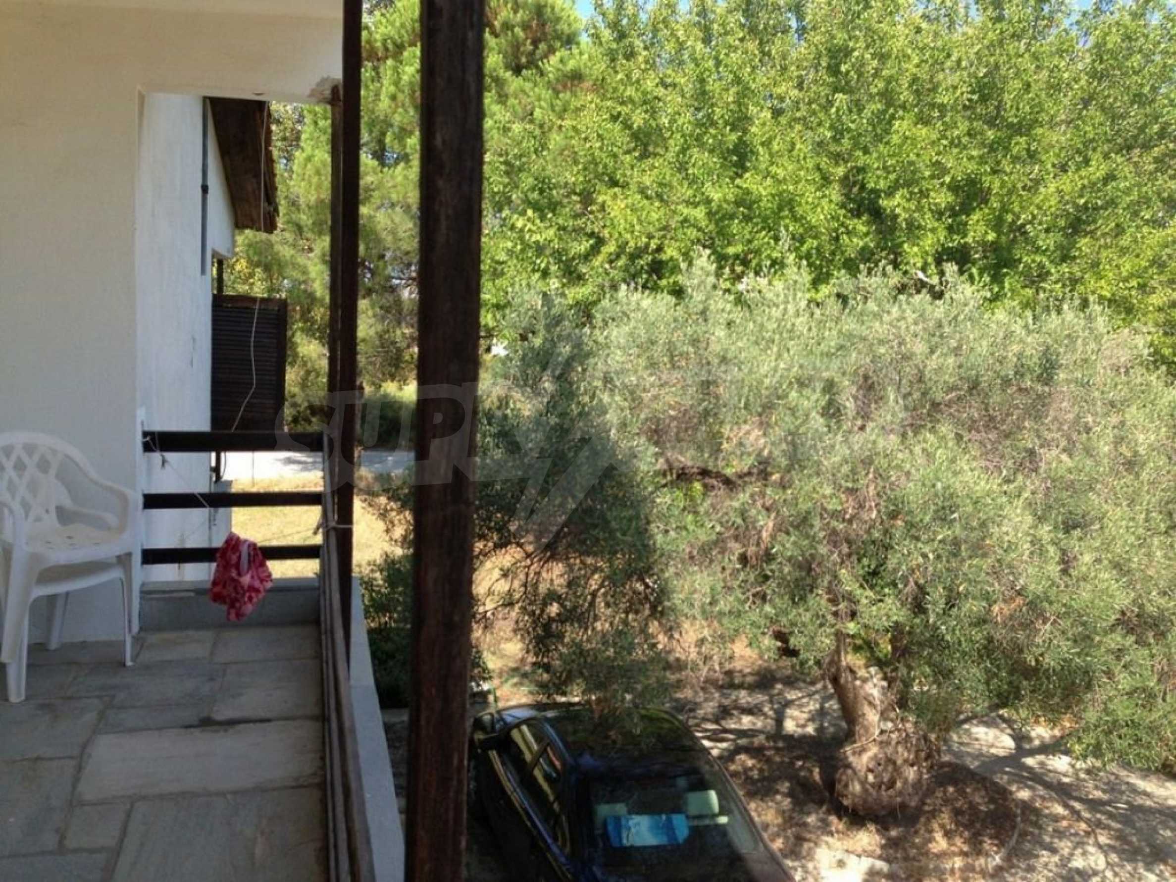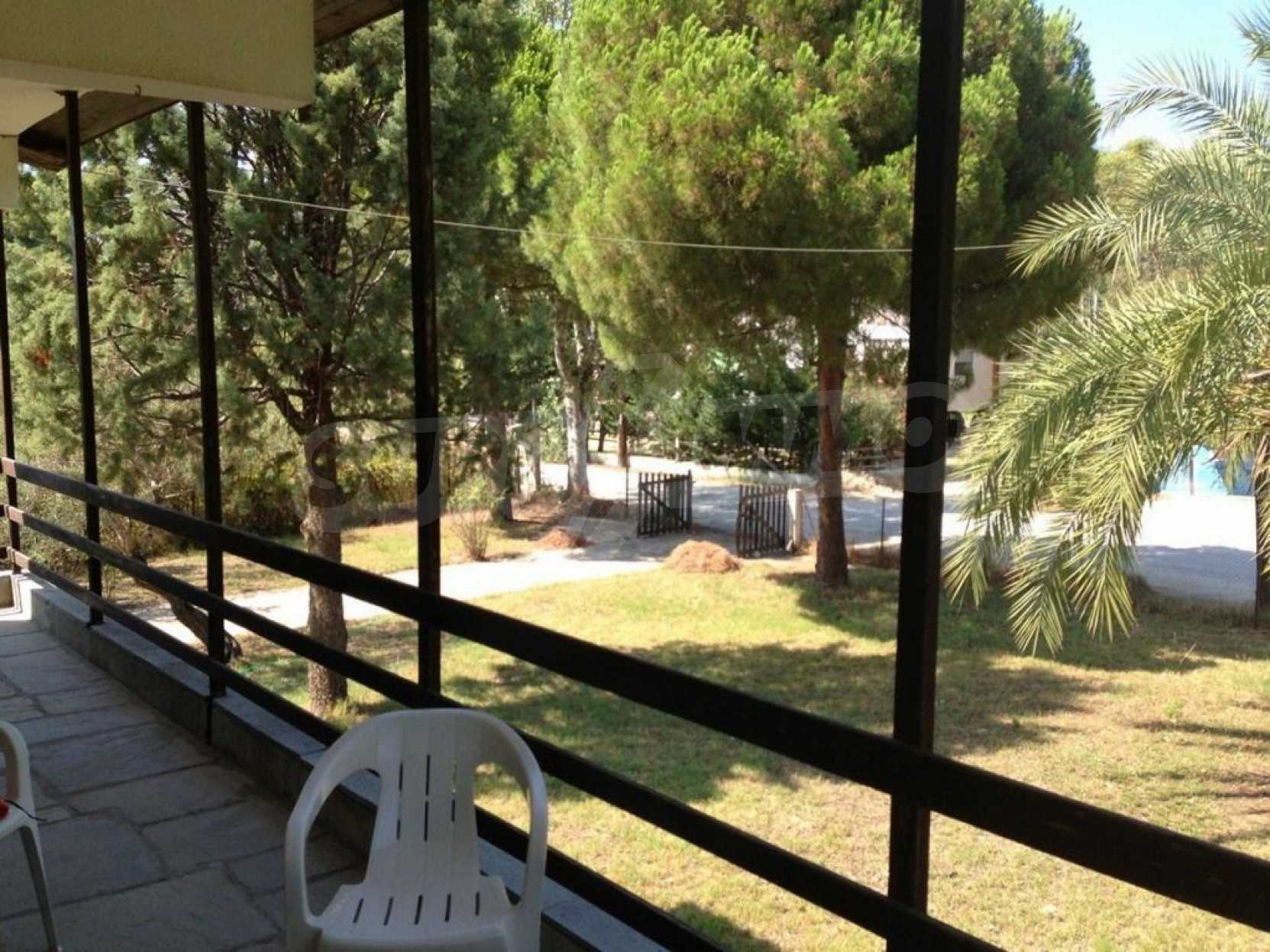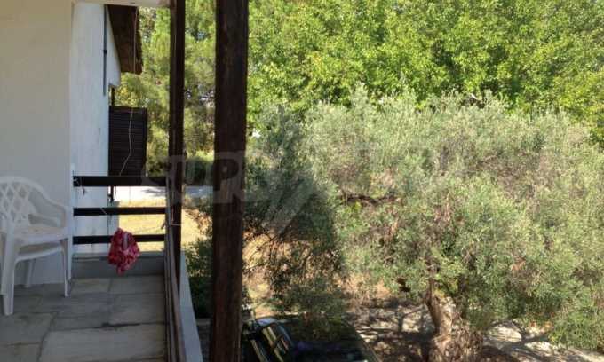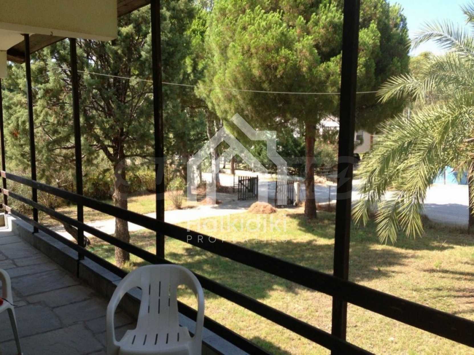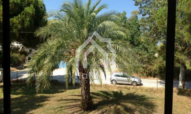 Detached house in Kassandra, Halkidiki, on the second line, only 100 m from a beautiful beach. It is built on a 4 acres plot which includes a gazebo, barbecue, palm trees and olive trees, a carefully groomed garden and an outdoors shower. The house has a floor area of 120 sqm and on the ground floor has a covered garage. The main residence is on the first floor and consists of a living room, kitchen, two bedrooms and a bathroom.