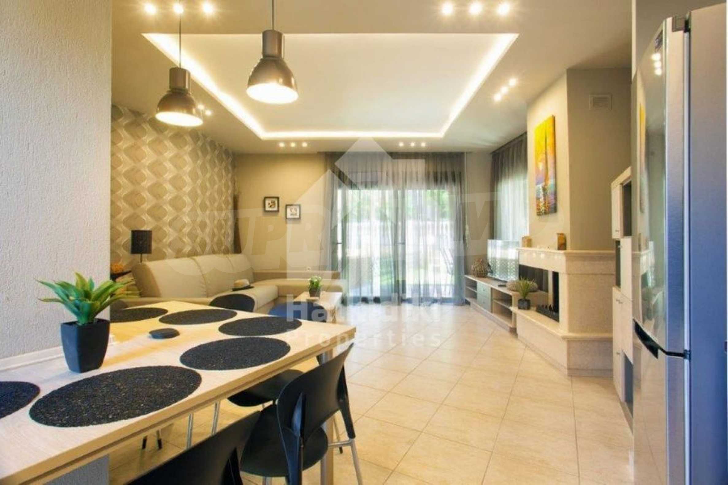 New constructed complex of maisonettes located 50 meters from the sea. The ground floor consists of living room, kitchen and WC. The first floor has one bedroom with double bed, bedroom with two single beds and bathroom. House has all the necessary equipment and appliances. There is a cozy veranda close to the house where you may spend warm summer evenings.