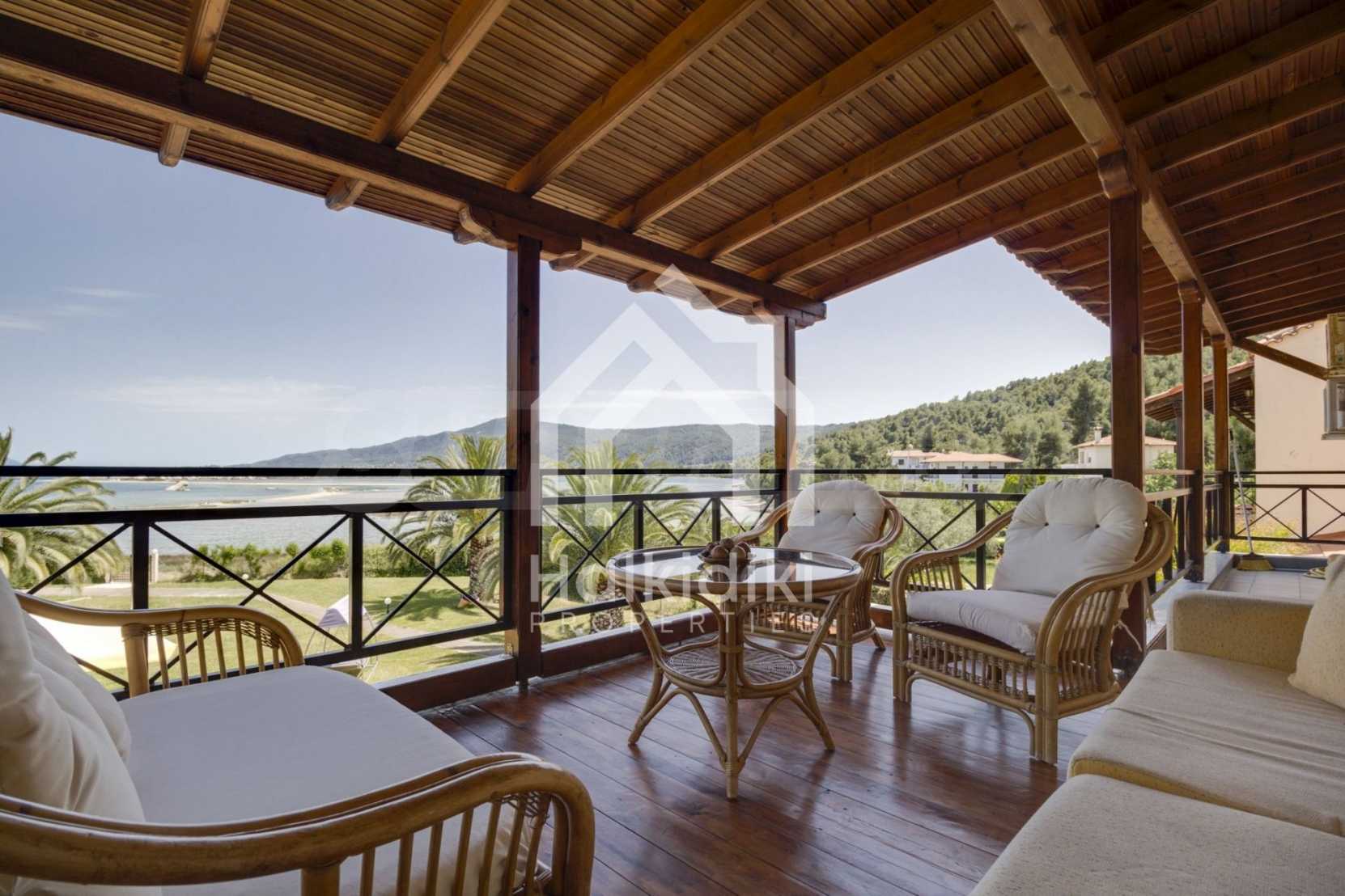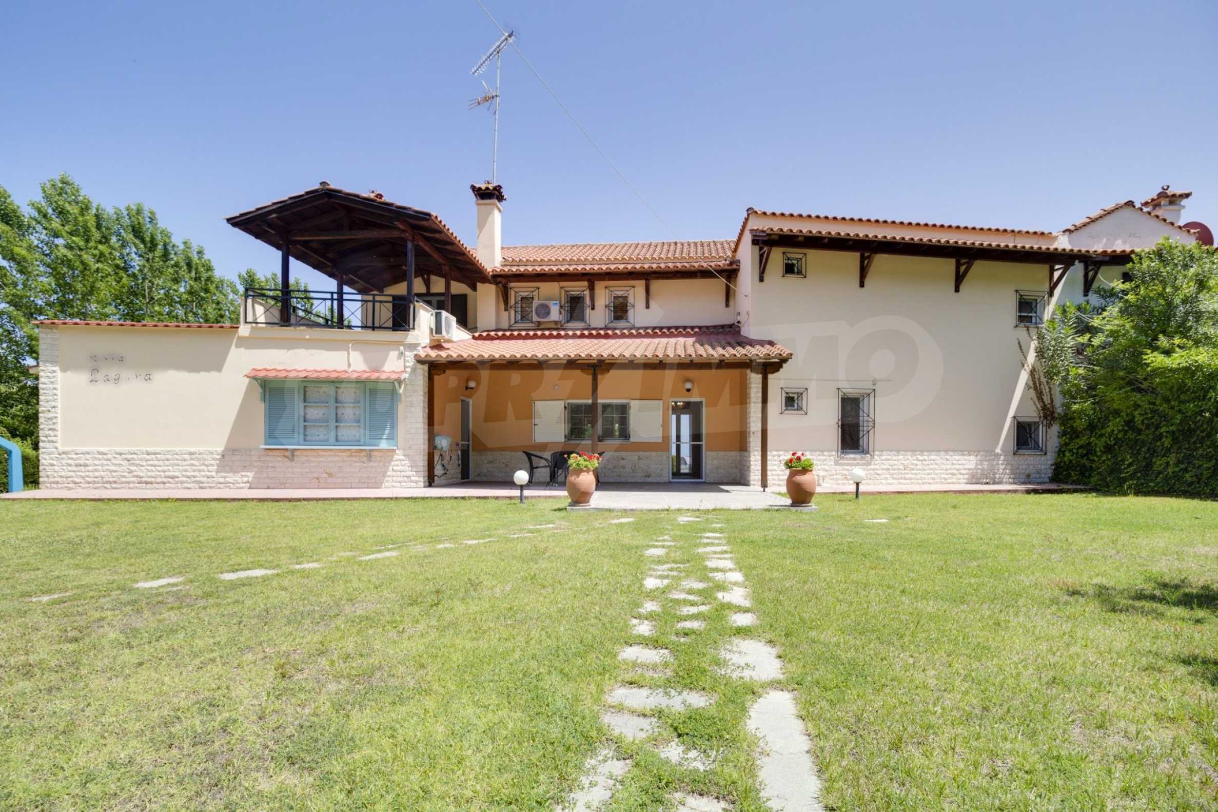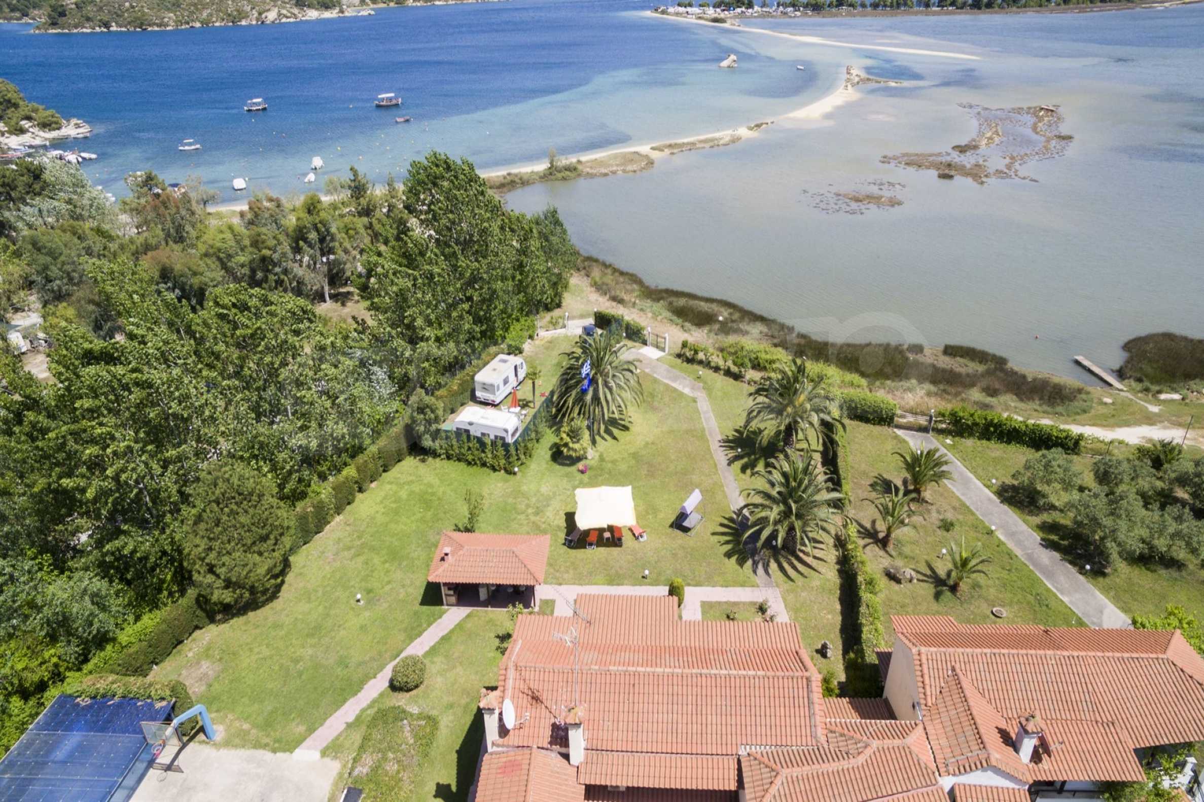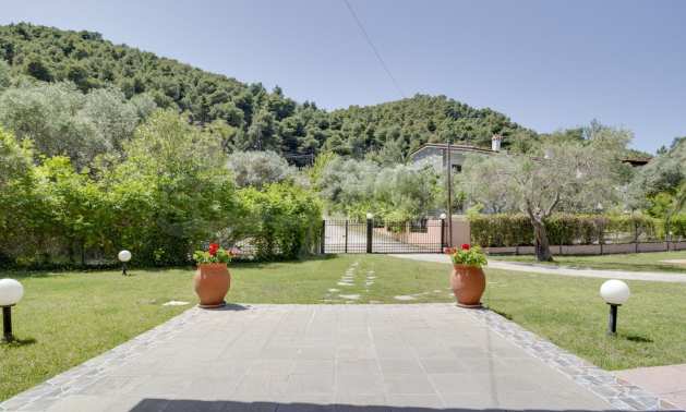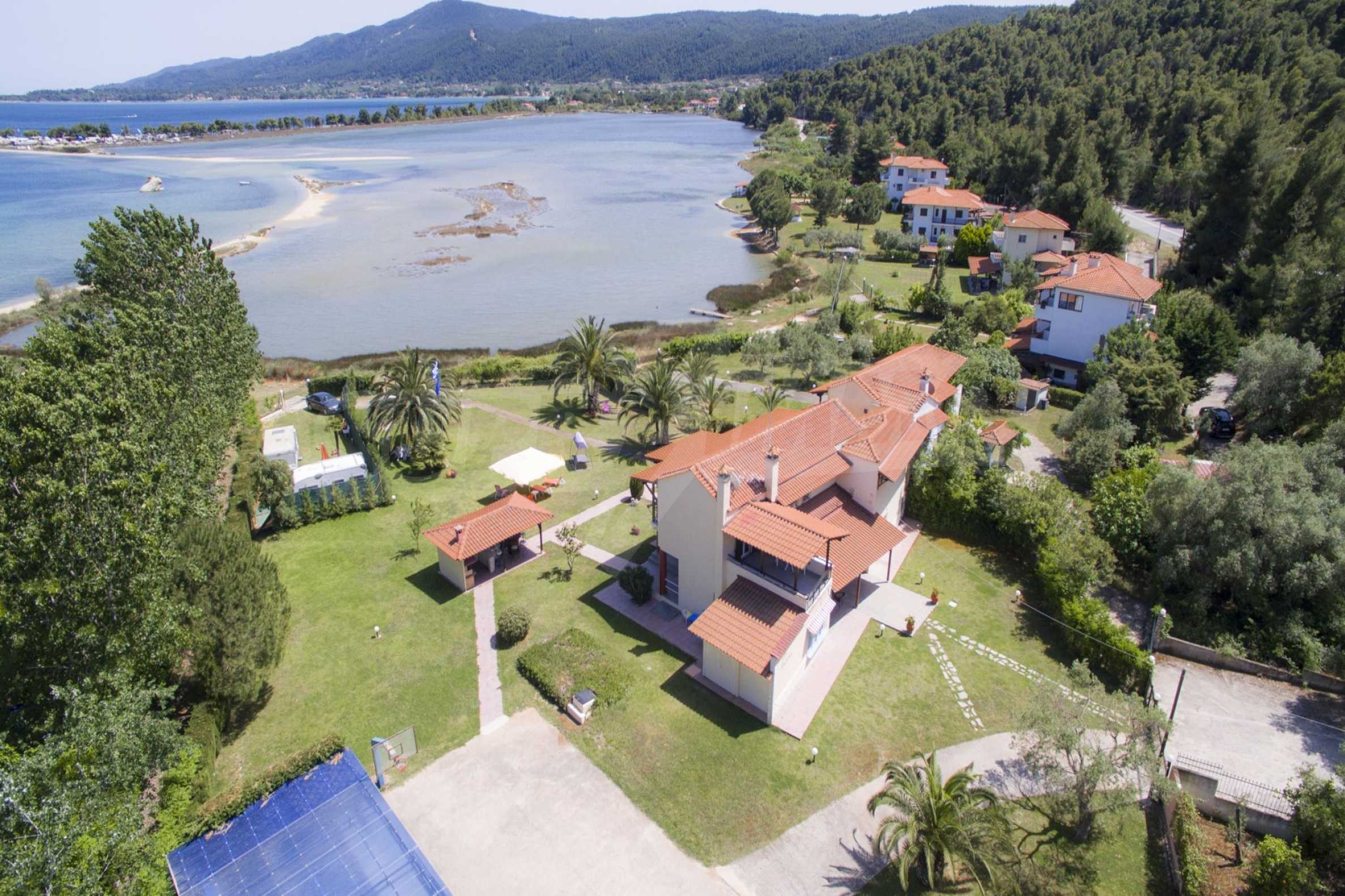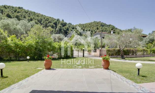 Luxurious detached house in Sithonia, Halkidiki, just in front of the beach, with amazing view to the sea and the mountains. The house consists of three floors and includes two living rooms, kitchen, five bedrooms and four bathrooms. The house has all the appliances, fitted closets, alarm system and mosquito nets in every window. It is built on a piece of land which covers 3.500 sqm. The garden is lovely groomed and has a lot of trees, such as palm trees and lemoncypresses. Also there is a kitchen with barbeque, an autonomus guest house (40 sqm), a well and six covered parking lots