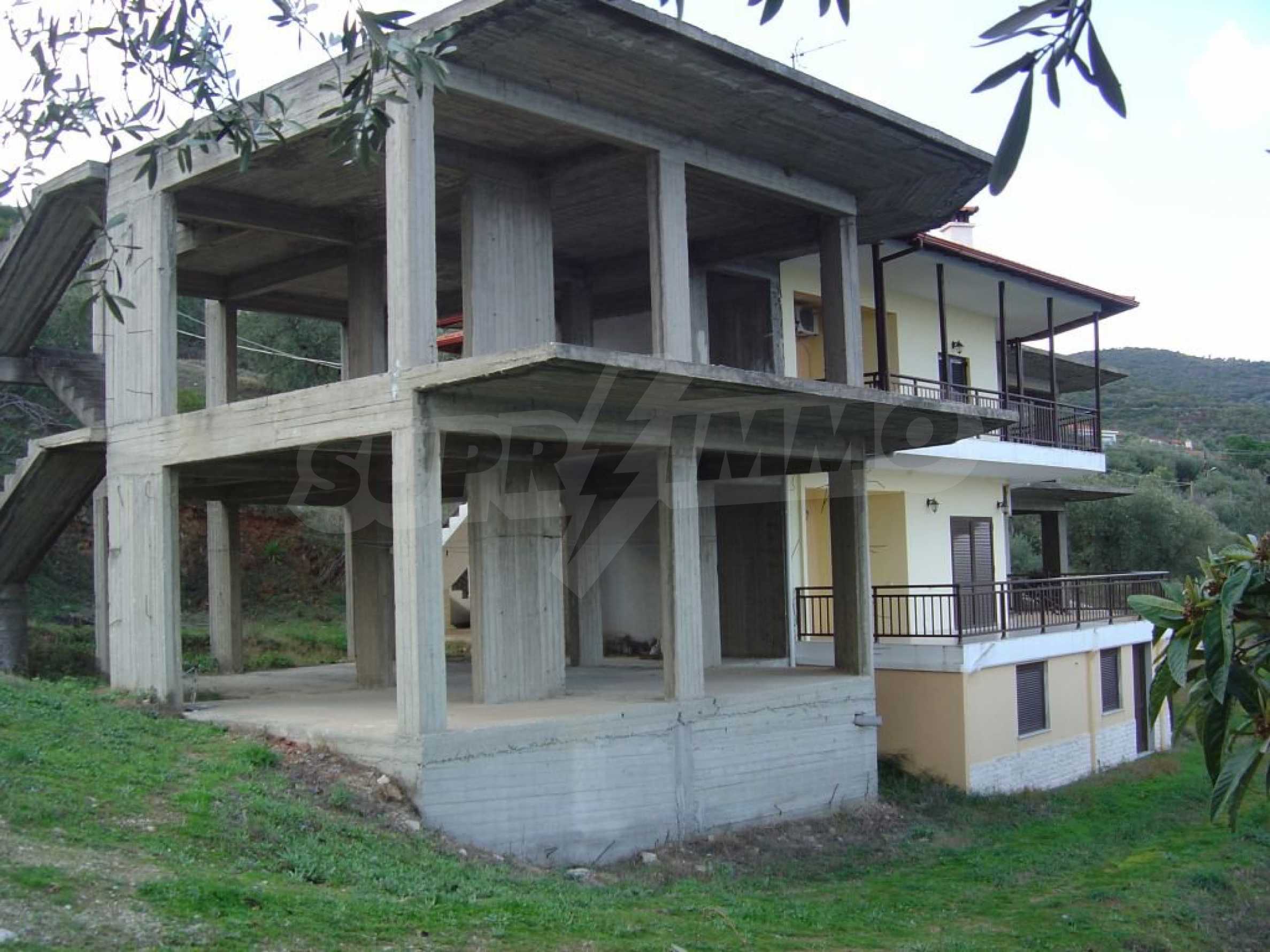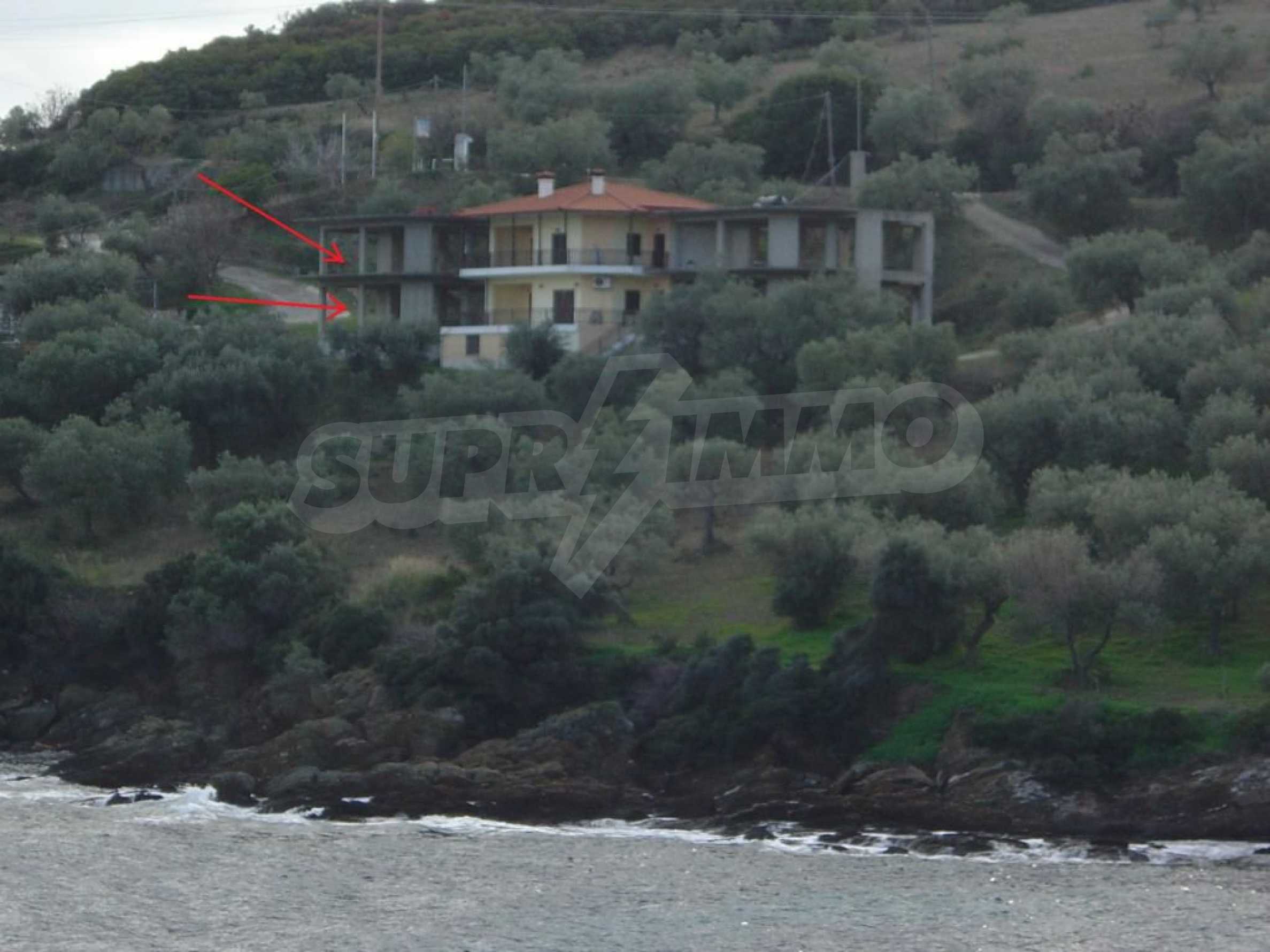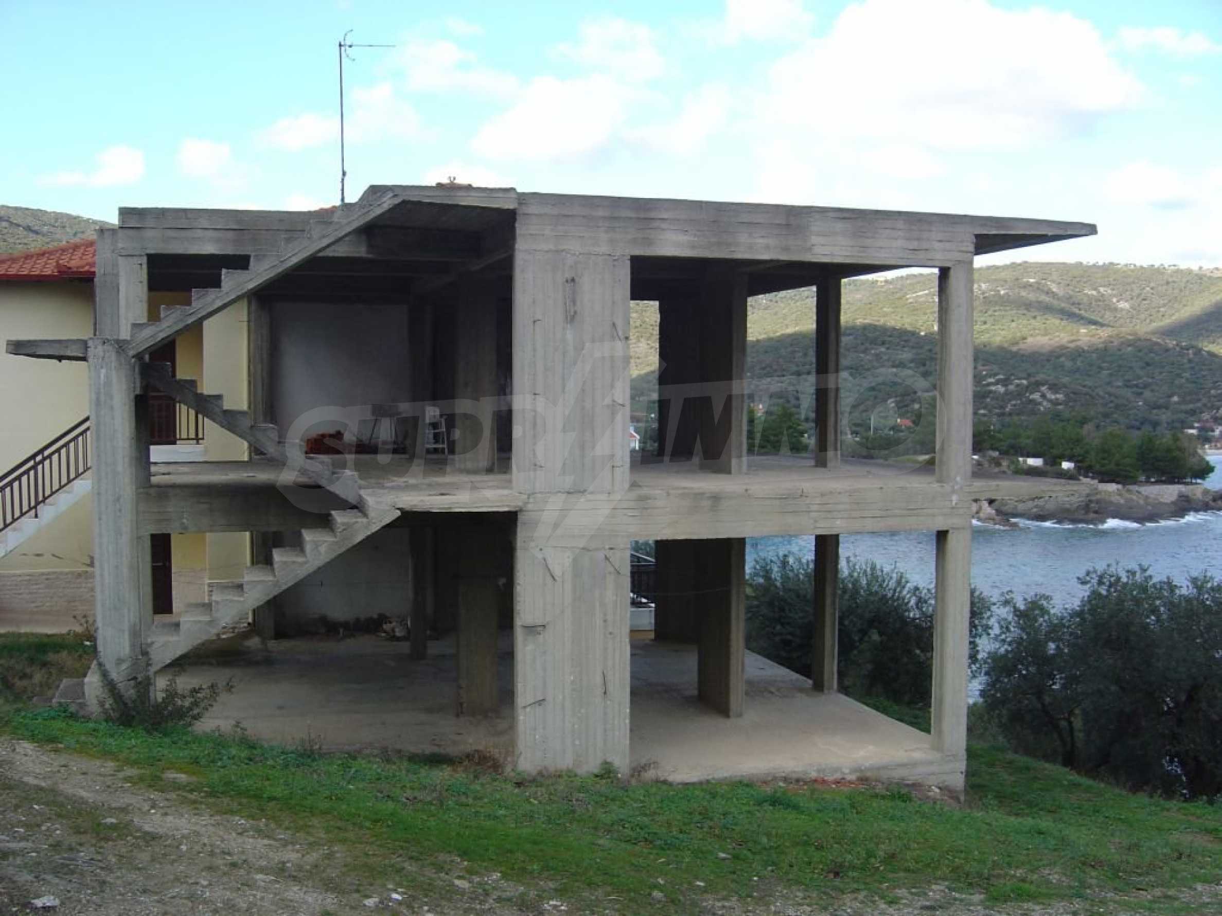 Detached house under construction on the first line, Sithonia, Halkidiki. It is a two storey house with 74 sqm on each floor. There are large verandas with amazing view to the sea and the mountains, 800 sqm garden and easy access to the crystal blue beach. It is sold in the condition shown in the pictures.