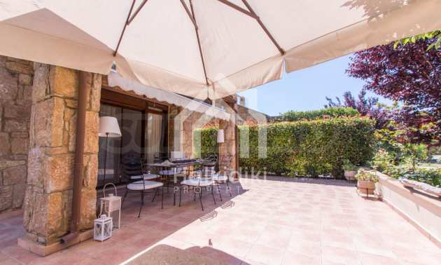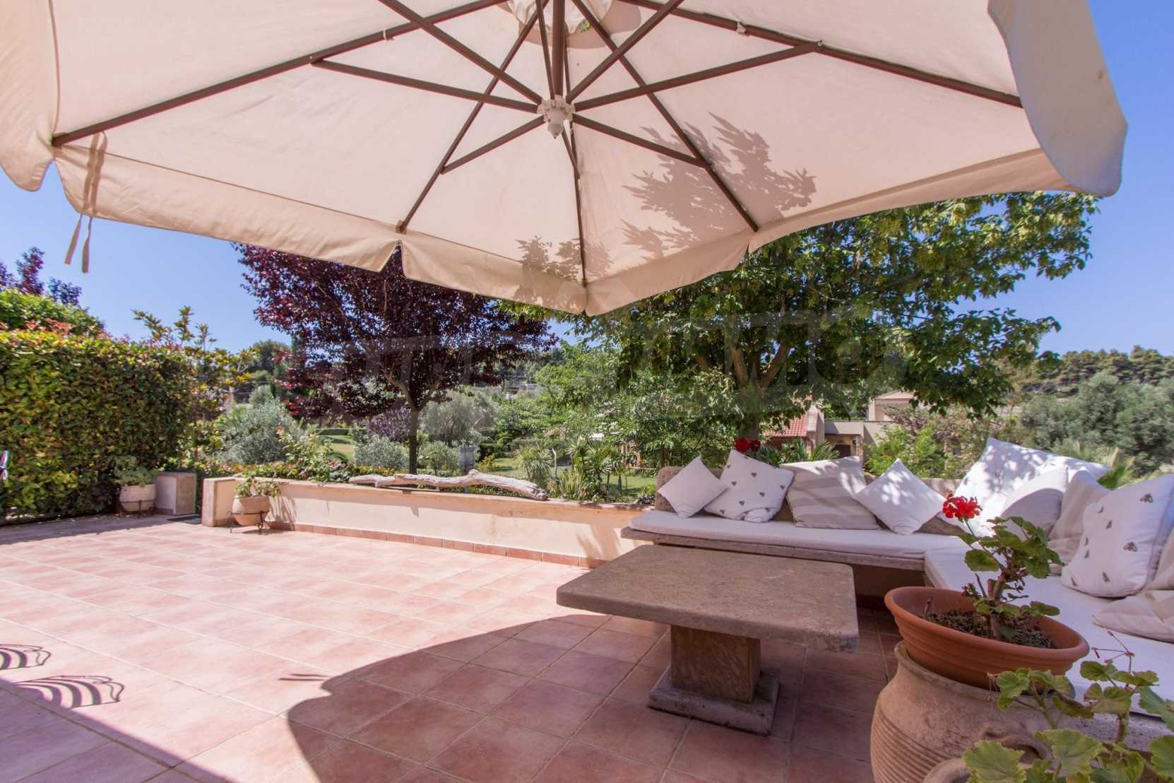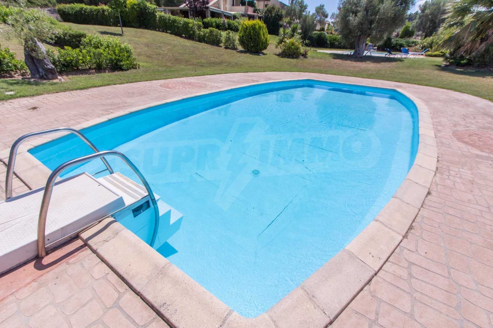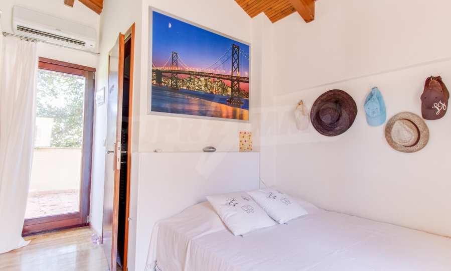 Villa in Kassandra, Halkidiki, 115 sqm. It is very close to the beach and has beautiful view to the garden. Villa is a corner property with parking, automated watering, beautifully landscaped garden next to the pool and is fully furnished and equipped with all the appliances and solar heater. On the garden is a barbecue. Villa has also mosquito nets, alarm system and a fireplace. It is divided in three floors and consists of a living room, kitchen, four bedrooms and three bathrooms.Furthermore,there is a second villa nearby with the same characteristics