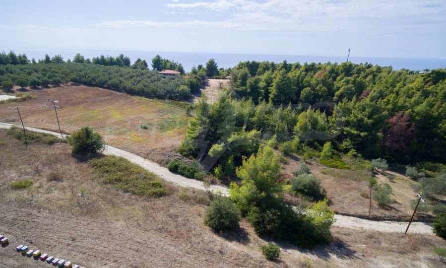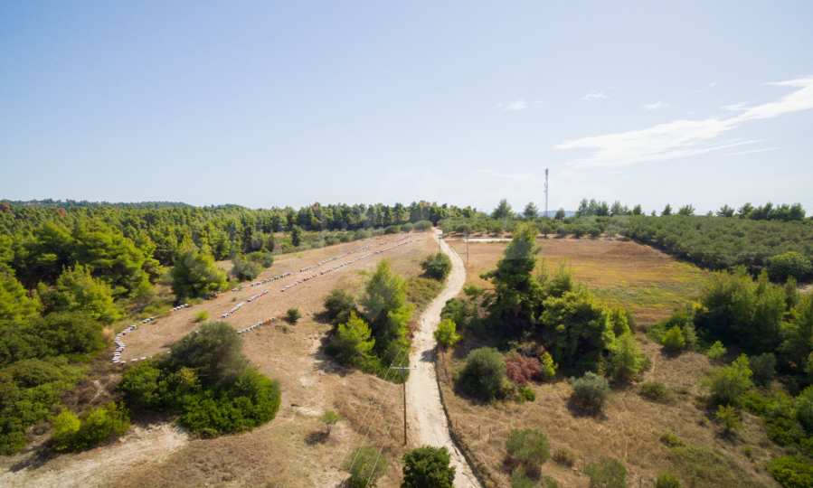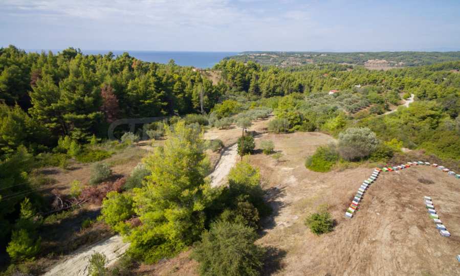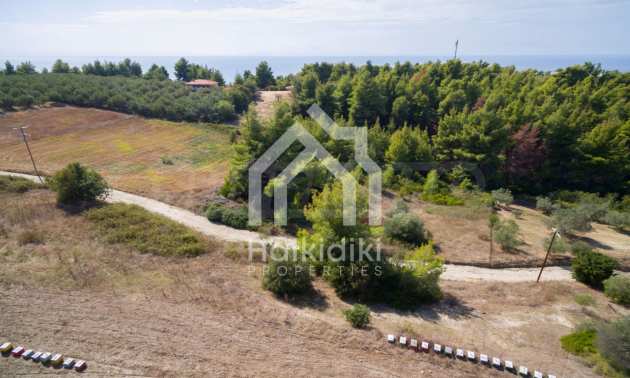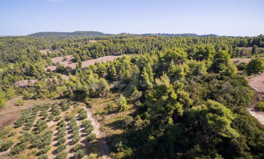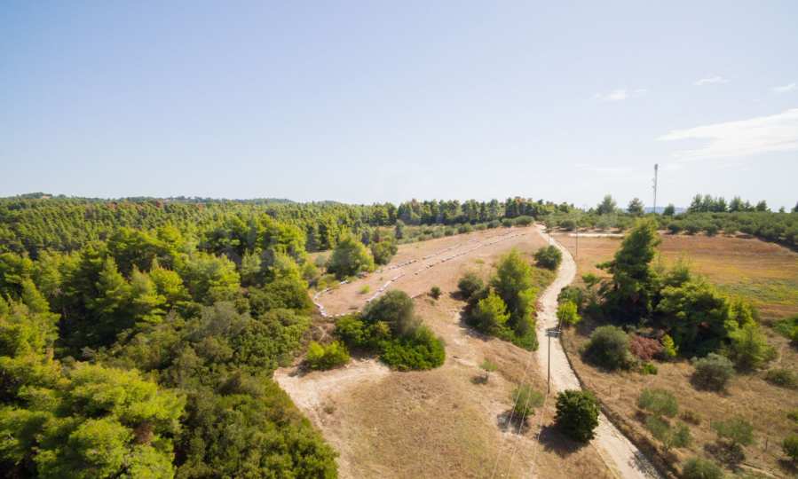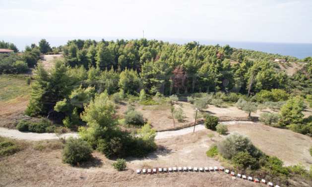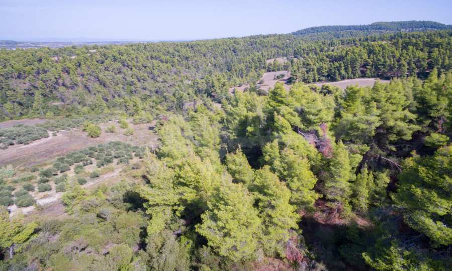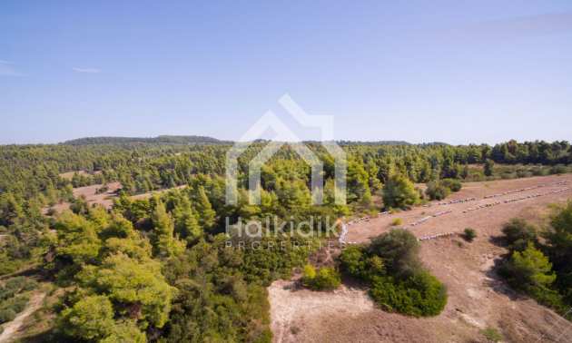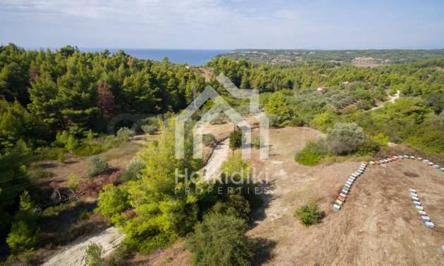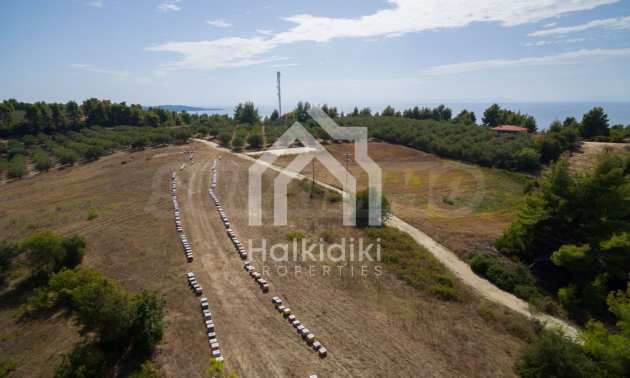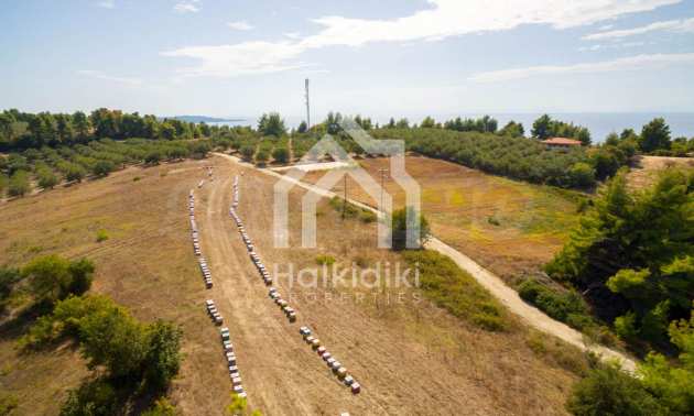 Land in Kassandra Halkidiki, 18000 SQM WITH PAPER Archaeology electricity, water, ideal for investment, divided into 4 sloping with mountain and sea view