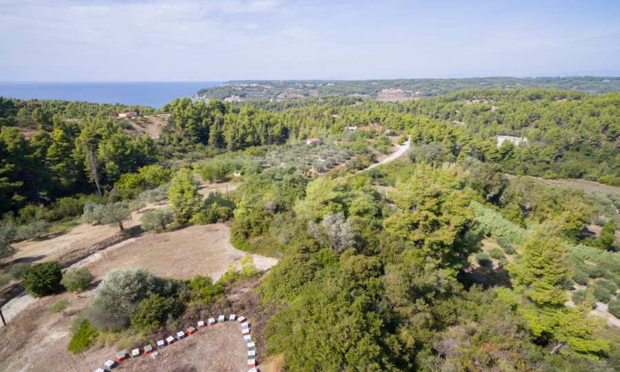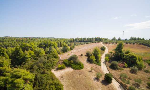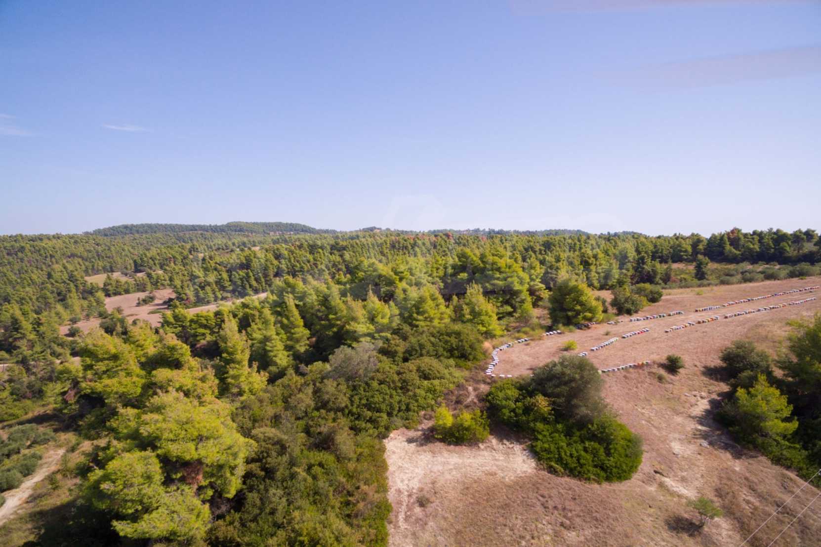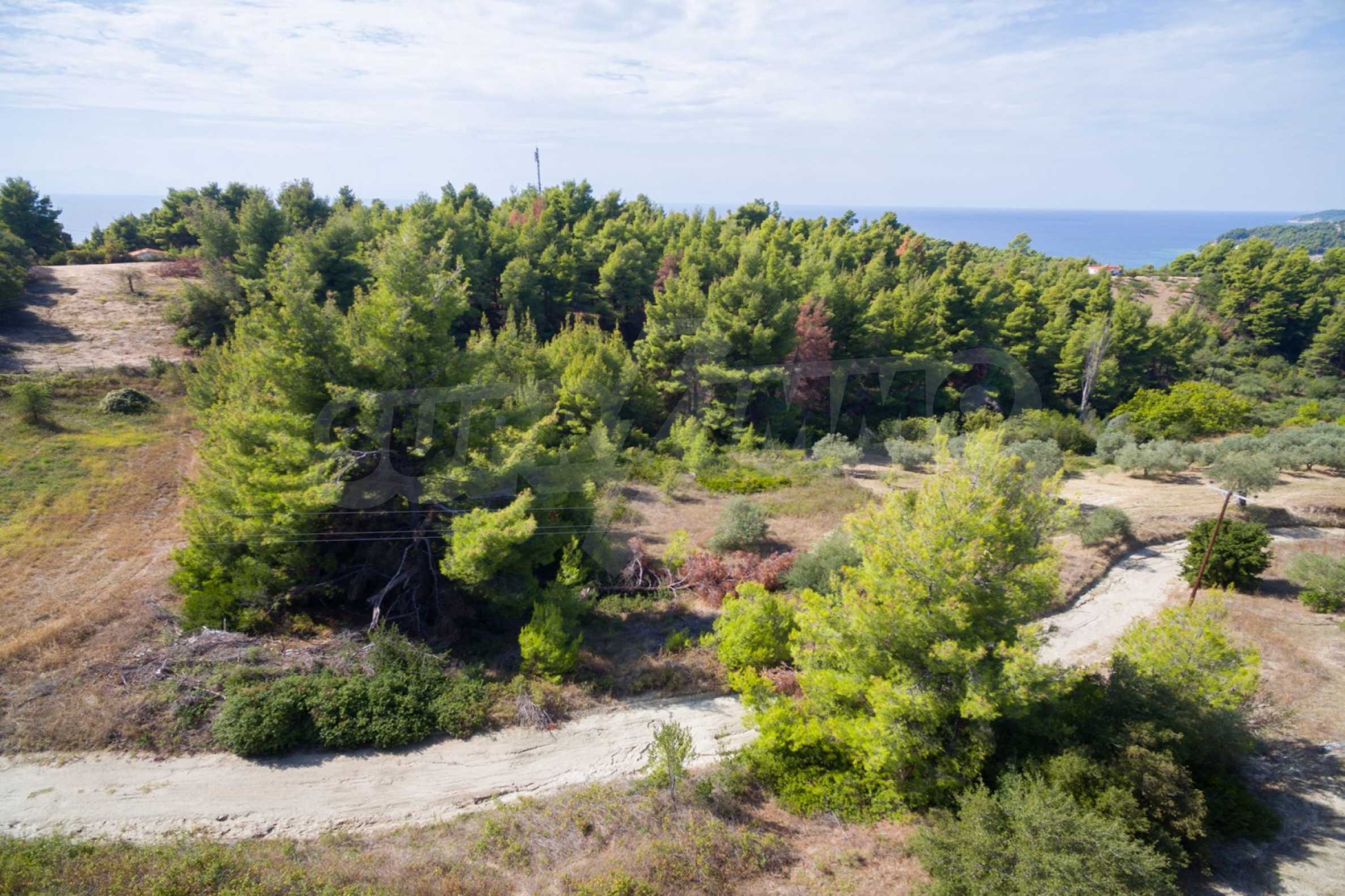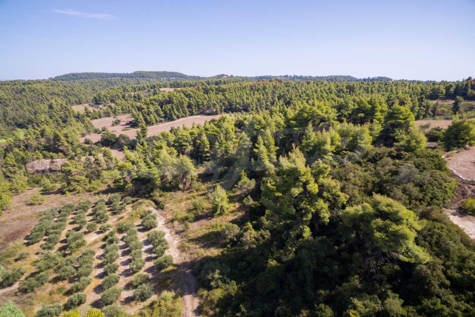 Land in Kassandra Halkidiki, 18000 SQM WITH PAPER Archaeology electricity, water, ideal for investment, divided into 4 sloping with mountain and sea view