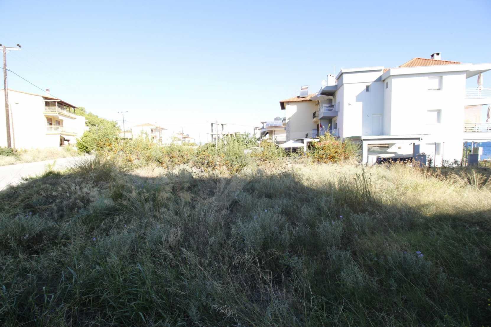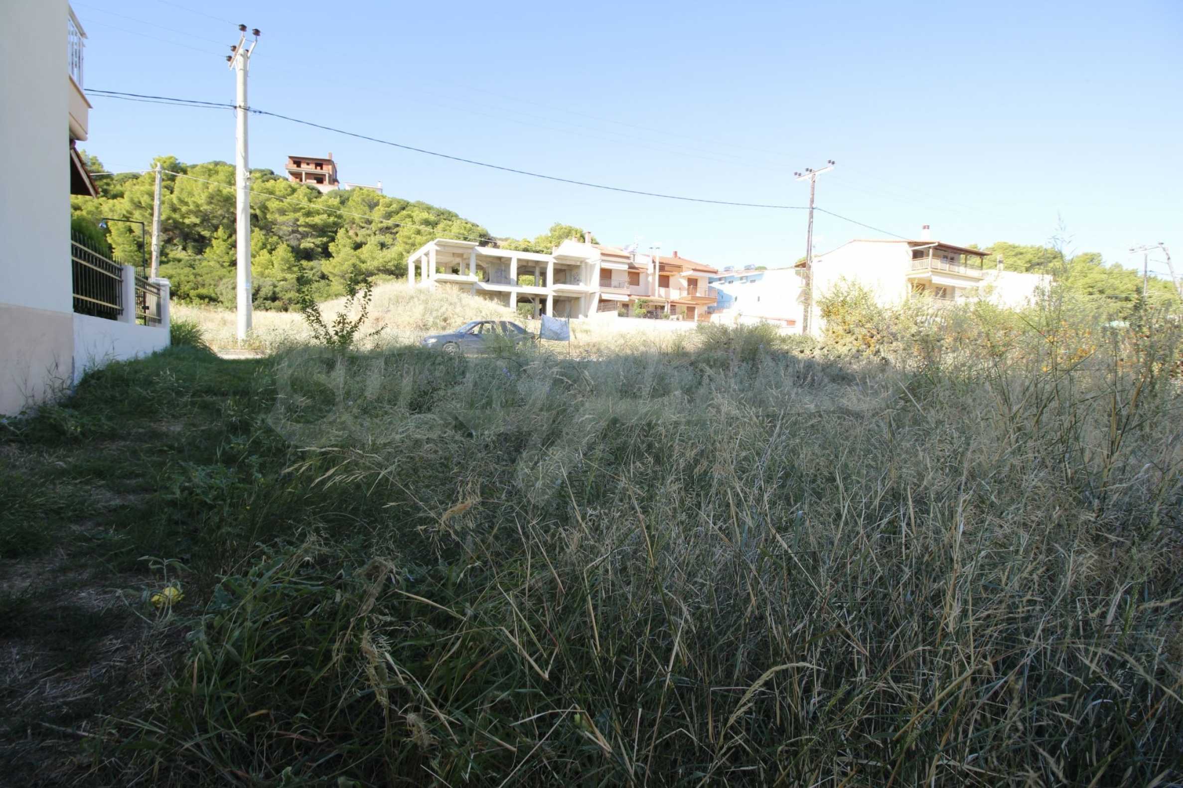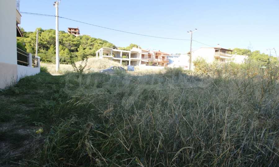 Field in Kassandra, Halkidiki, 300 m2, very close to the sea. There is a building licence for 180 m2. It has a great view to the sea and the mountain.