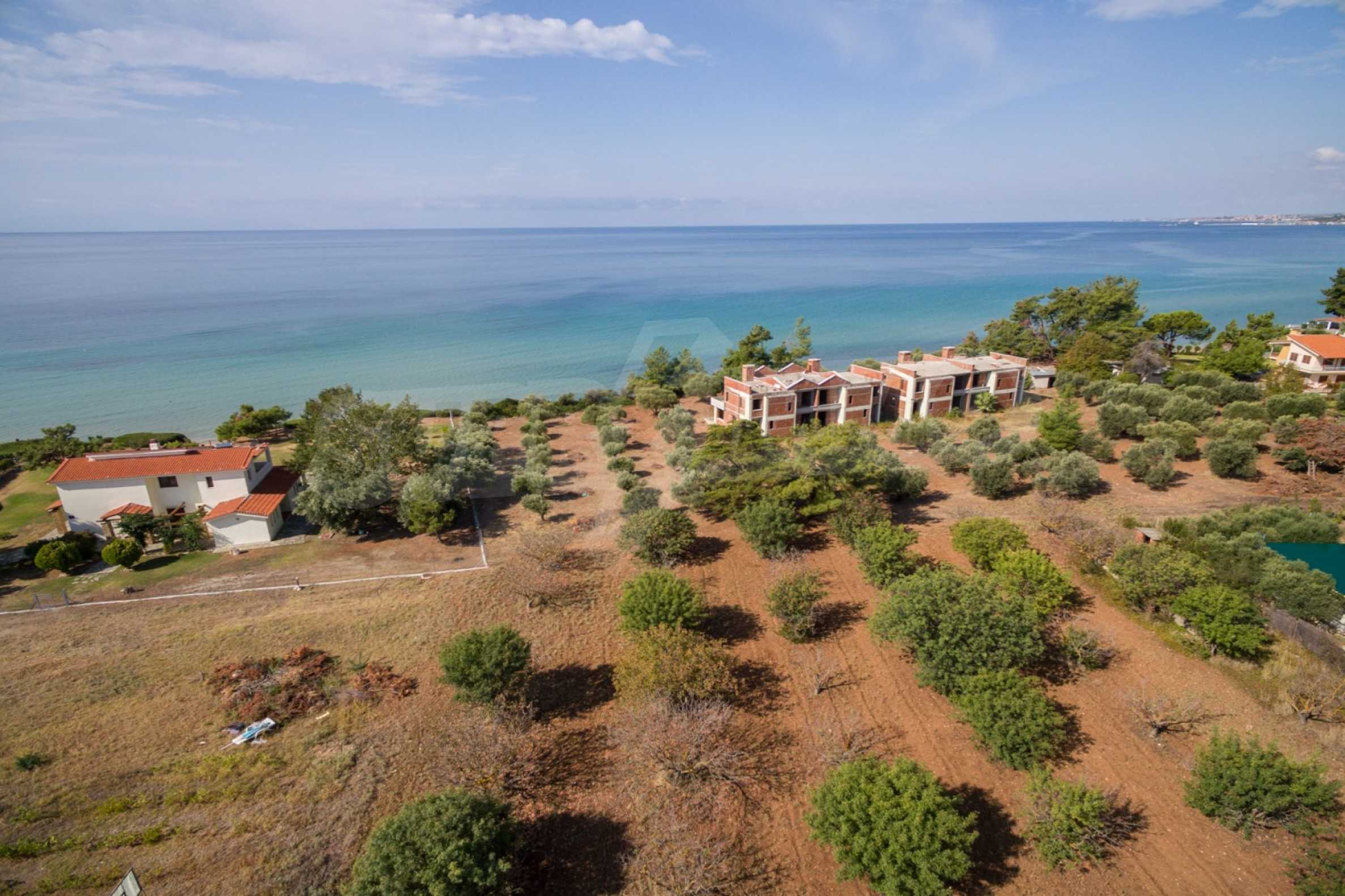 Field in Kassandra, Halkidiki, 14 acres, located only 60 m from the sea. It faces the street, is complete and buildable, with plans for commersial use building, it can build 2.800 m2. It has gorgeous, unobstructed view to the sea and the mountain.