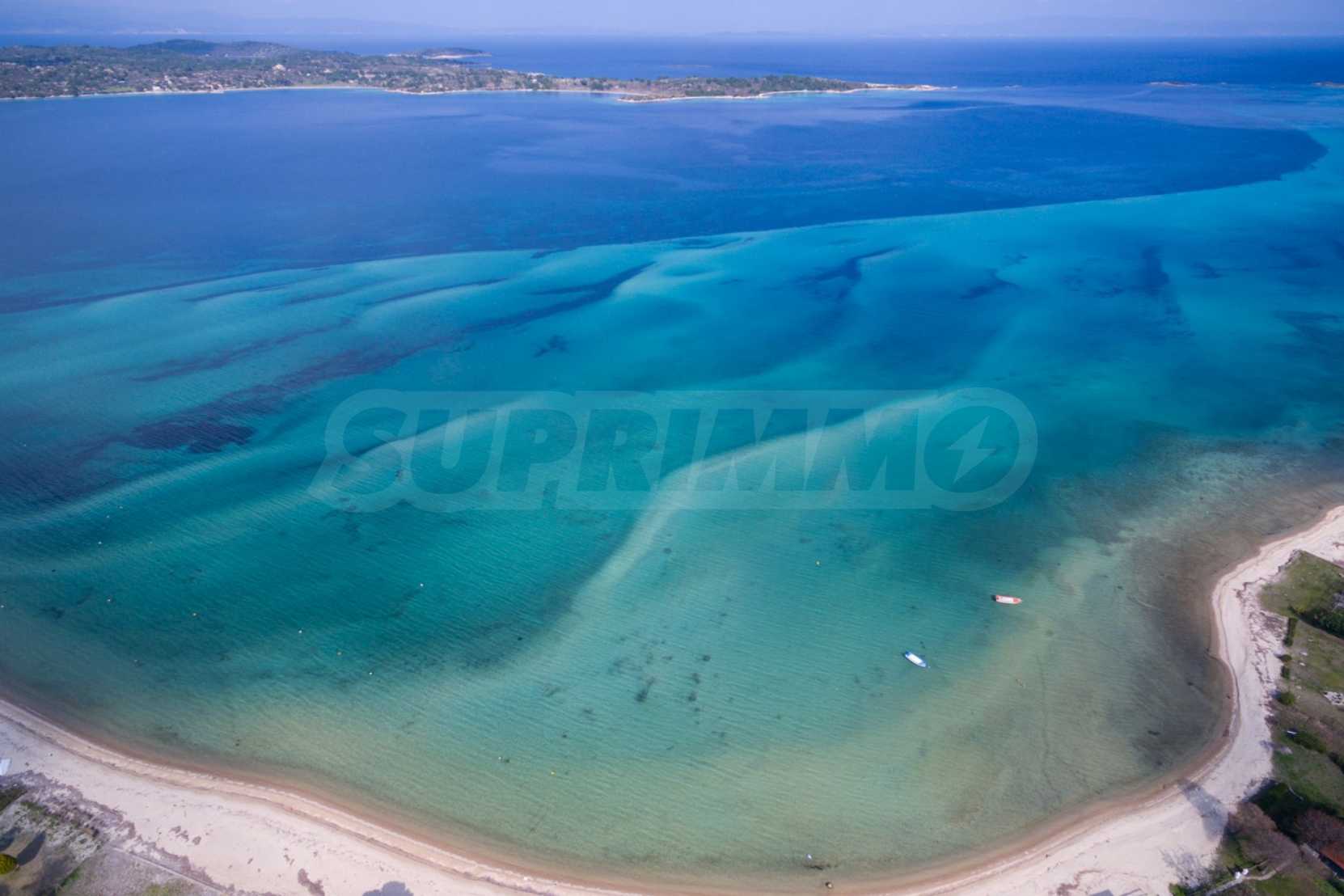 Unique waterfront field exactly in front of crystal green blue water. The sandy beach in combination with the green pine trees in the best position of Sithonia is the most important advandage of the fiels. There is also an issued building license for 4 maisonette type houses for 110 m2. each. It is also suitable for Villa development for exclusive client. Please look at the photos and you will see that this is one of the best parcels in Greece.