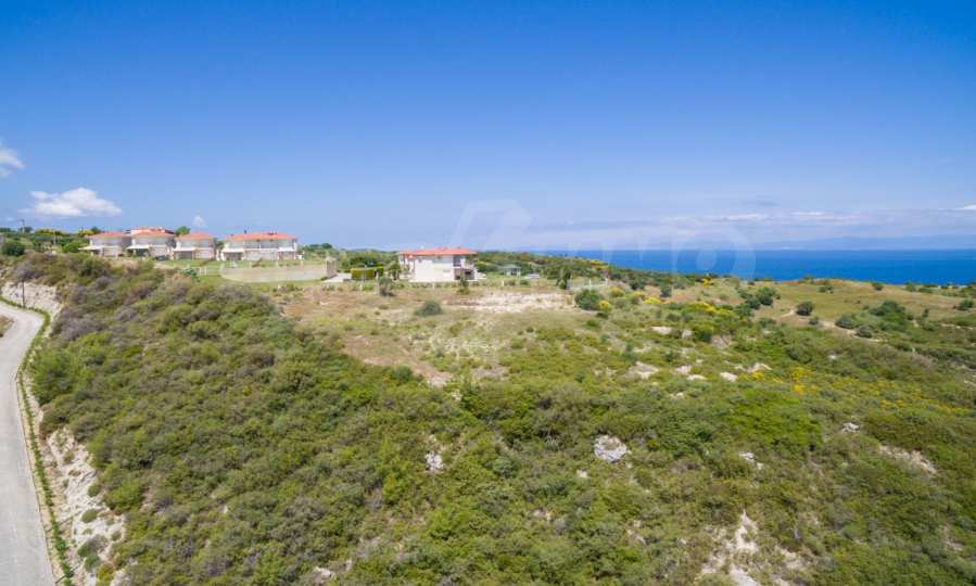 Plot in Kassandra, Halkidiki, in a unique, panoramic location with magnificent view to the sea. It is only 750 m from a beautiful, sandy beach. The plot is complete and buildable and is ideal for residential constructions of any kind.