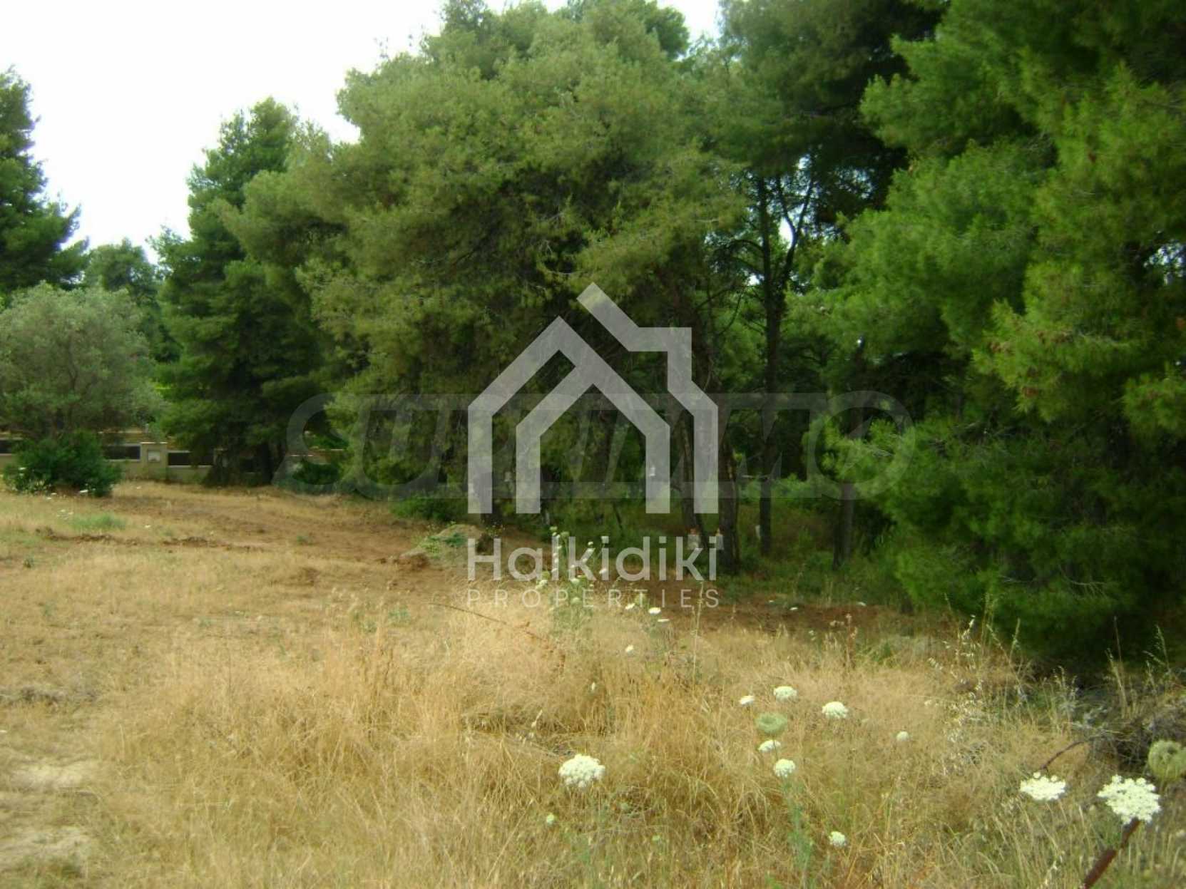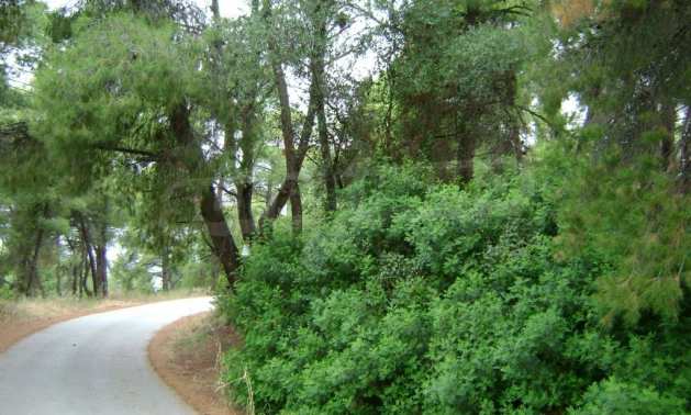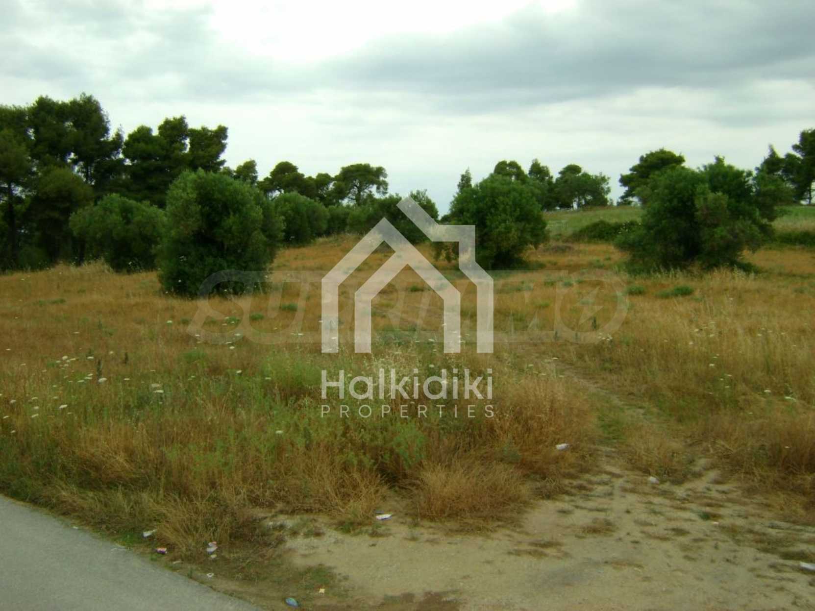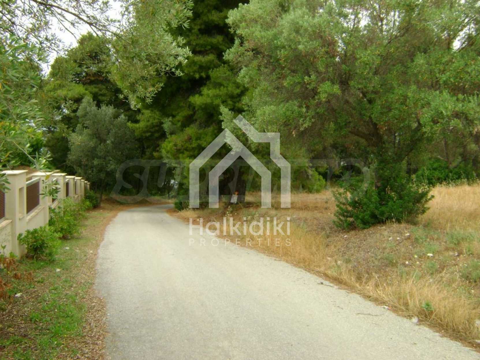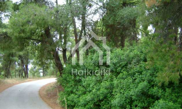 Field, Kassandra, 10360 m, sea view, mountain view, Sandy beach, Outside the village, Flat, Close to the sea, Southern orientation, Faces main road, Forested, Private forest inside, Complete - Buildable, Perfect for house building, Perfect for farming