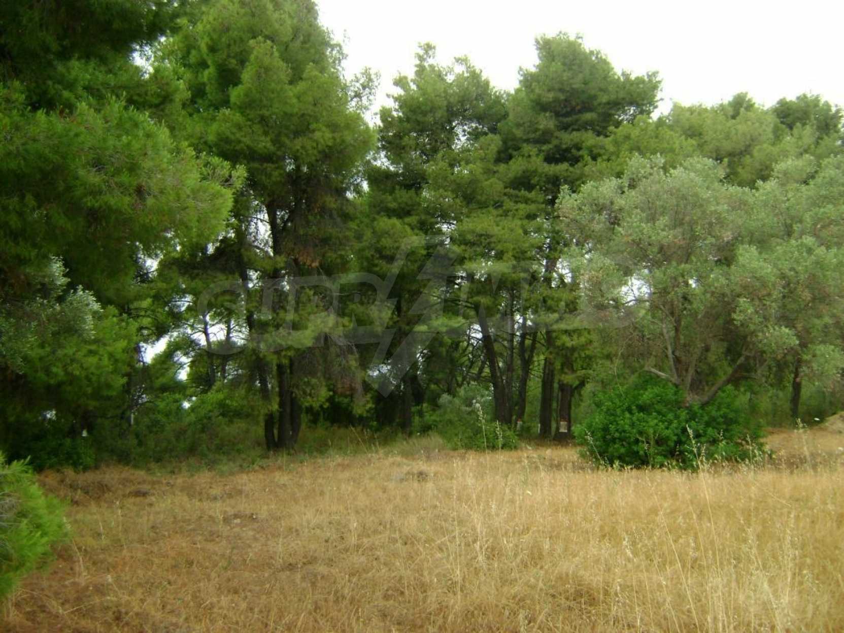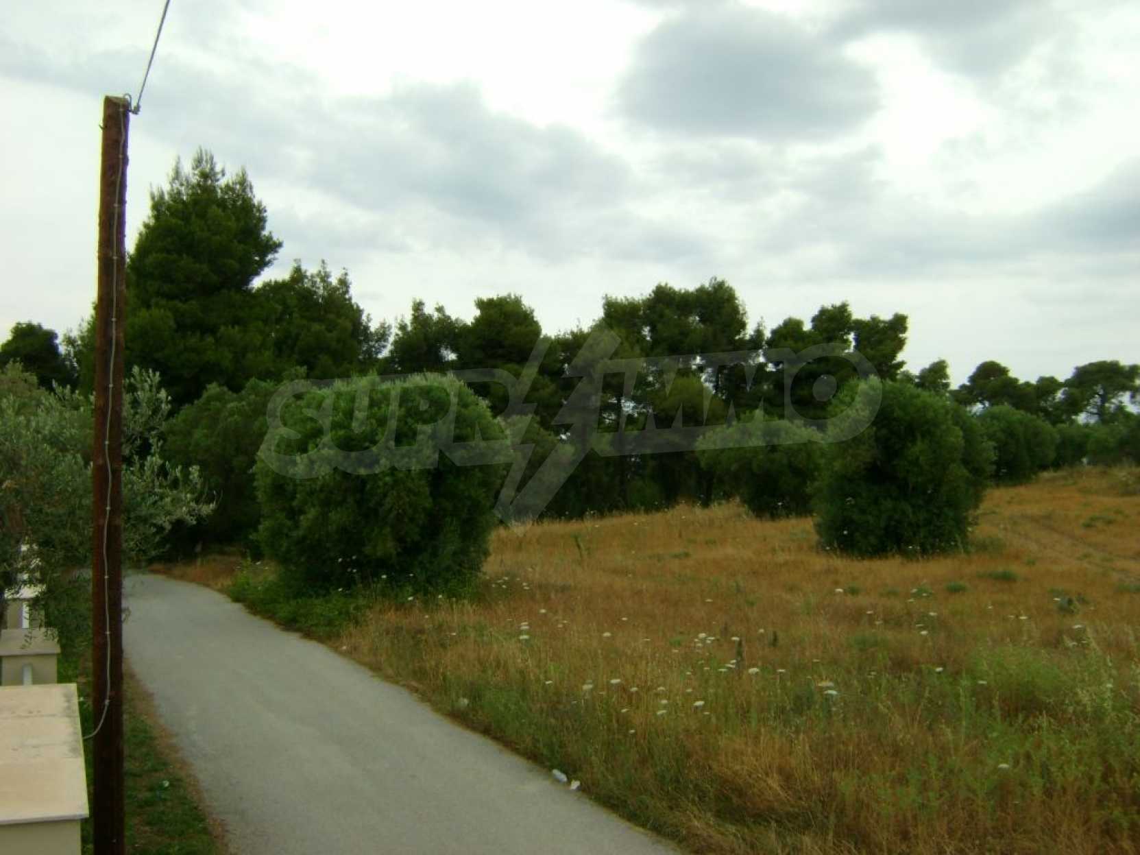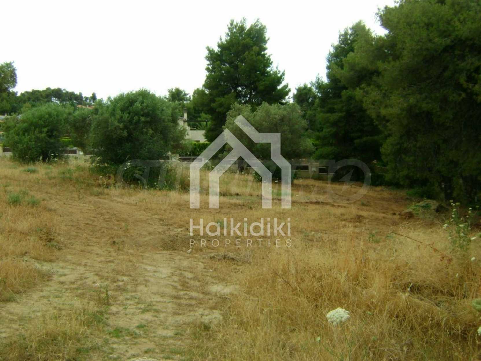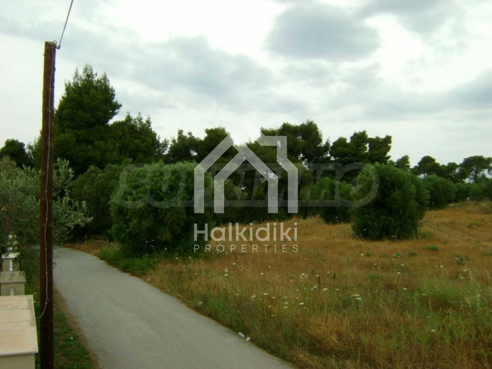 Field, Kassandra, 10360 m, sea view, mountain view, Sandy beach, Outside the village, Flat, Close to the sea, Southern orientation, Faces main road, Forested, Private forest inside, Complete - Buildable, Perfect for house building, Perfect for farming