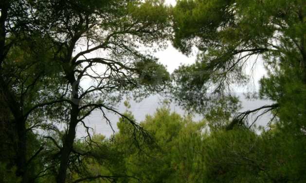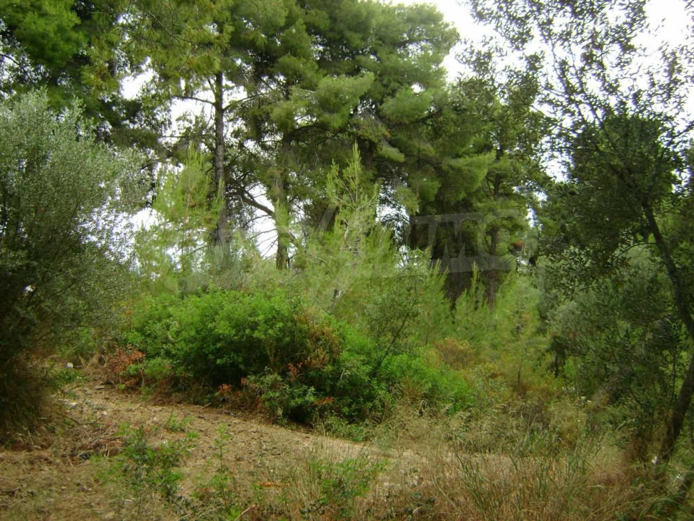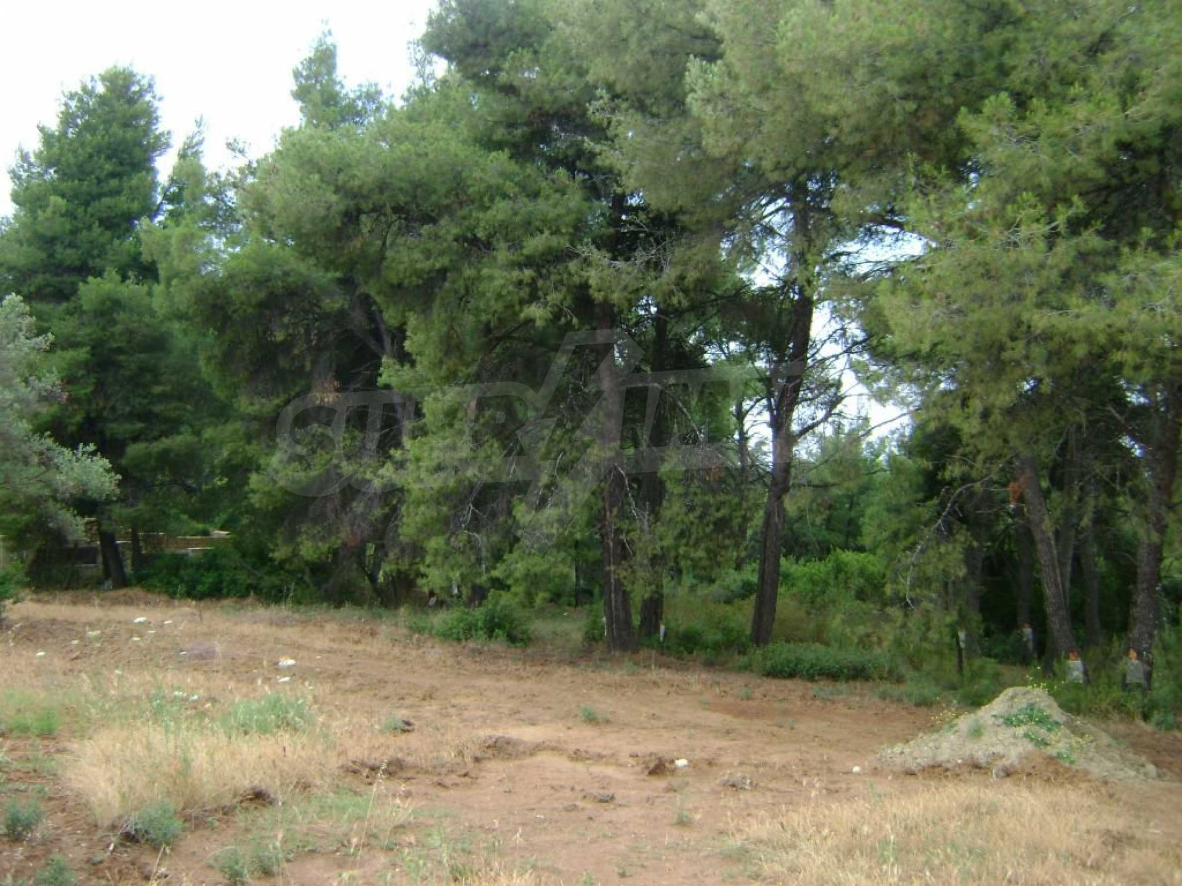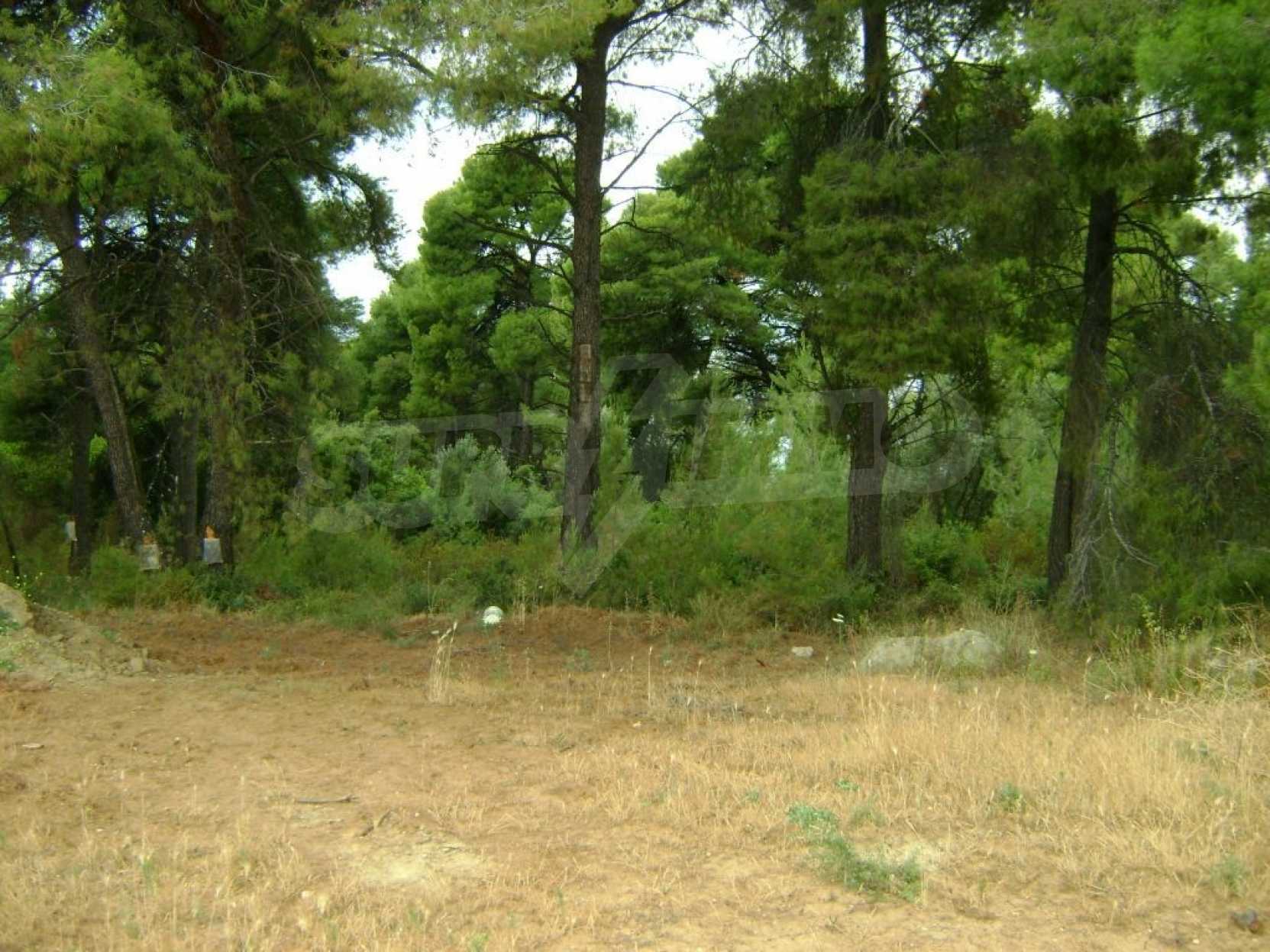 Field, Kassandra, 10360 m, sea view, mountain view, Sandy beach, Outside the village, Flat, Close to the sea, Southern orientation, Faces main road, Forested, Private forest inside, Complete - Buildable, Perfect for house building, Perfect for farming
