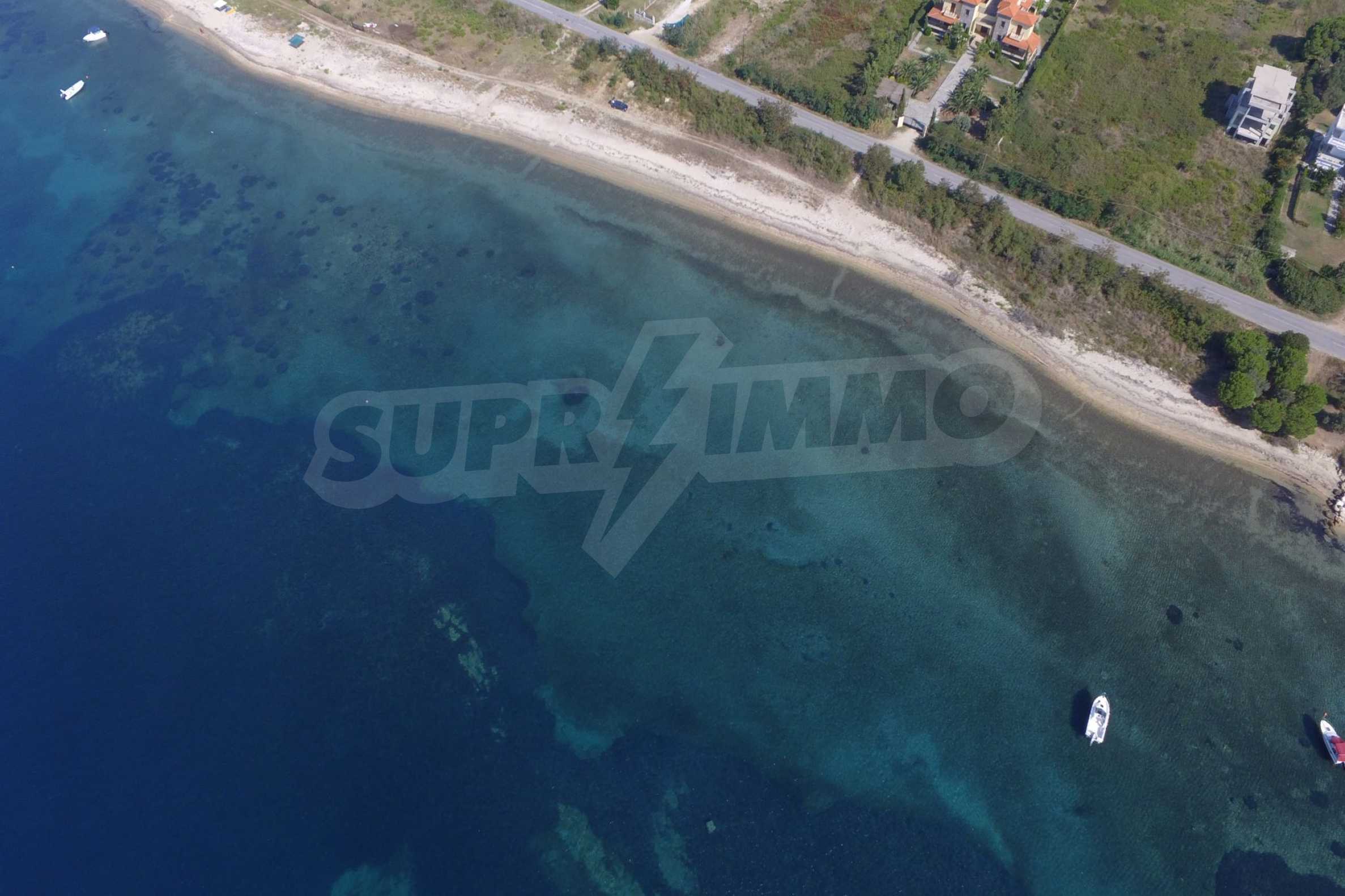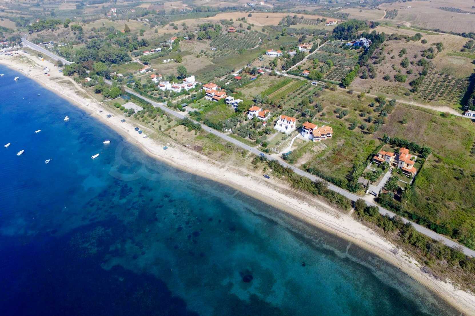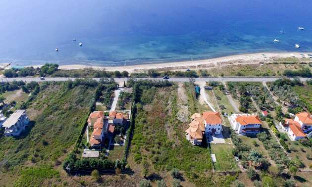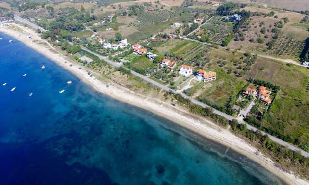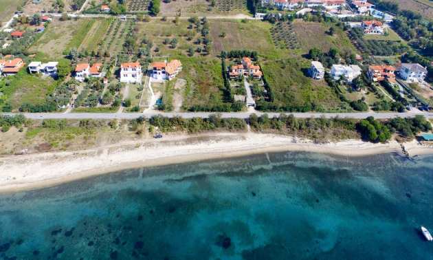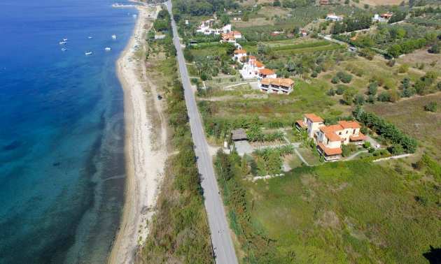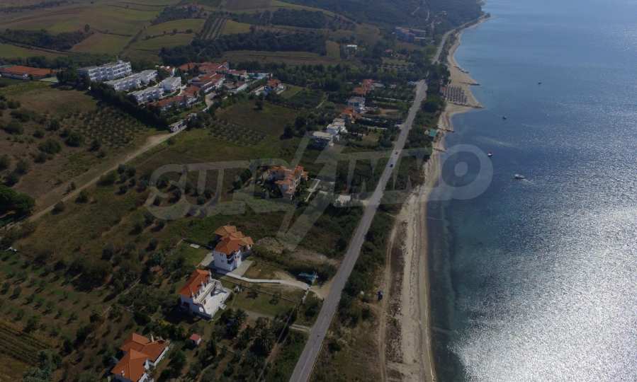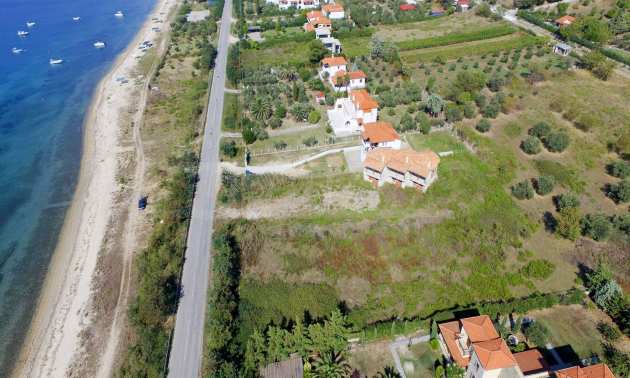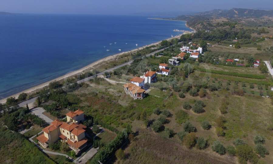 Plot in the Municipality of Aristotelis, 2500 sqm. It is on the first line and has majestic view to the sea. The plot is flat, complete and buildable and is ideal for any residential construction. There is already an issued license, including a two storey house with a basement, with total floor area of 270 sqm.