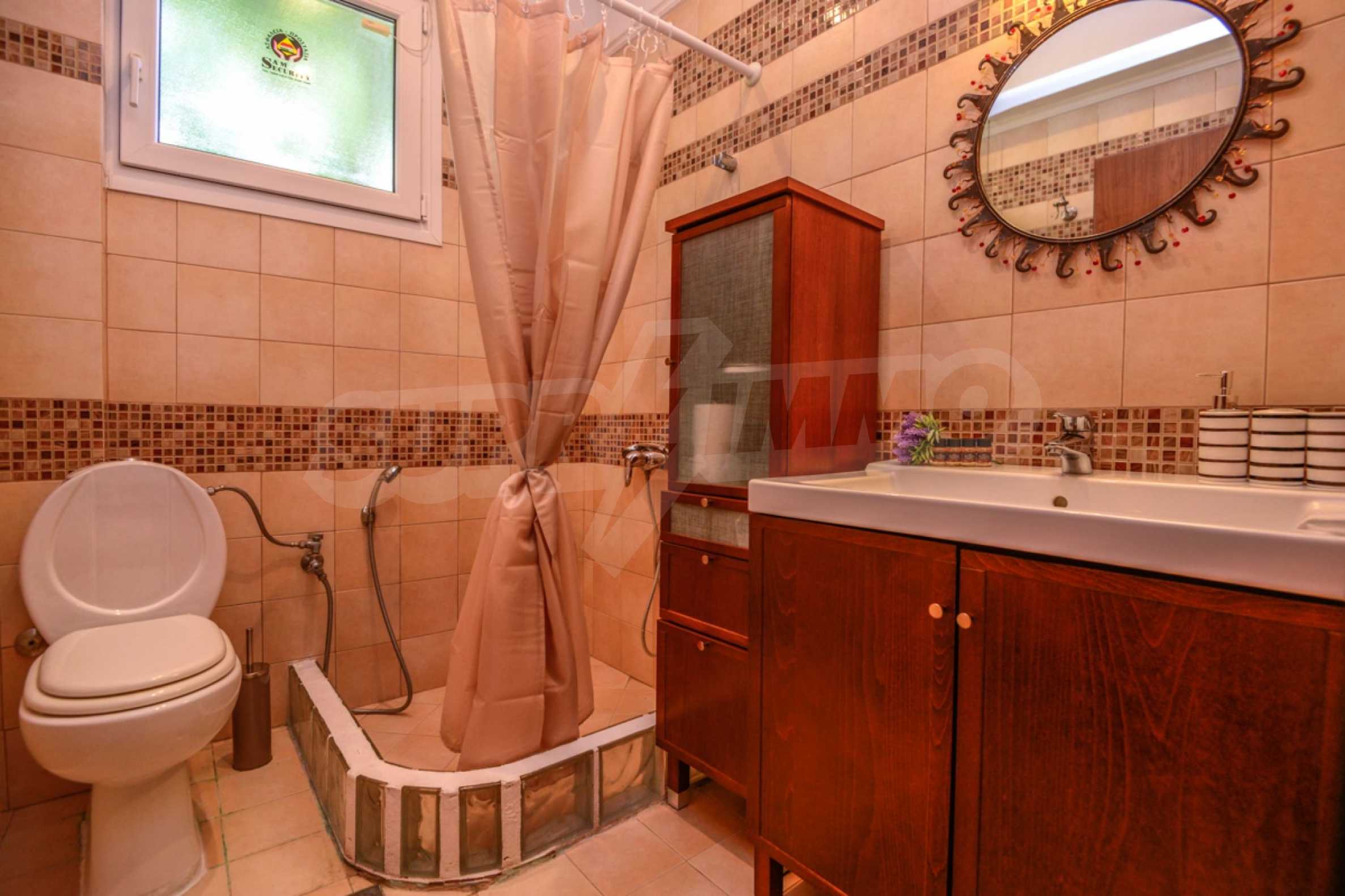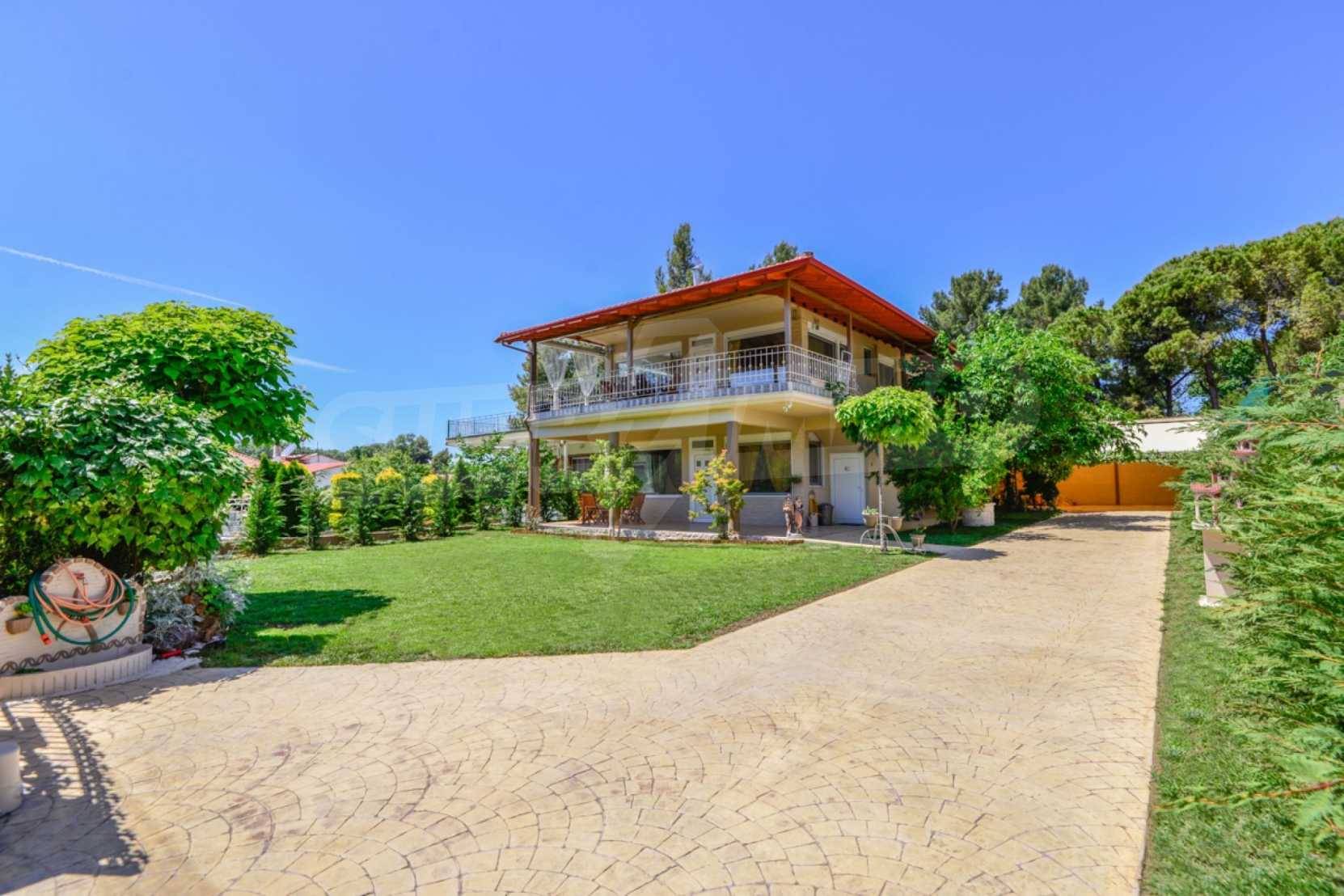We offer you this house with a total area of 180 m2. It was constructed in 2012. The property has fireplace, local heating and solar panels. An air-conditioning system - also available. Armored front door are available in the property. The property is connected to septic tank. Some of the other available facilities that you will certainly consider important include: a balcony, a bathroom with toilet, a garage, a parking space, a storage room and a secure entry system. From the inside you will be able to enjoy wonderful sea views.