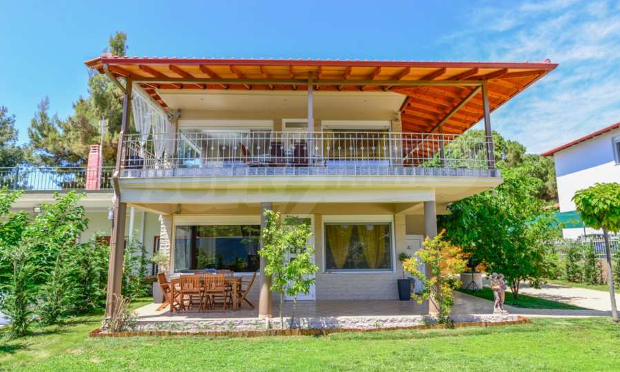 Detached house in the Municipality of New Propontis, Halkidiki. It is located very close to a lovely, sandy beach and has gorgeous view to the sea. The house is surrounded by a field 675 sqm, from which the 180 sqm are inhabitable. It has two levels. On the first level (90 sqm) there is a living room, kitchen, three bedrooms and three bathrooms, while on the second level there is another living room and kitchen, three bedrooms and three bathrooms. The garden has a 2 car garage and open parking space for two more cars. The house has large verandas, two fireplaces (one on each floor), fitted closets and it is a very carefully made construction.