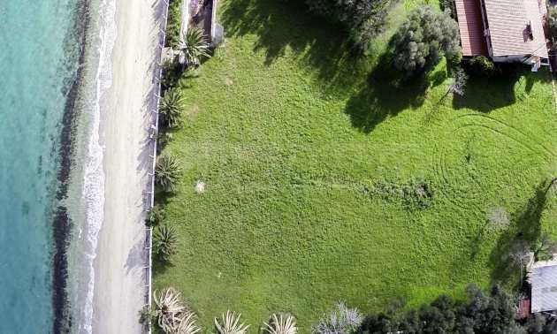 Field, Kassandra,4300 m, sea view, open view, Sandy beach, Eastern orientation, Unobstructed permanent view, Flat, Faces main road, Beachfront property, Natural beauty, Fenced, Complete - Buildable, Perfect for villa building