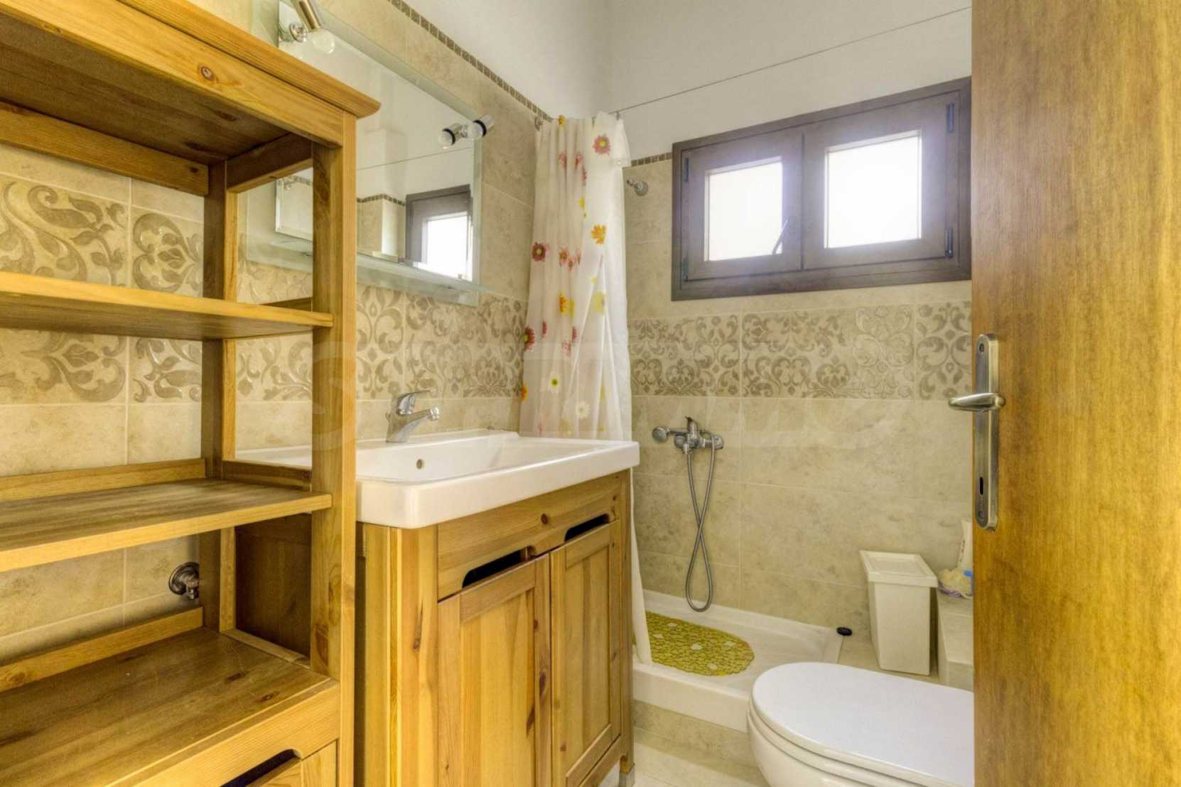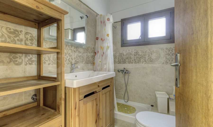 The living area is divided into two equal levels of 75 sq.m. Each floor has a living room, a kitchen, two bedrooms and a bathroom. The house was completely renovated in 2007. It is equipped with air conditioning for heating and cooling and guarantees a comfortable and peaceful living environment, as it has the necessary furniture and equipment for your unforgettable holidays on the beach.