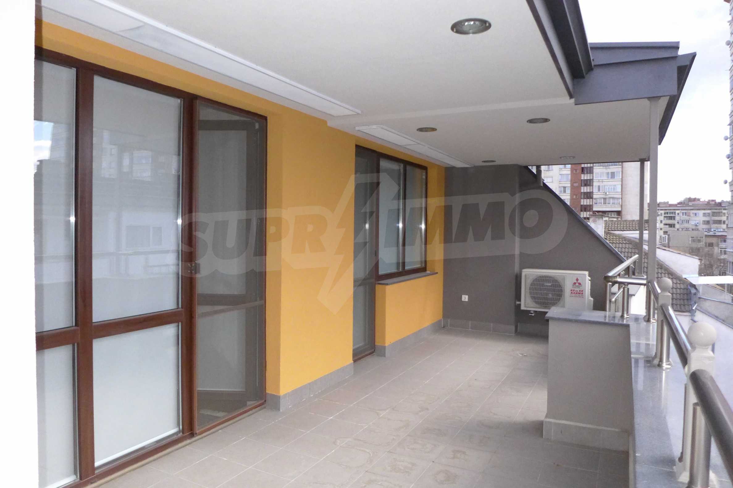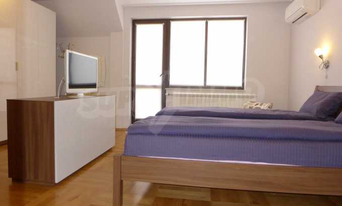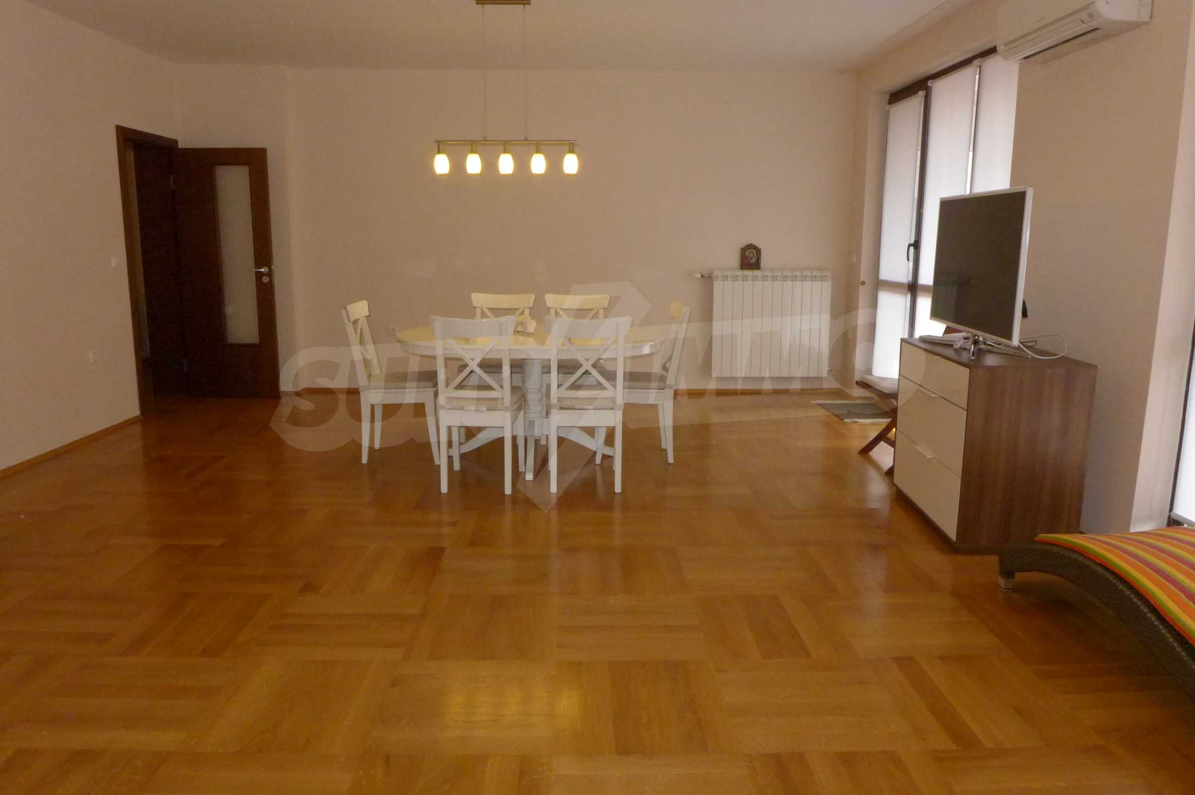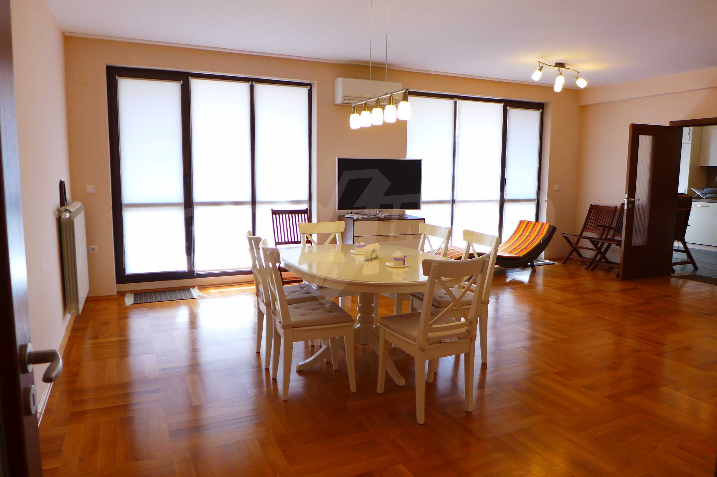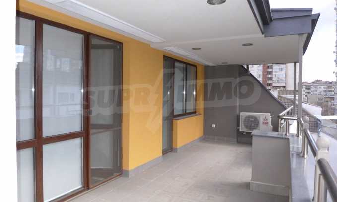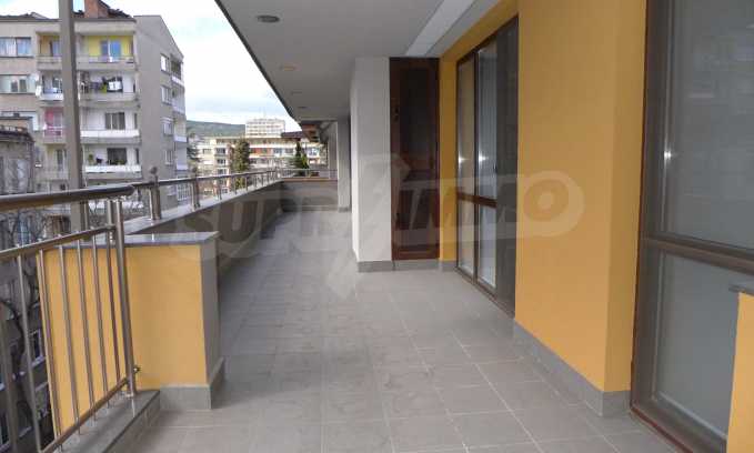We offer you this apartment with a total area of 200 m2. It is set on the 5-th last floor and faces east-west. The living area is distributed between a corridor, a spacious living room, a kitchen, two bedrooms /one of it with separate WC/ bathroom and terrace/, another WC/ bathroom and toilet. A big terrace surrounds the west side of the apartment. The property is supplied with air-conditioners and gas heating system. Armored front door, interior doors, painted walls, parquet flooring, tiled flooring and upvc window frames are available in the property. The property is connected to electricity, gas heating, water and communal sewage system.