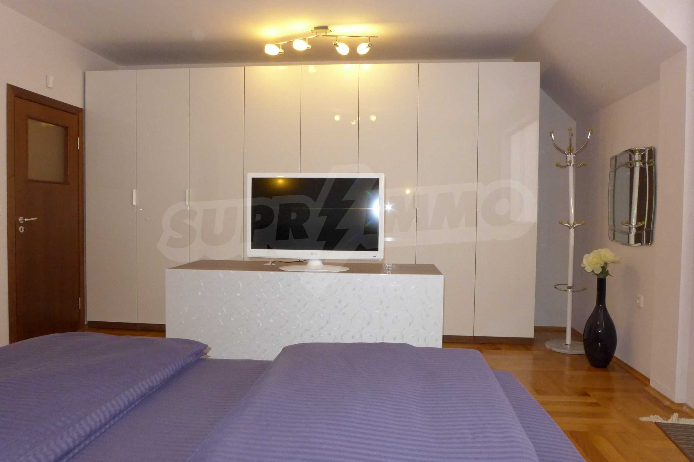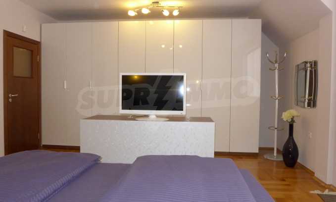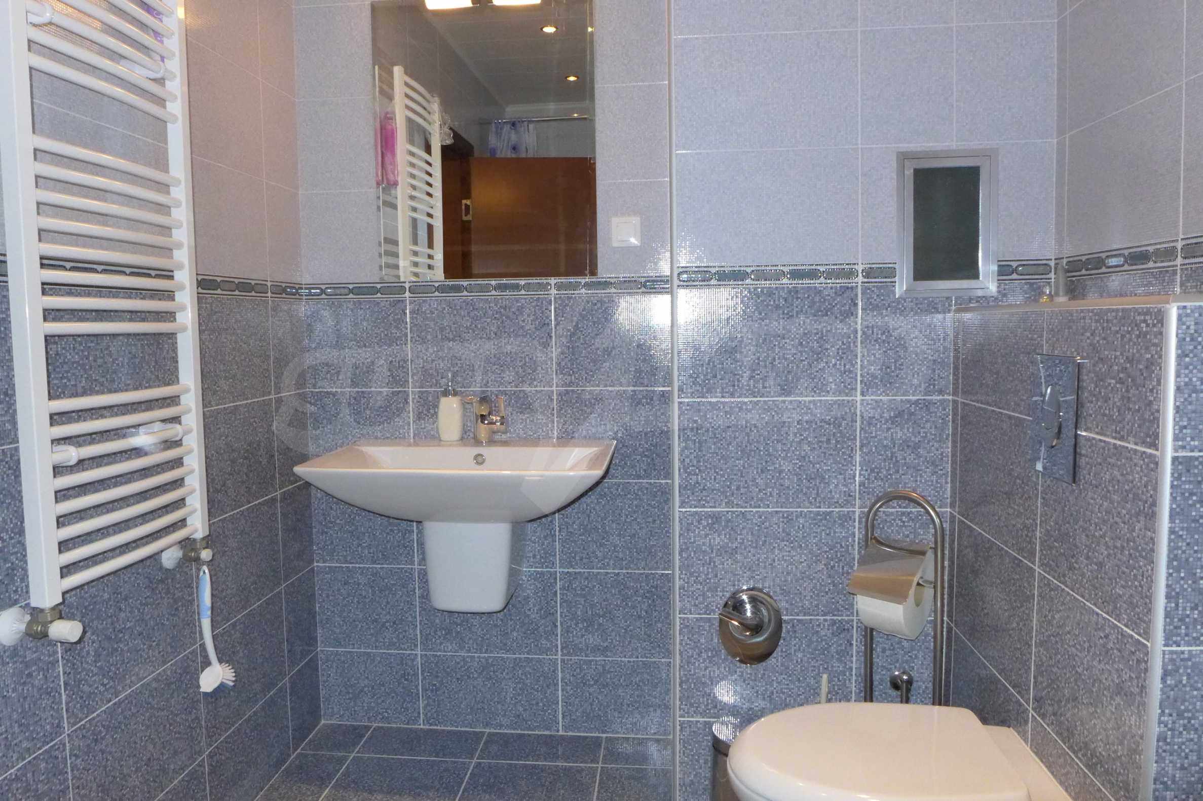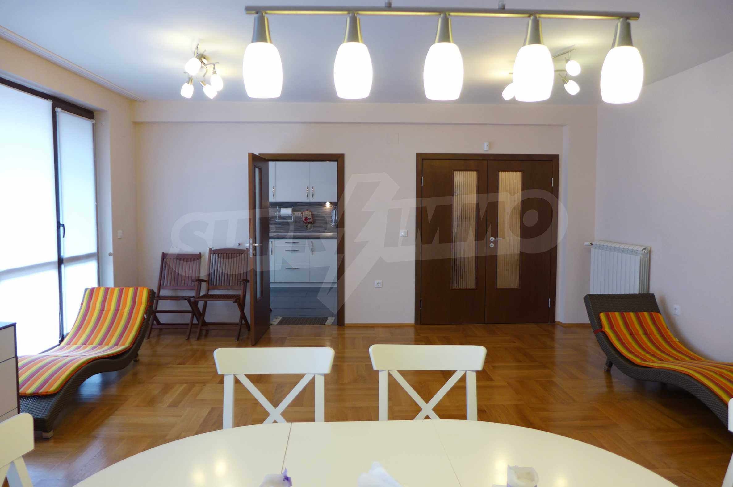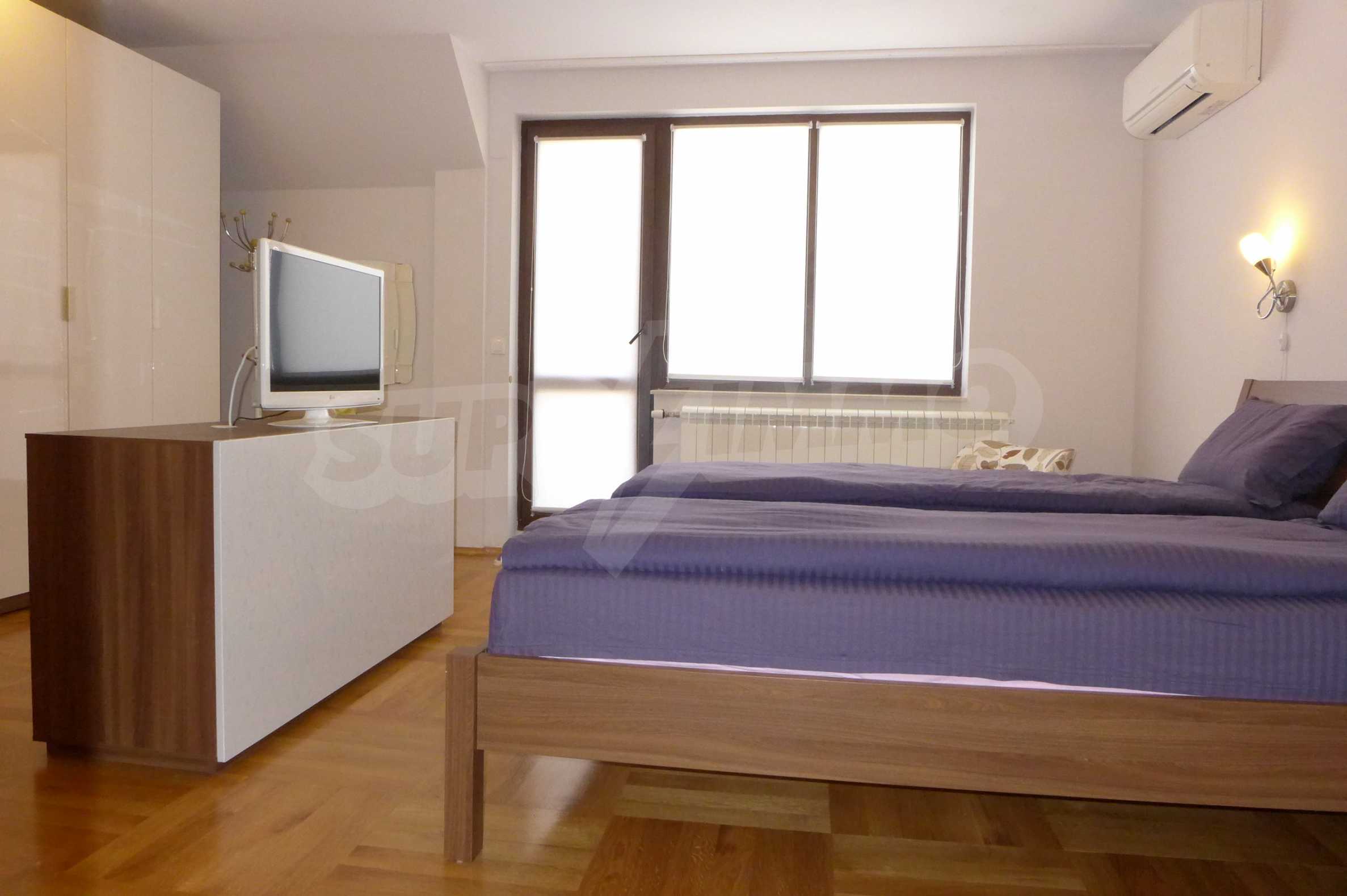 We offer you this apartment with a total area of 200 m2. It is set on the 5-th last floor and faces east-west. The living area is distributed between a corridor, a spacious living room, a kitchen, two bedrooms /one of it with separate WC/ bathroom and terrace/, another WC/ bathroom and toilet. A big terrace surrounds the west side of the apartment. The property is supplied with air-conditioners and gas heating system. Armored front door, interior doors, painted walls, parquet flooring, tiled flooring and upvc window frames are available in the property. The property is connected to electricity, gas heating, water and communal sewage system.