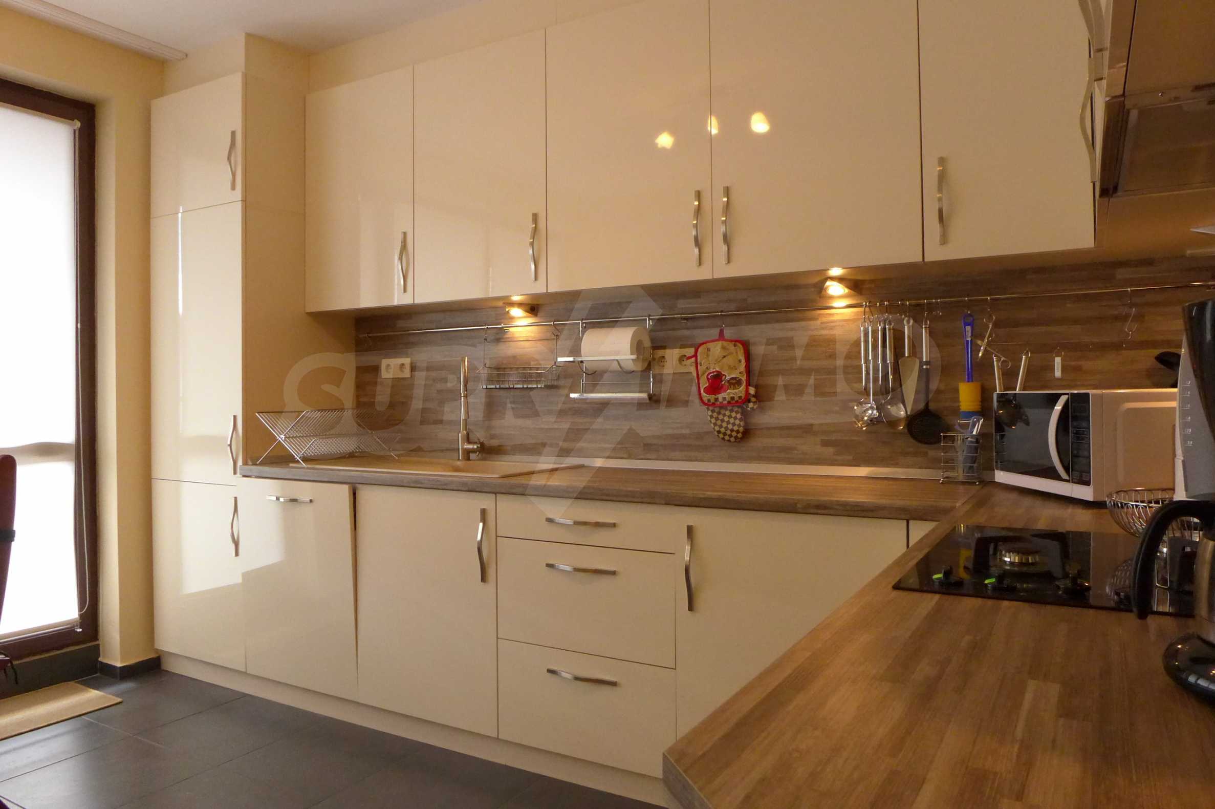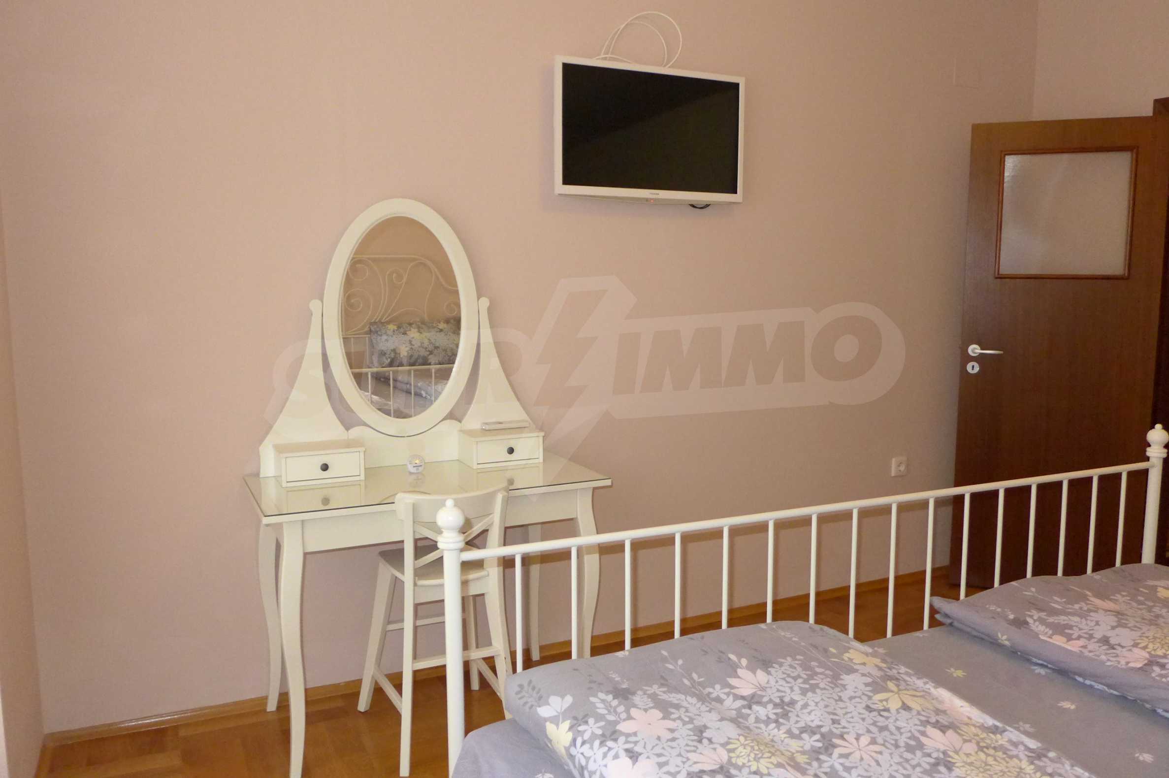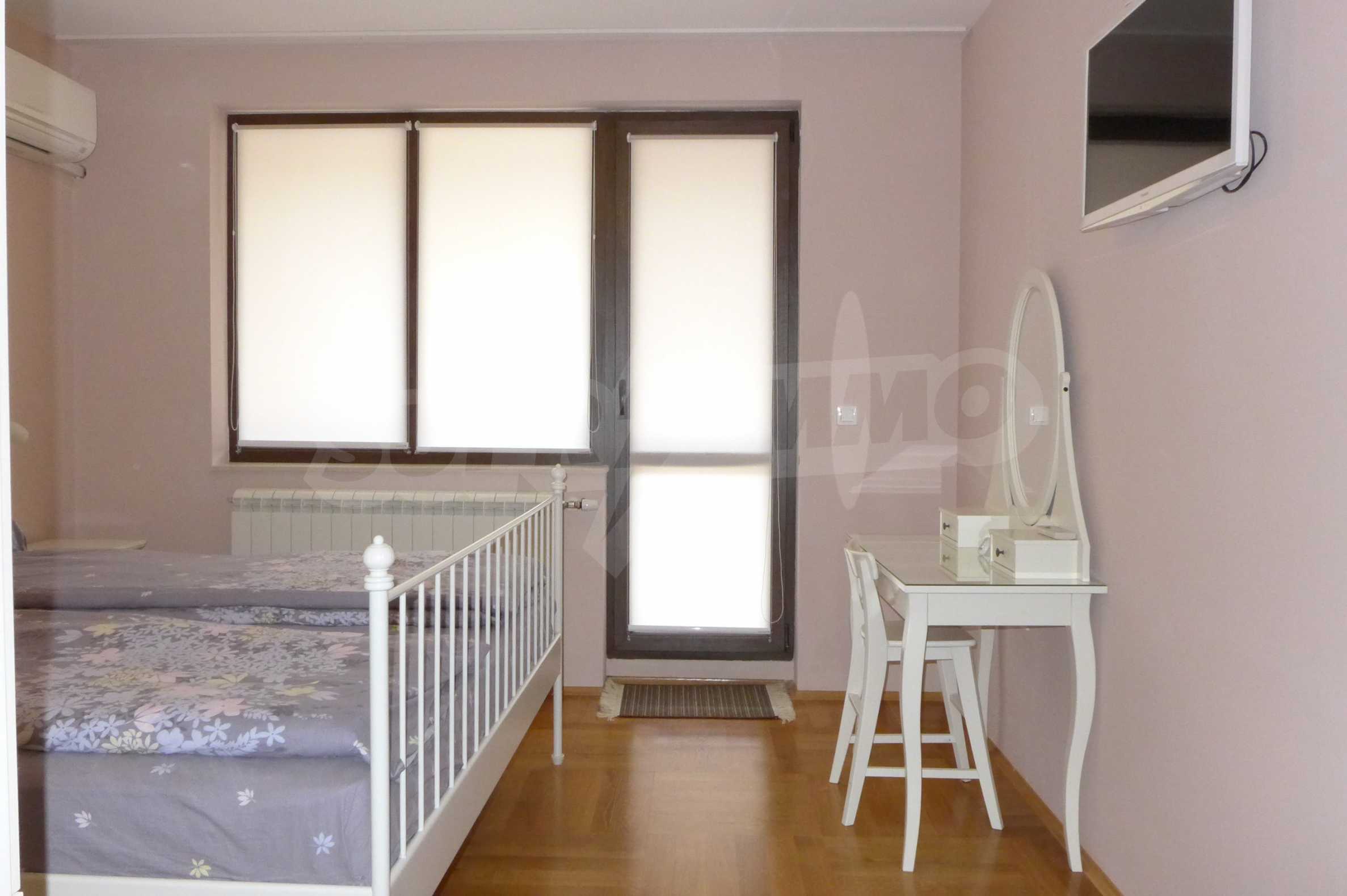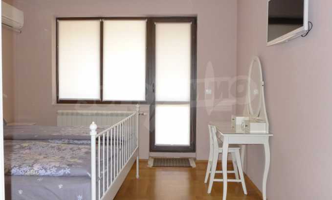 We offer you this apartment with a total area of 200 m2. It is set on the 5-th last floor and faces east-west. The living area is distributed between a corridor, a spacious living room, a kitchen, two bedrooms /one of it with separate WC/ bathroom and terrace/, another WC/ bathroom and toilet. A big terrace surrounds the west side of the apartment. The property is supplied with air-conditioners and gas heating system. Armored front door, interior doors, painted walls, parquet flooring, tiled flooring and upvc window frames are available in the property. The property is connected to electricity, gas heating, water and communal sewage system.