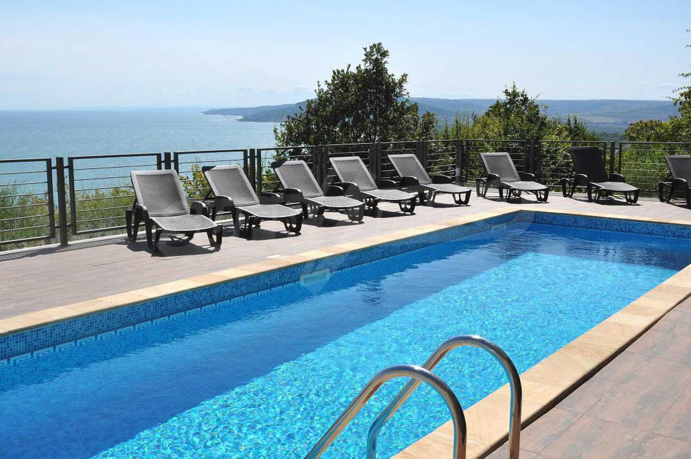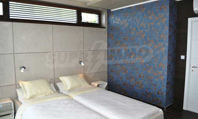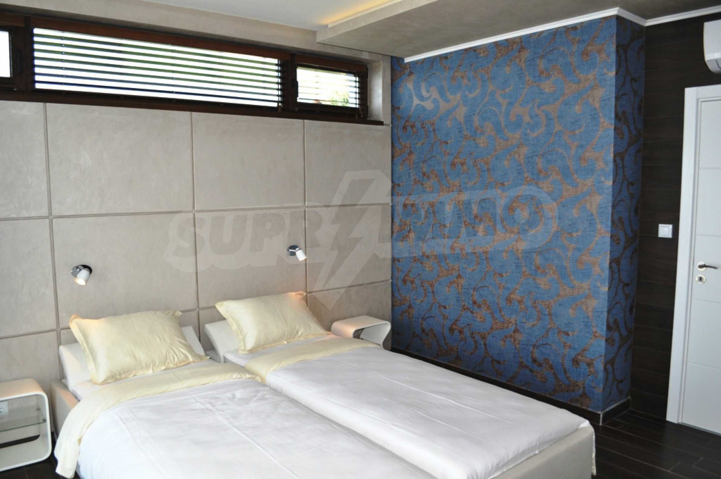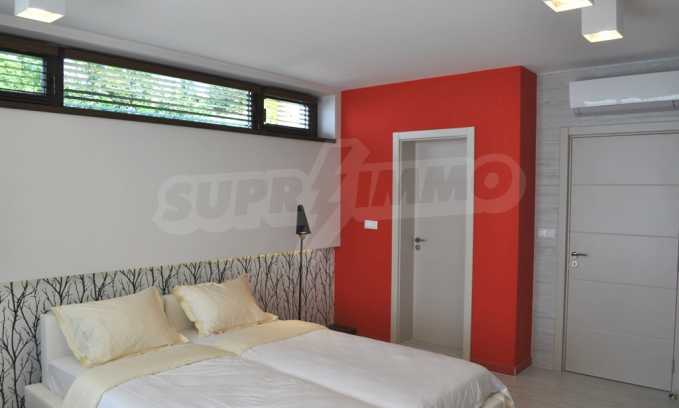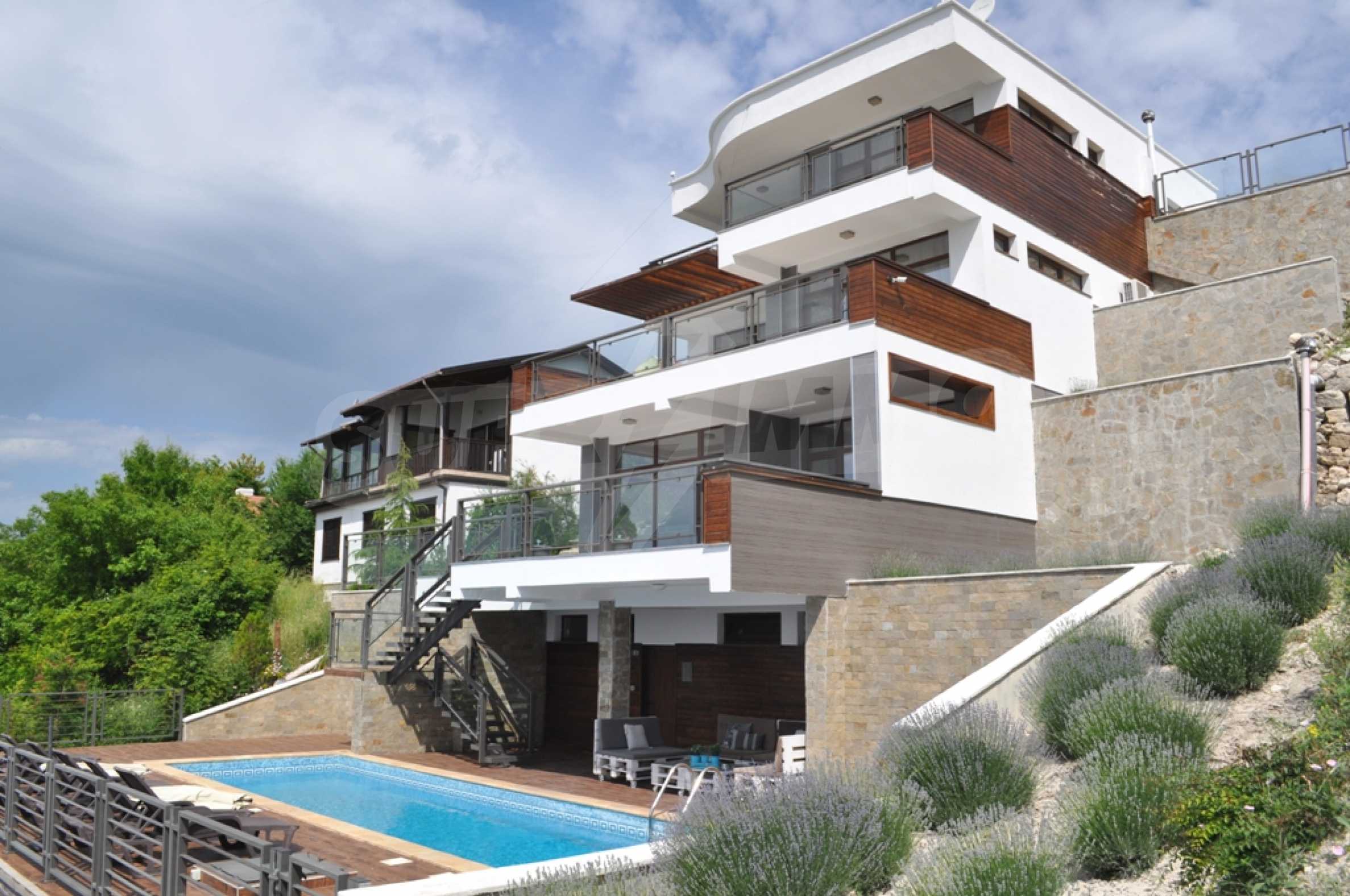 Villa Jazzy is located 3 km from the beach of Albena, in an ecologically clean area, with green hills, incredible sea views and fresh air. The house offers modern design, impressive sea views, a swimming pool with a relaxation area, 4 bedrooms with 4 bathrooms, a spacious living room with a kitchen, a dining area, sofas and a bathroom adjacent to the living room. Outside, one parking space awaits you in the yard. It is being rented fully furnished and equipped.