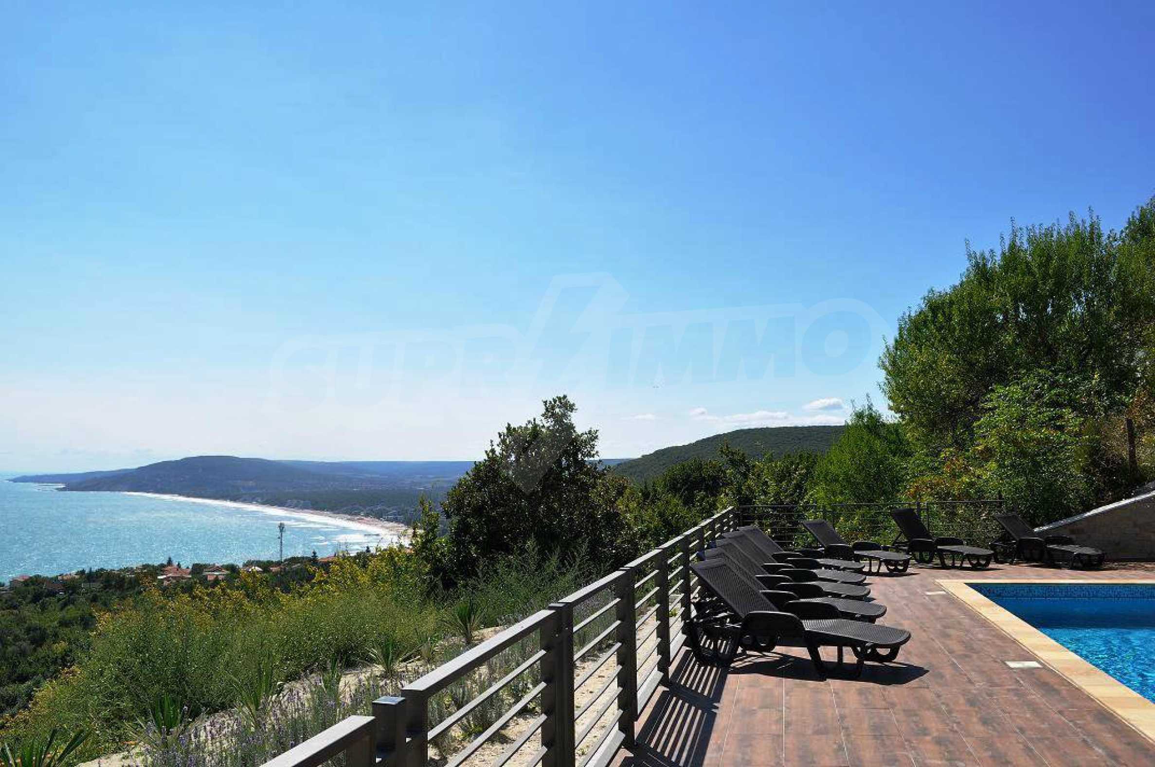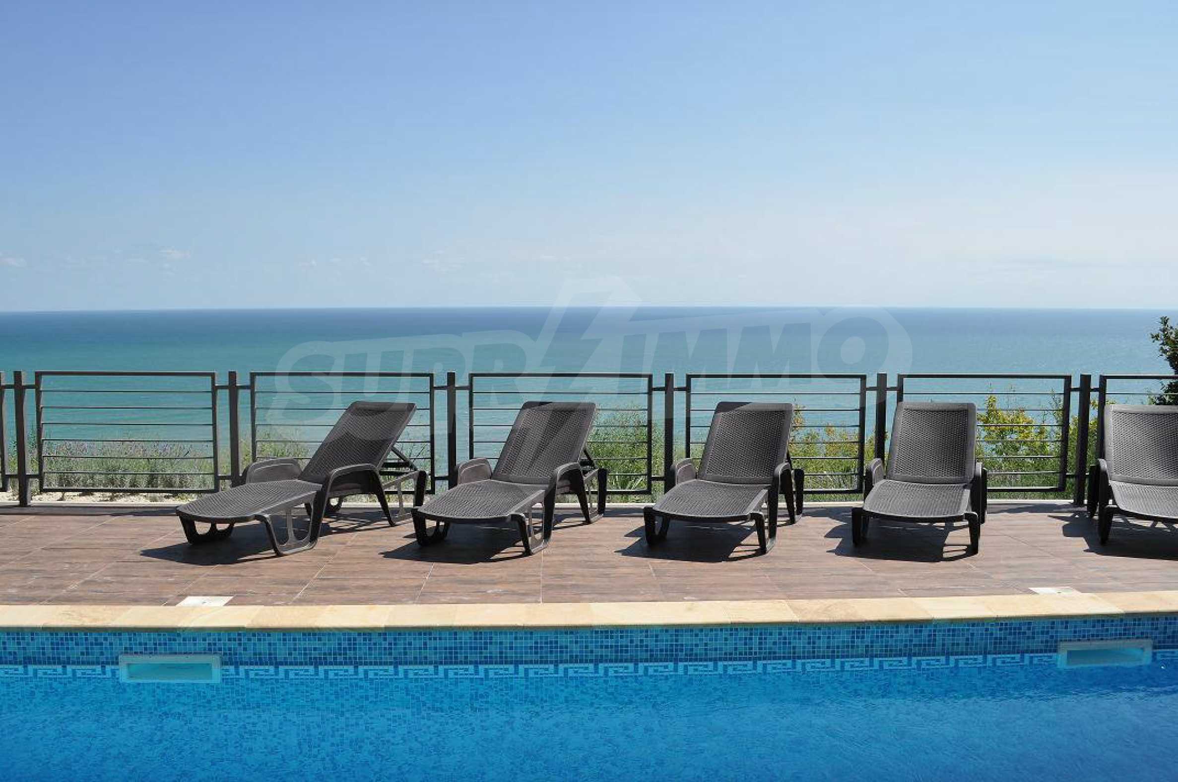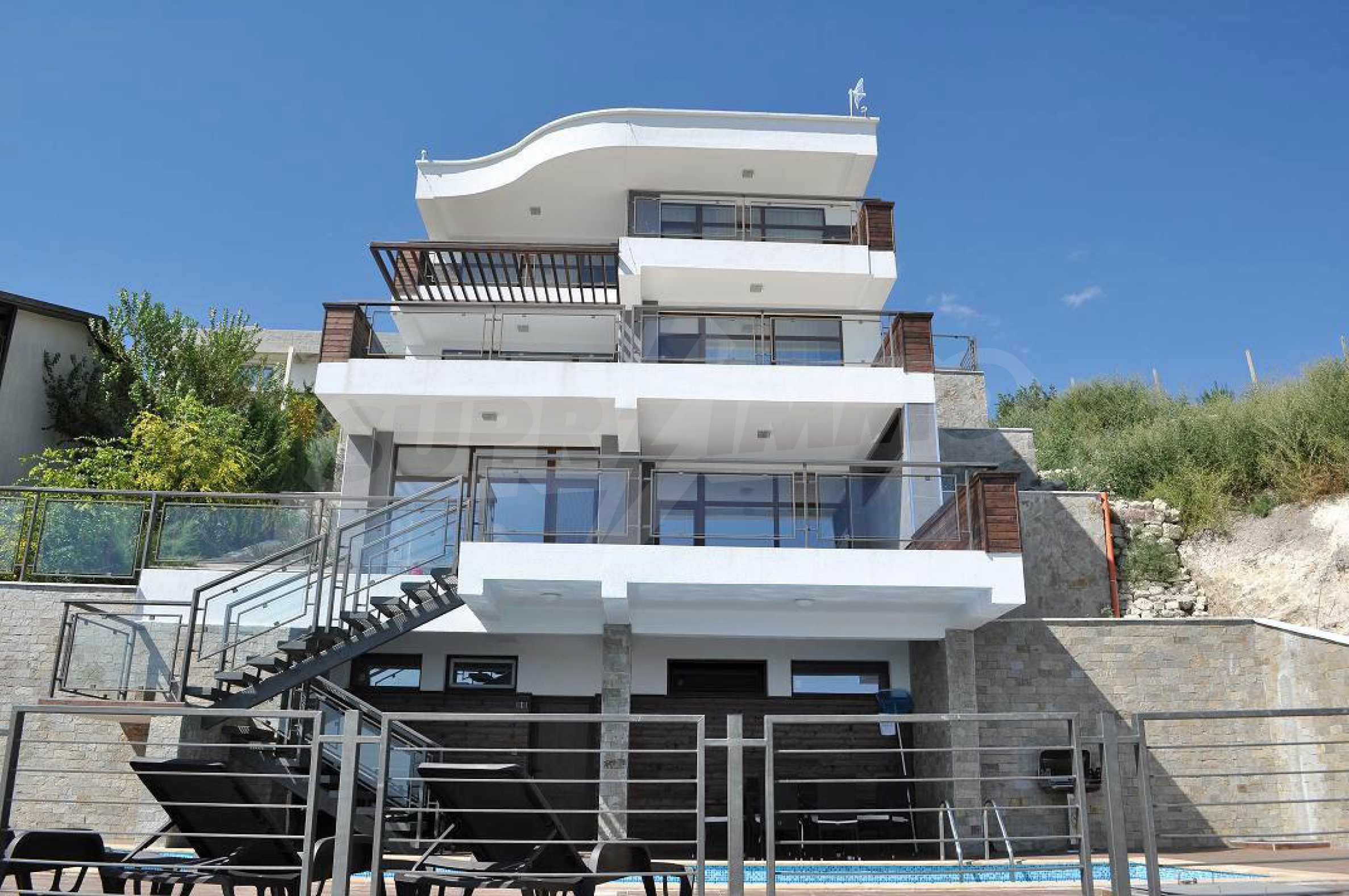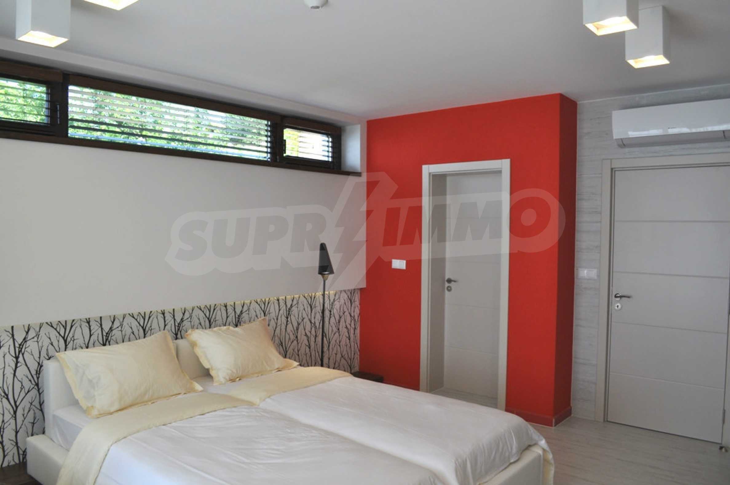 Villa Jazzy is located 3 km from the beach of Albena, in an ecologically clean area, with green hills, incredible sea views and fresh air. The house offers modern design, impressive sea views, a swimming pool with a relaxation area, 4 bedrooms with 4 bathrooms, a spacious living room with a kitchen, a dining area, sofas and a bathroom adjacent to the living room. Outside, one parking space awaits you in the yard. It is being rented fully furnished and equipped.