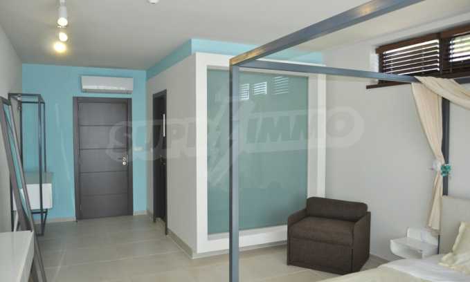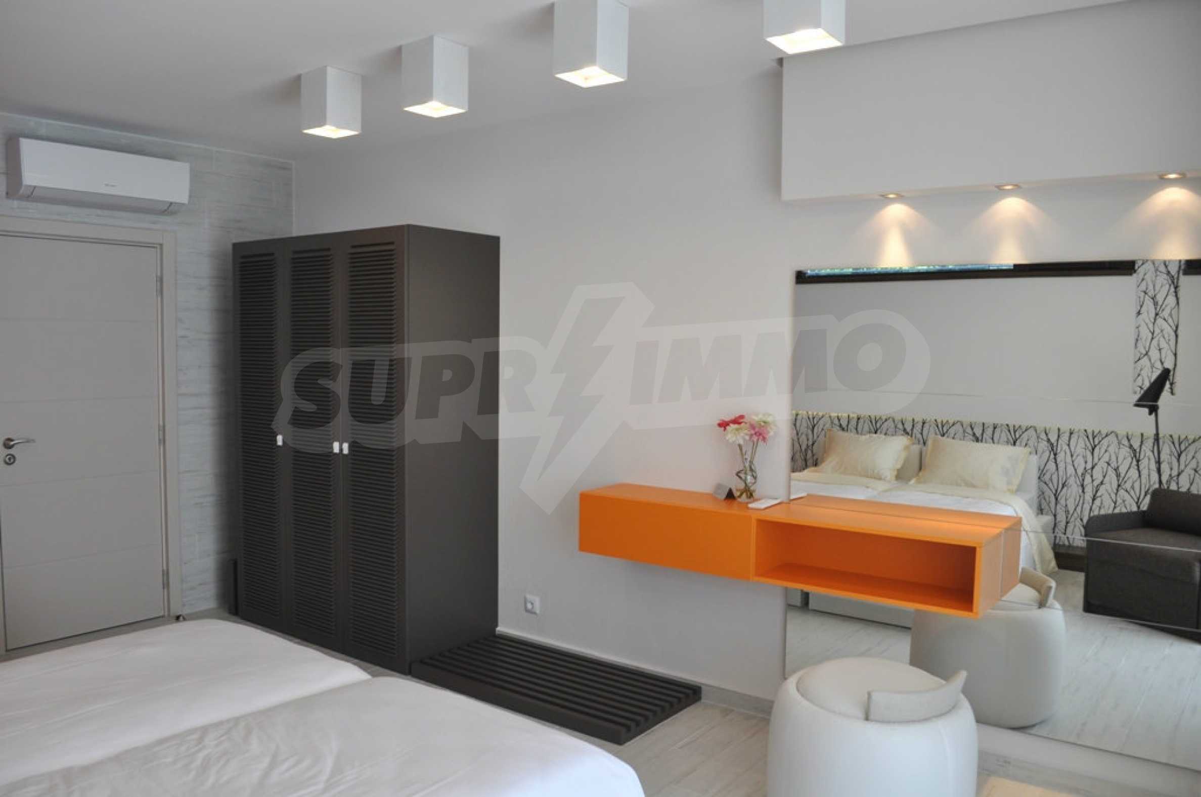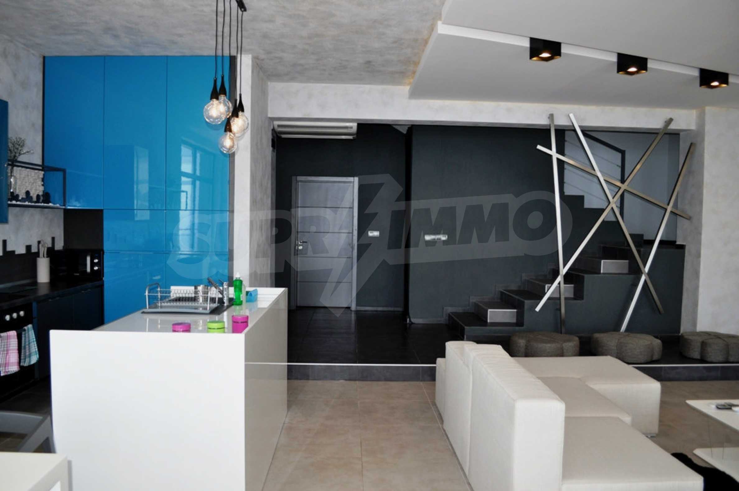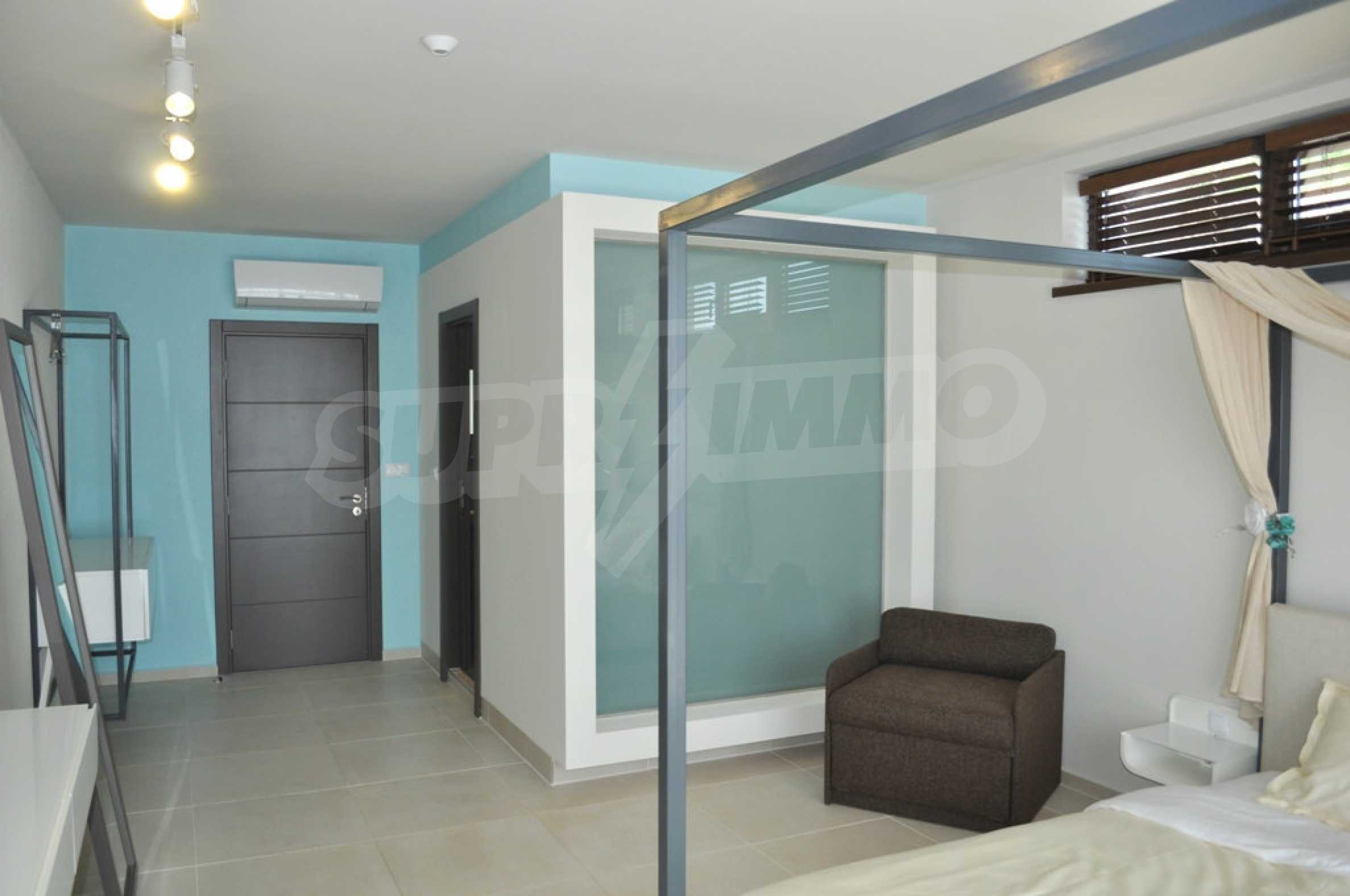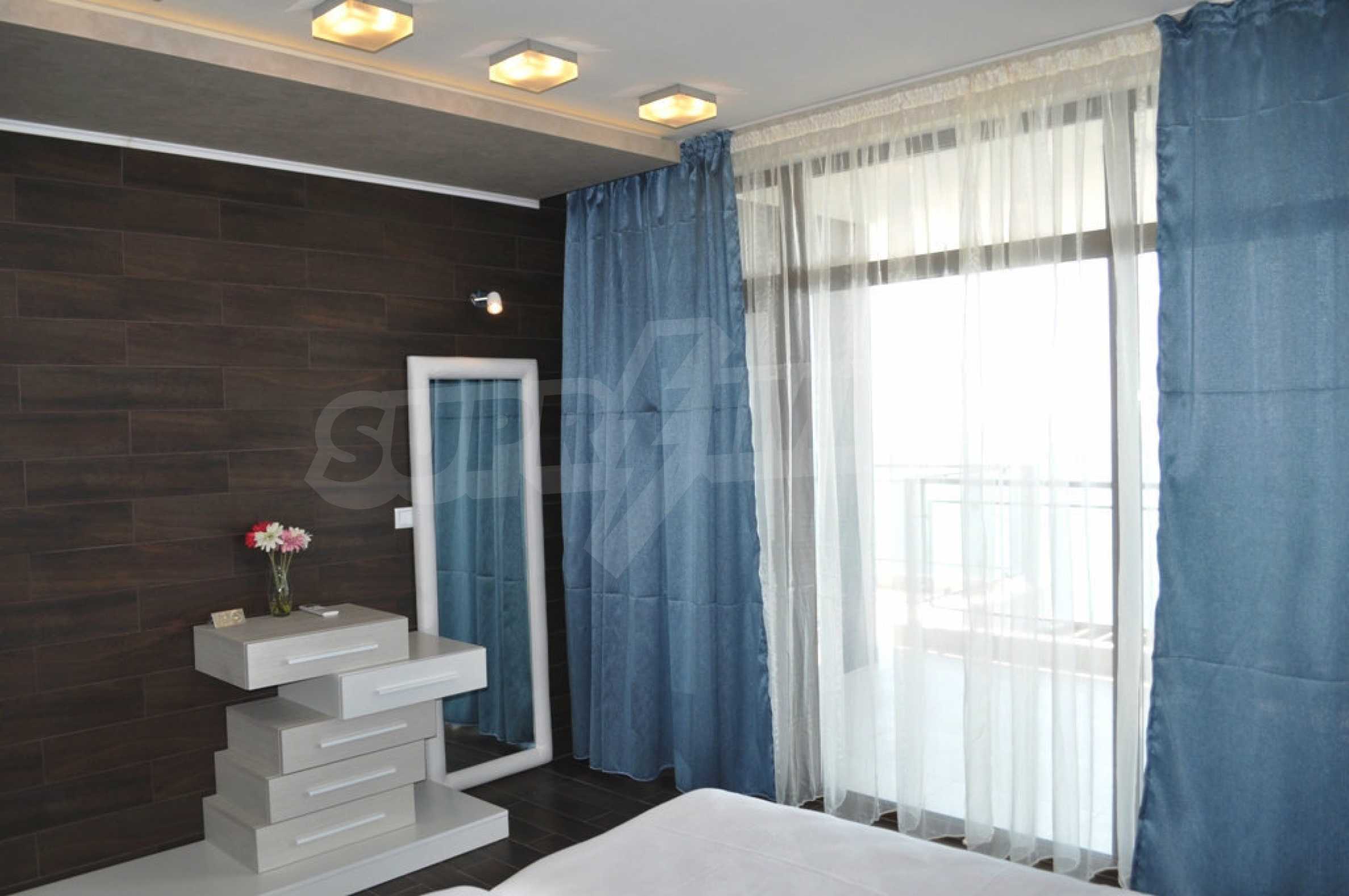 Villa Jazzy is located 3 km from the beach of Albena, in an ecologically clean area, with green hills, incredible sea views and fresh air. The house offers modern design, impressive sea views, a swimming pool with a relaxation area, 4 bedrooms with 4 bathrooms, a spacious living room with a kitchen, a dining area, sofas and a bathroom adjacent to the living room. Outside, one parking space awaits you in the yard. It is being rented fully furnished and equipped.