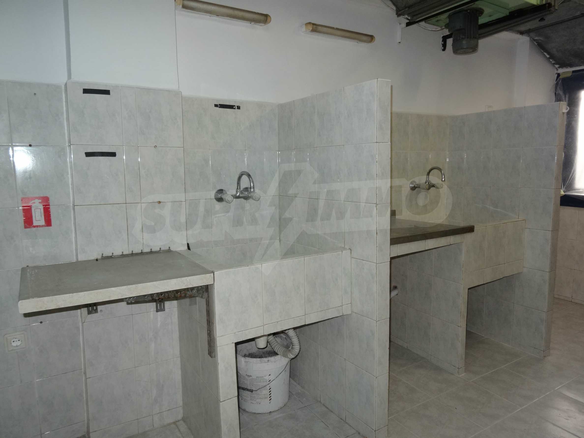 This snack bar consists of a large hall in the basement, toilet for visitors and staff toilet. On the ground floor there are: commercial hall, dishwashing room, kitchen, for place for vegetable preparation, place for meet preparation, place for egg disinfection.