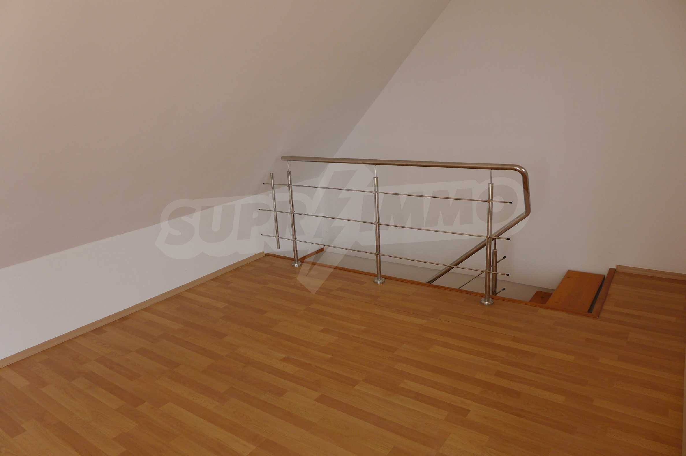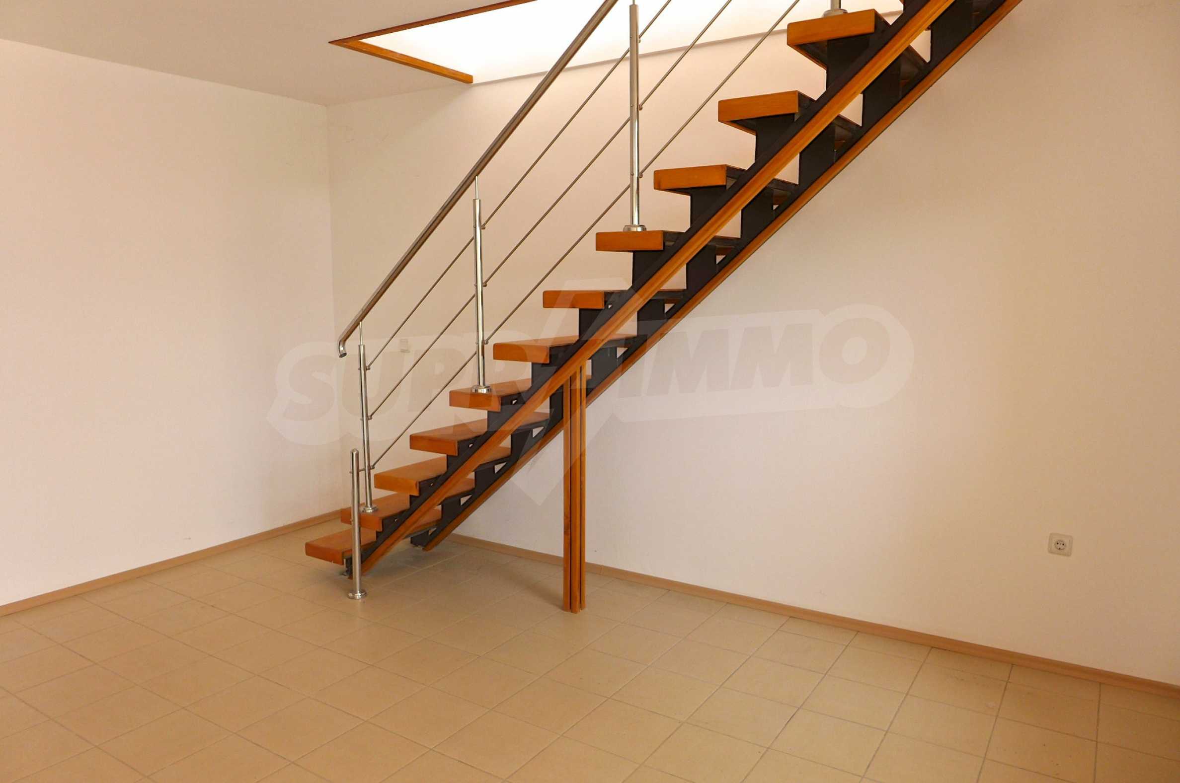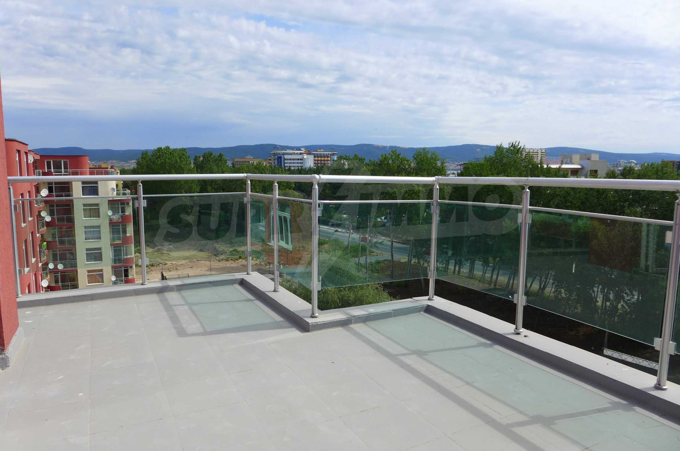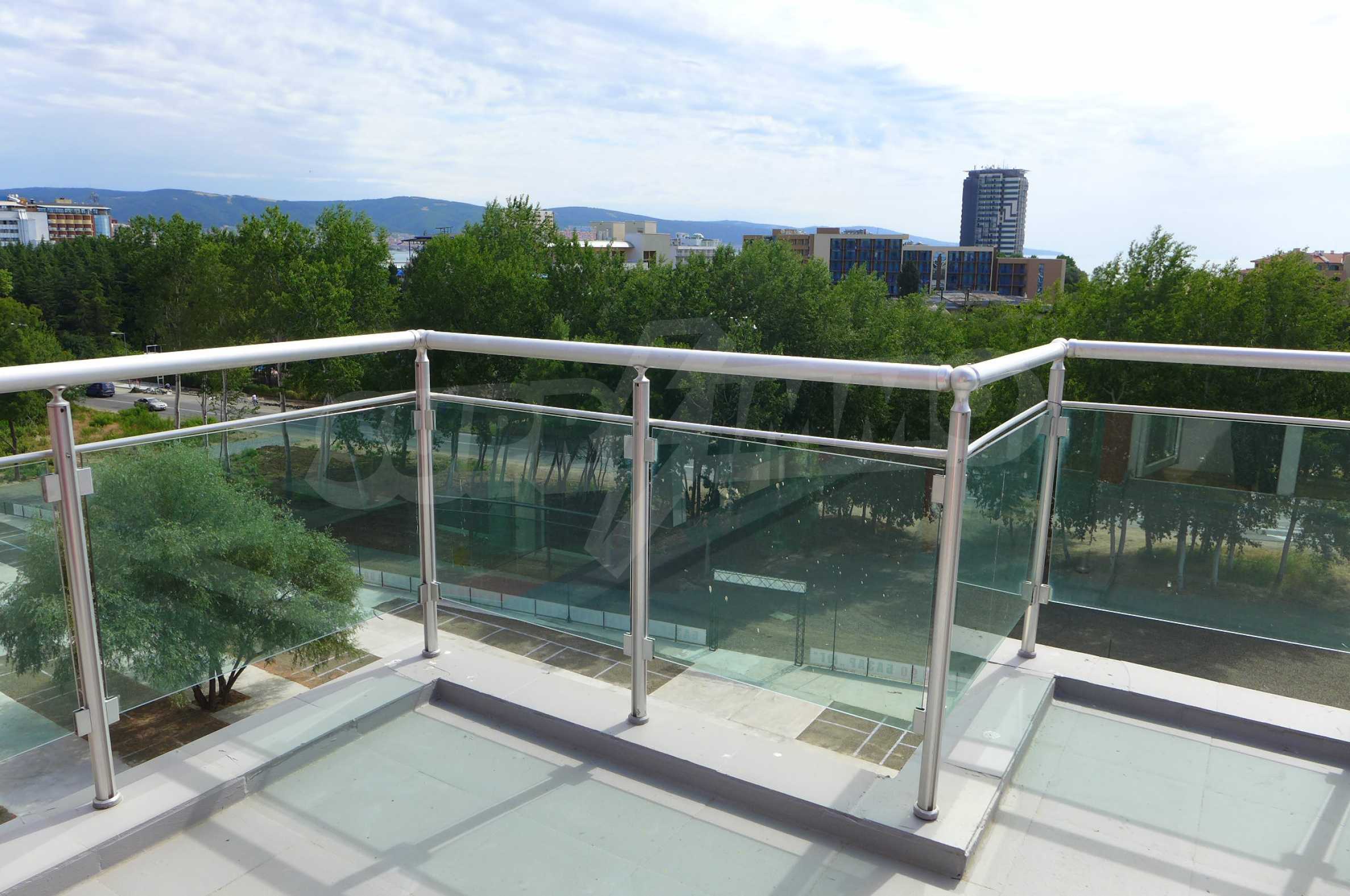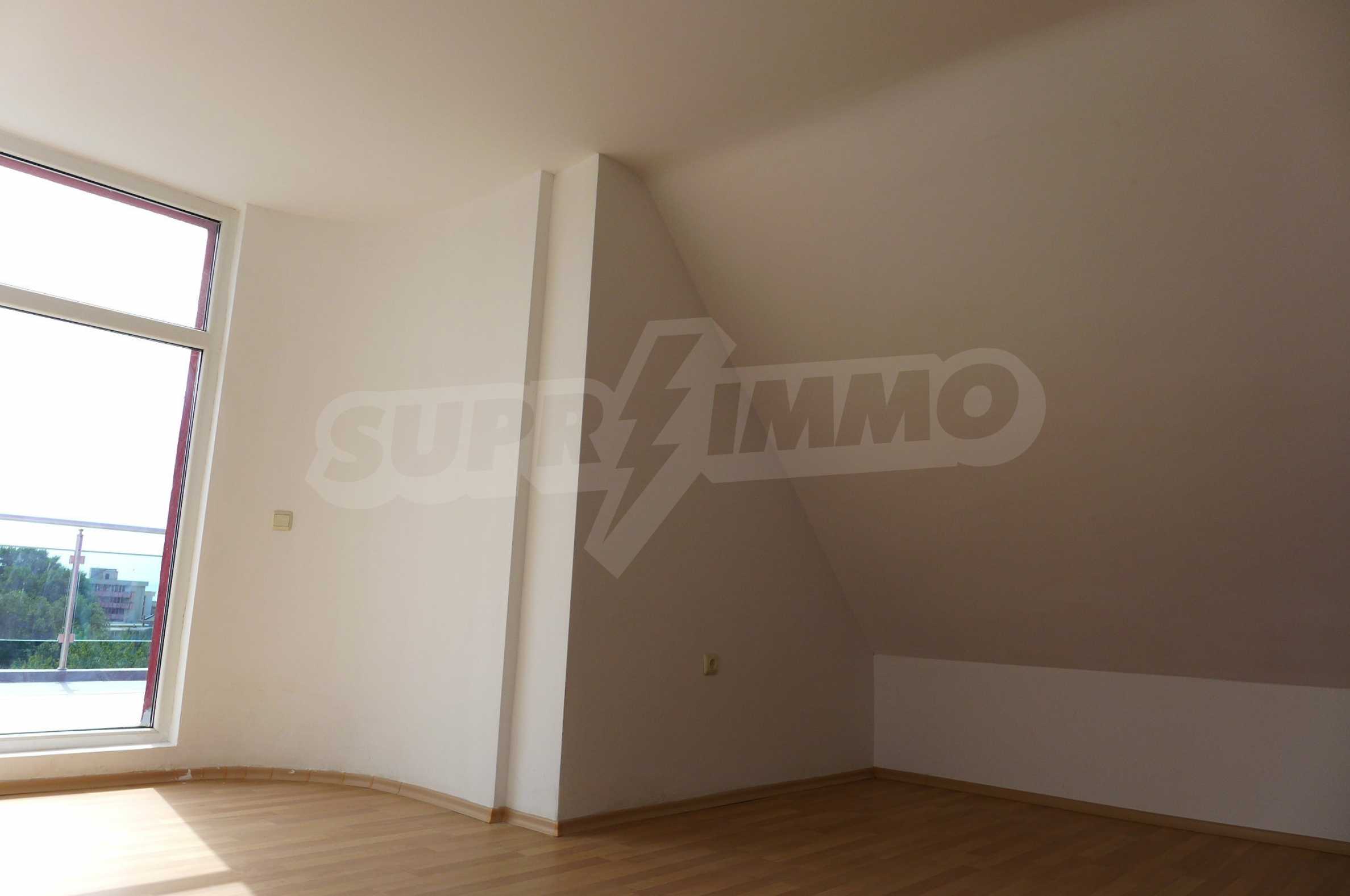 Two-level apartment in the western part of the prestigious seaside resort Sunny Beach, 70 meters from a bus stop, close to the sea (300 m) and to a variety of entertainments and shops, 600 meters from the center of the resort and 700 meters from Cacao Beach. The apartment is located on the fifth floor in the gated complex Global Ville, behind the former Tiffany bar and opposite the Continental Hotel (just across the street).