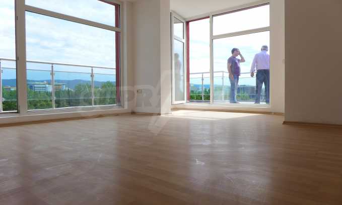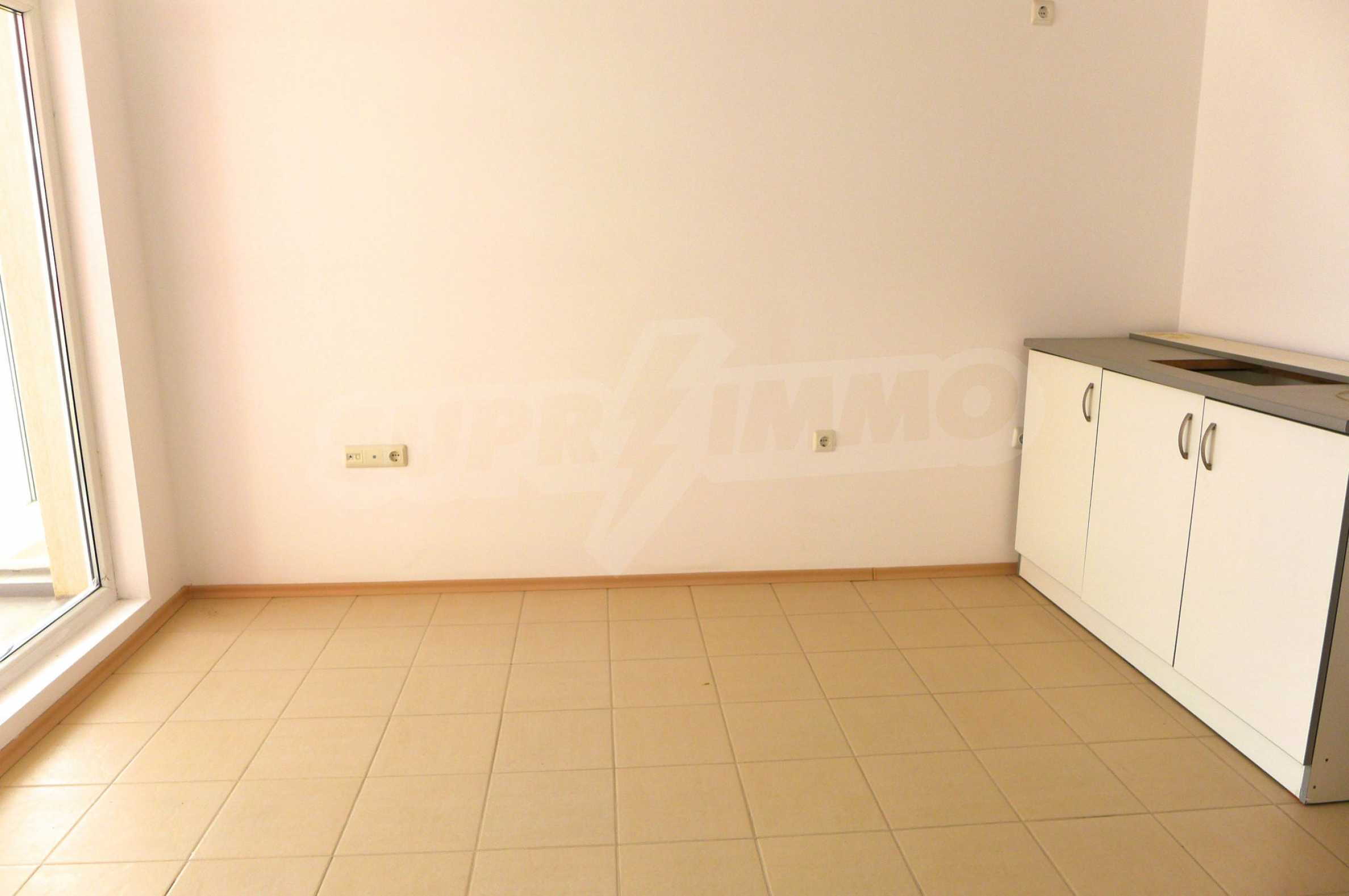 The apartment has a total area of 77 sq.m. The property is sold unfurnished with kitchen cabinets and a bathroom with WC and two balconies. The floors are with tiles, the windows with PVC windows and the walls with Italian plaster. The apartment is equipped with cable TV and Internet.
