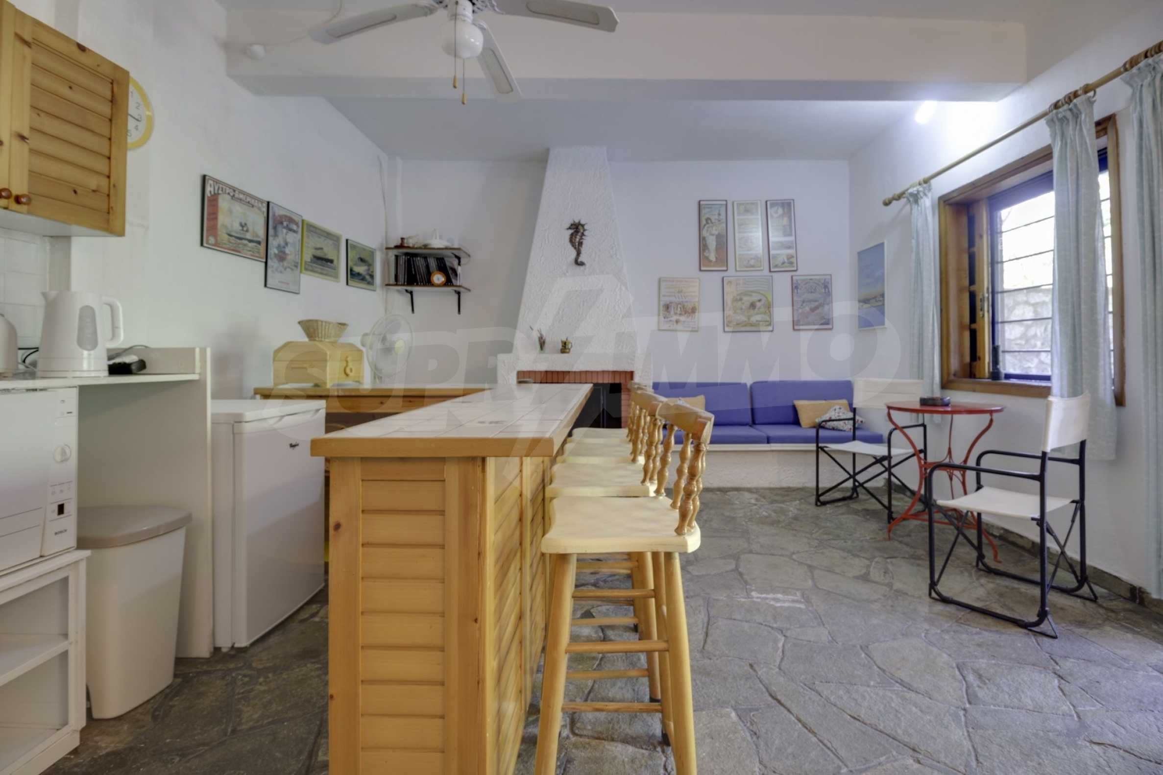 We offer you this house with a total area of 205 m2. It was constructed in 1985. The property has electrical heating, electrical heating system, fireplace and solar panels. An air-conditioning system - also available. Wooden window frames are available in the property. The property is connected to own water supply and septic tank. Some of the other available facilities that you will certainly consider important include: a balcony, a bathroom with toilet, a parking space and a storage room. From the inside you will be able to enjoy wonderful sea views.