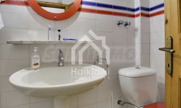 Detached house in Kassandra, halkidiki, on a beautiful spot, close to the beach and with amazing view. The house is 205 sqm and consists of two large living rooms, four bedrooms and three bathrooms. On the first level there is a large living room, kitchen, three bedrooms and two bathrooms. On the second level there is another living room, bedroom and a bathroom. The house is fully furnished and equipped with all the appliances. It is located on a plot 6759 sqm, beautifully landscaped. The property has a great privilege regarding its land, which is a very big field, with large building factor, fully exploitable.