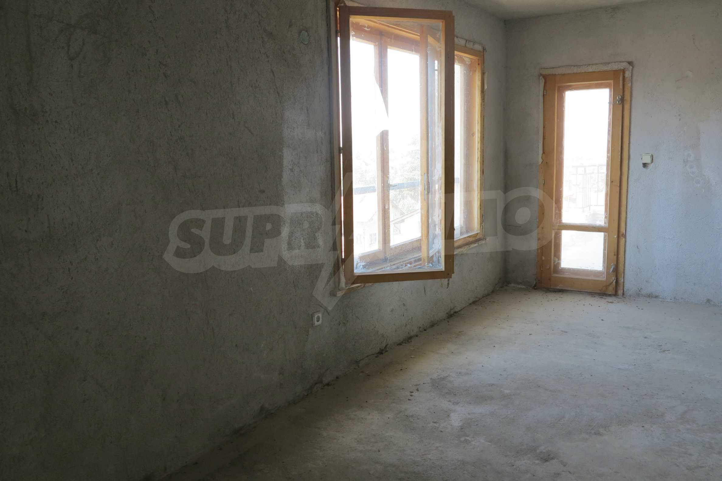 We have the pleasure to present for sale an one-bedroom apartment with unfinished interior and an area of 102.14 sq.m. + 1.86 sq.m., a part of the beautiful mountain town of Samokov, 60 km from Sofia International Airport. The apartment is set on the third floor of a brick building with great location, just below the hill Rido, close to the lovely suburban park Rido, suitable for walking and relaxation in the peace and coolness of the pine forests, with great opportunities for sport - a football field, motor track.