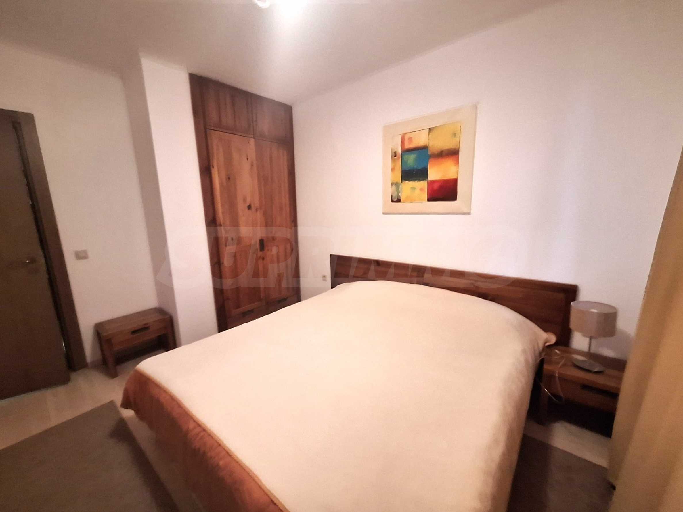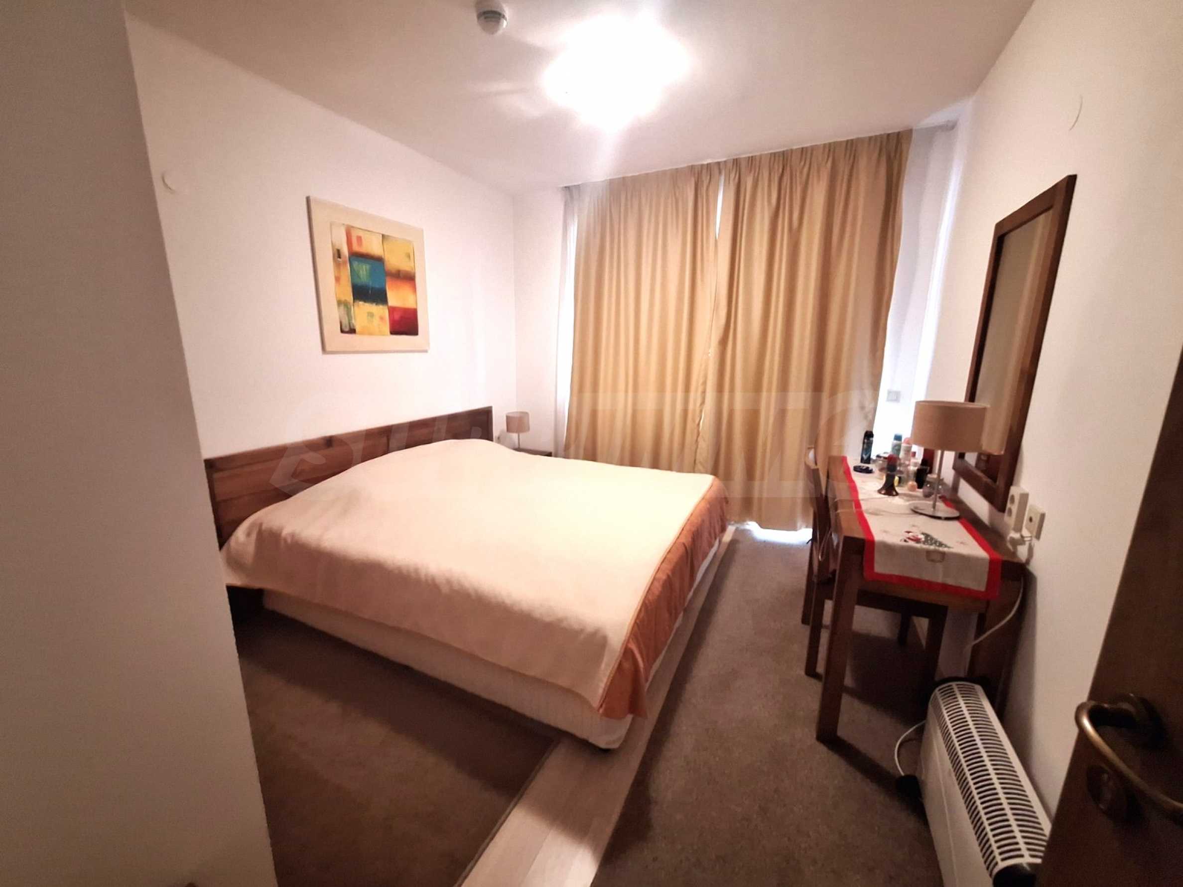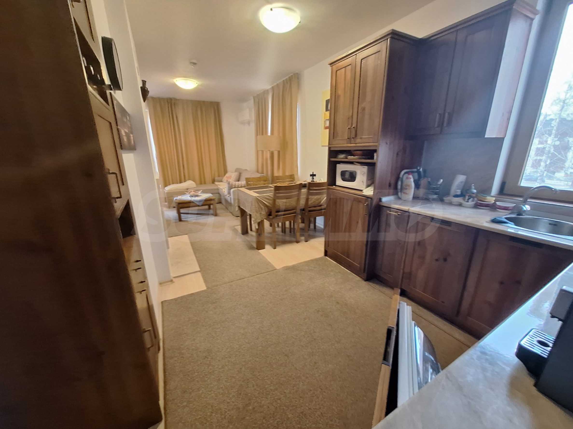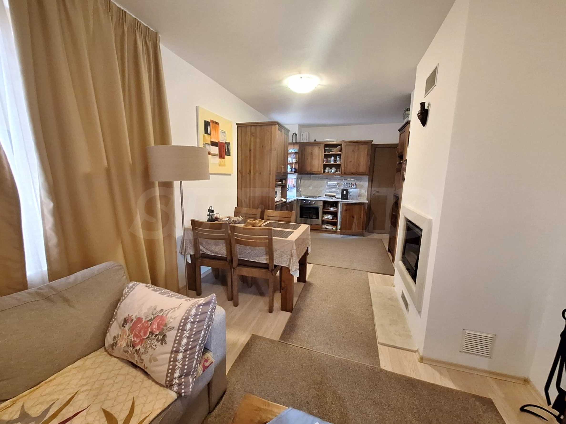 We are pleased to present this attractive offer for the sale of a stylishly furnished 2-bedroom apartment in the 4-star apart-hotel St. Johns Hill with low maintenance fee (annual maintenance fee of 4.5 EUR / sq.m.), located in the picturesque district of Sveti Ivan, at walking distance to the lift in Bansko mountain resort and to the downtown area (500 m), near the complex Sv. Ivan Rilski. St. Johns Hill complex attracts tourists with its excellent conditions for recreation. The offered for sale apartment has magnificent views of the neighboring buildings, the forests and Pirin Mountain.
