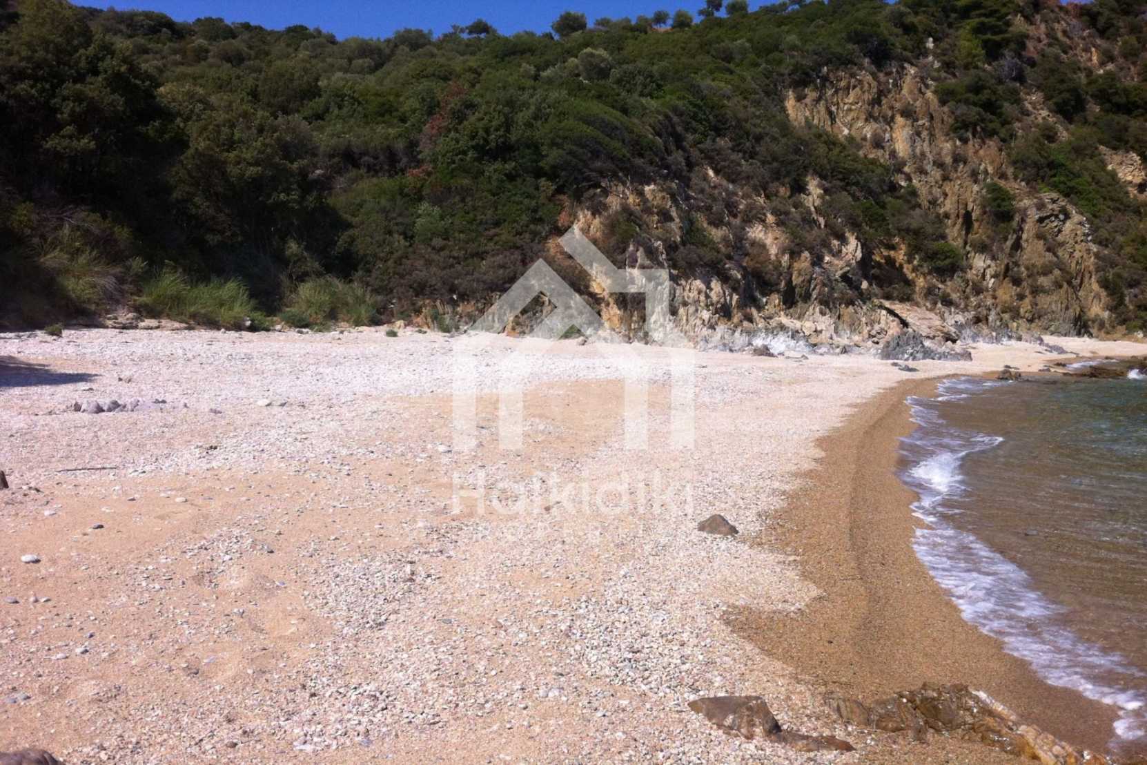Large field in Municipality of Aristotelis - Athos, Halkidiki. It covers 7.585 sqm in front of the beach and is surrounded by a lush green, forested area. The field provides private access to the beach and is outside the village. It is also slanted, fenced, complete and buildable. Ideal for the construction of a detached house or several smaller houses, as well as for commercial use.