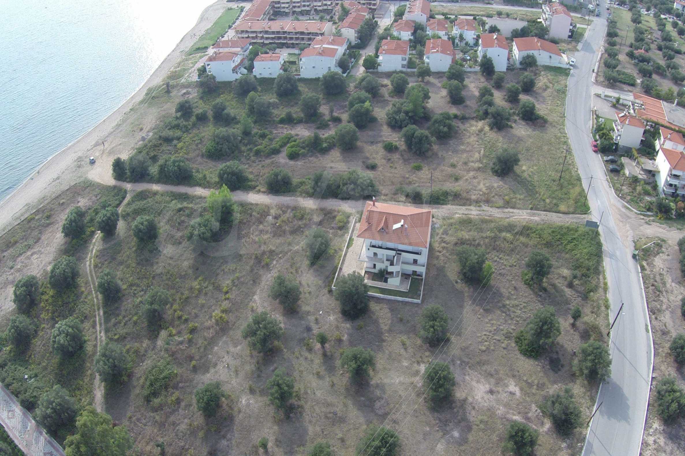 Exclusive plot with an area of 4550 sq.m. in Sithonia, Halkidiki. It is located on the first line and has unobstructed, permanent view. It has a facade to the beach and is a corner property. The plot is in the village and is complete and buildable, ideal for the construction of houses, one detached or several ones, as well as for commercial use.