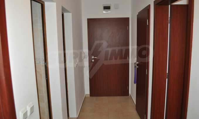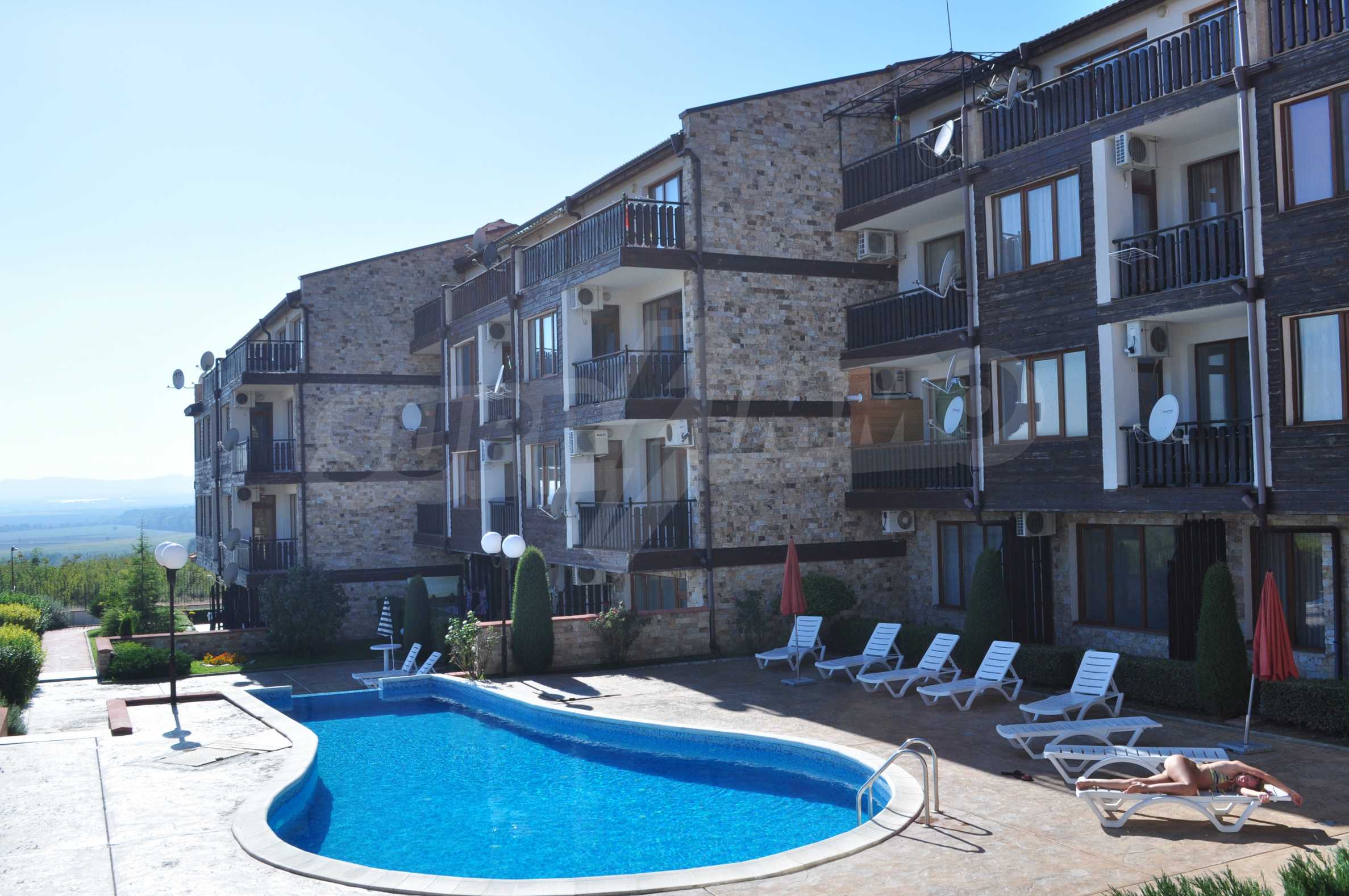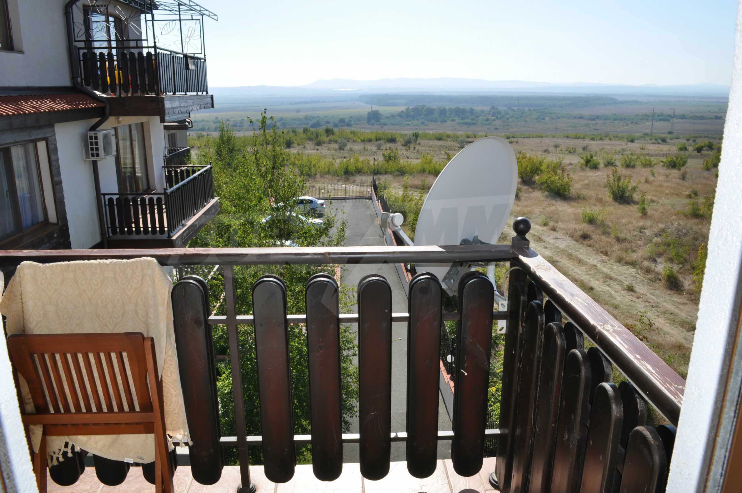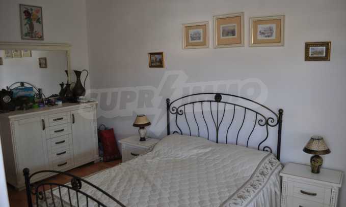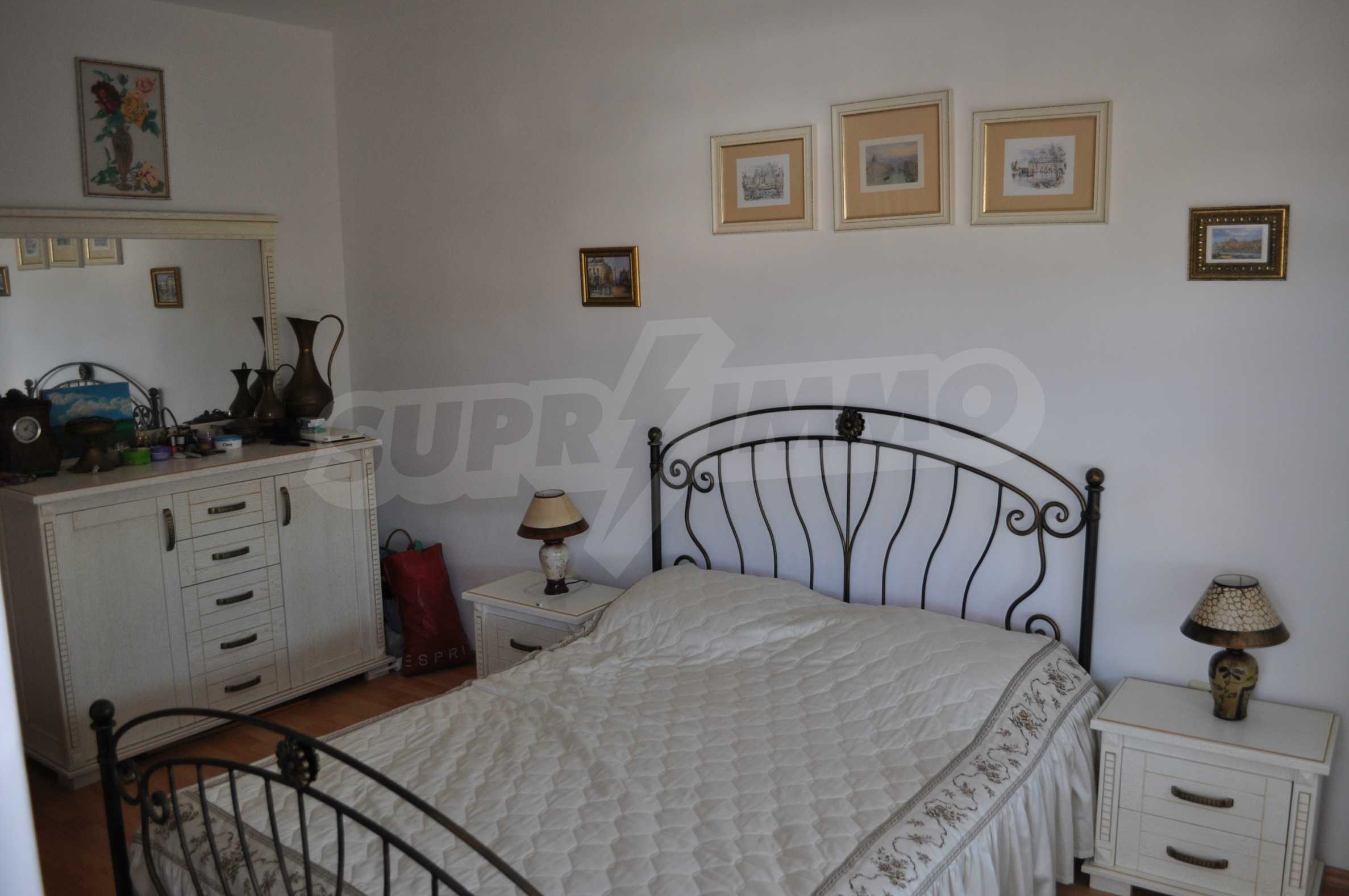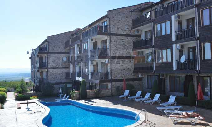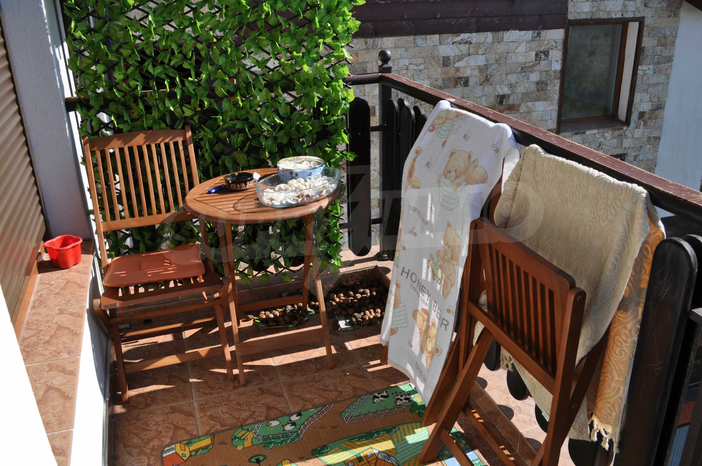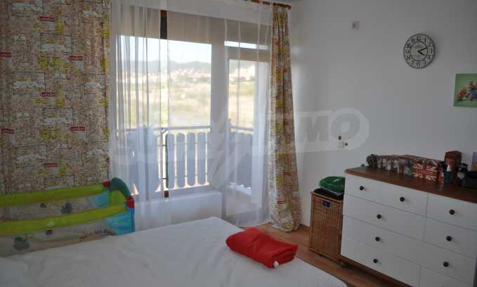 The new 2-bedroom apartment (2007-2008) is characterized by eastern exposure and an area of 103 sq.m. The rooms are finished with tiled / laminate flooring; windows - PVC, as well as full and comfortable furniture and necessary equipment. The kitchen is finished with appliances, a dining table; the living room - with a sofa and a TV set; the two bedrooms with a double bed and a wardrobe. The apartment has two balconies with spacious view of the surrounding countryside and the mountain. The property is equipped with telephone, cable TV and Internet.