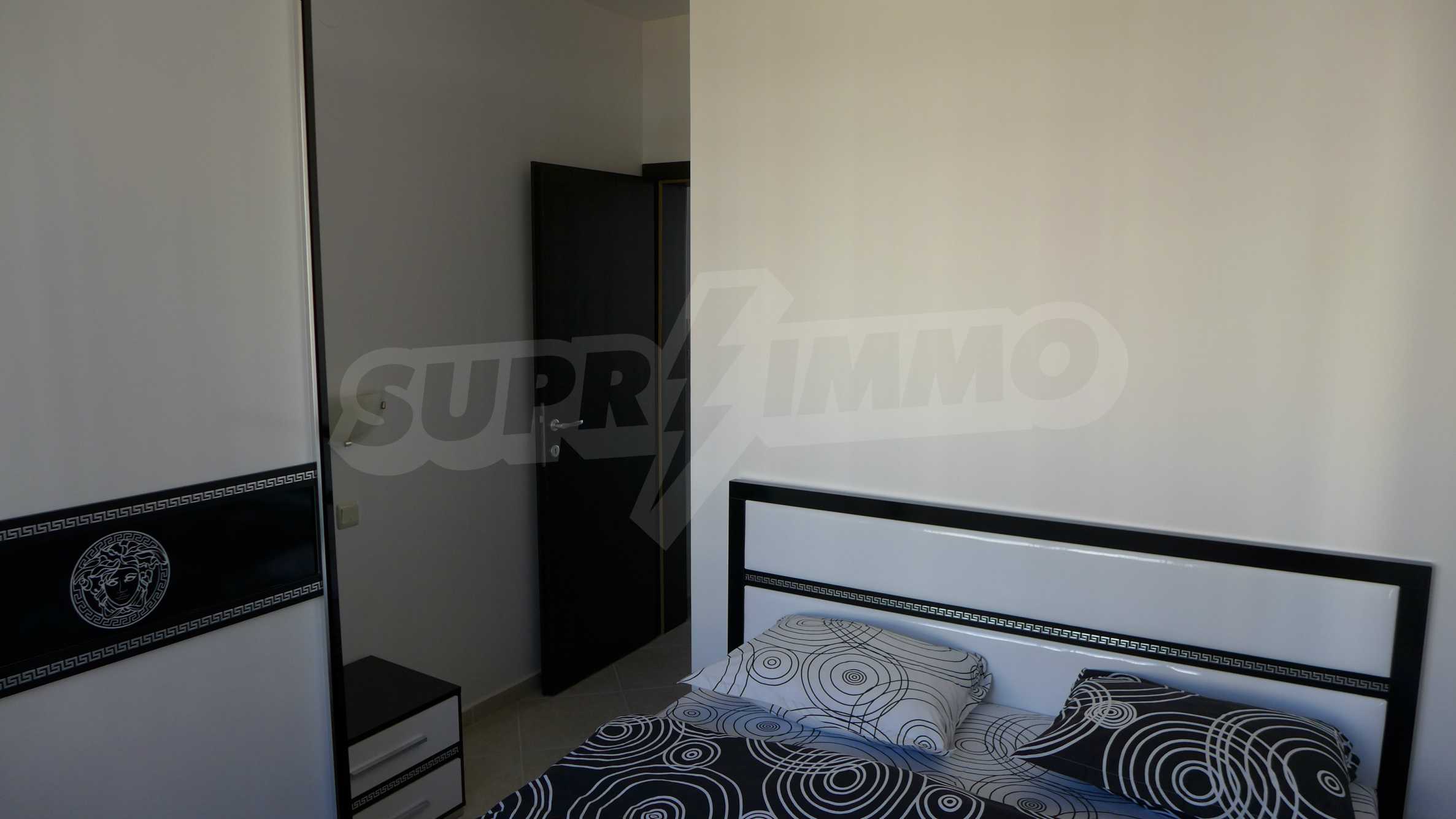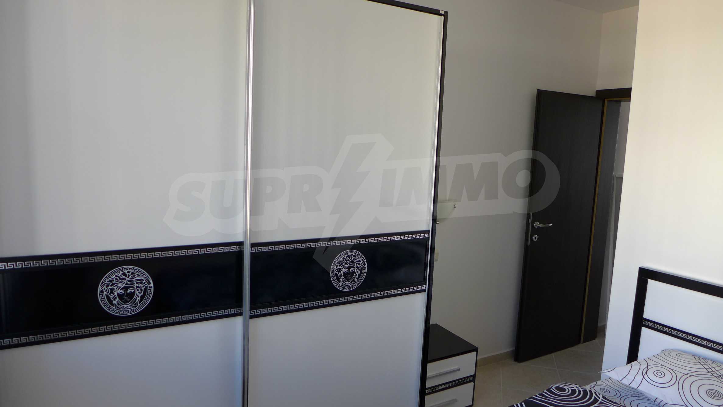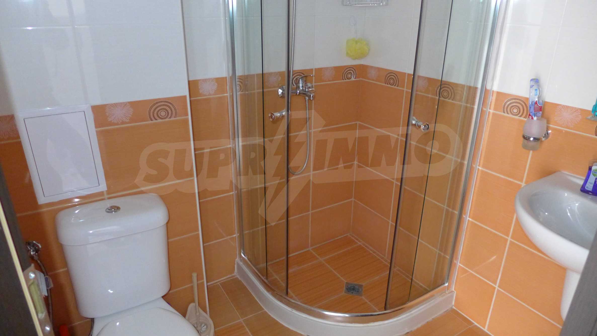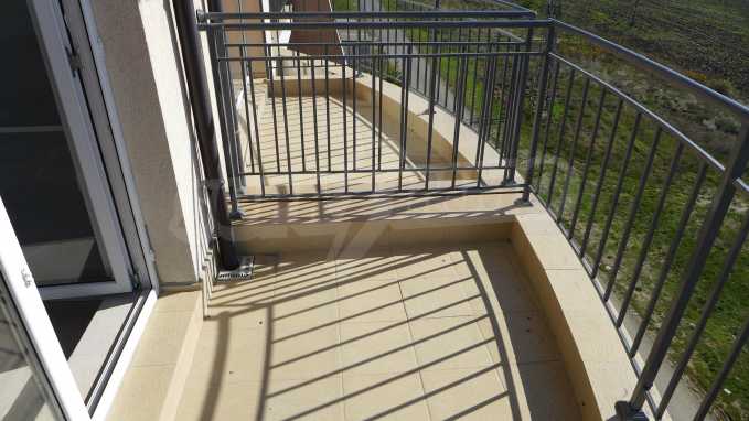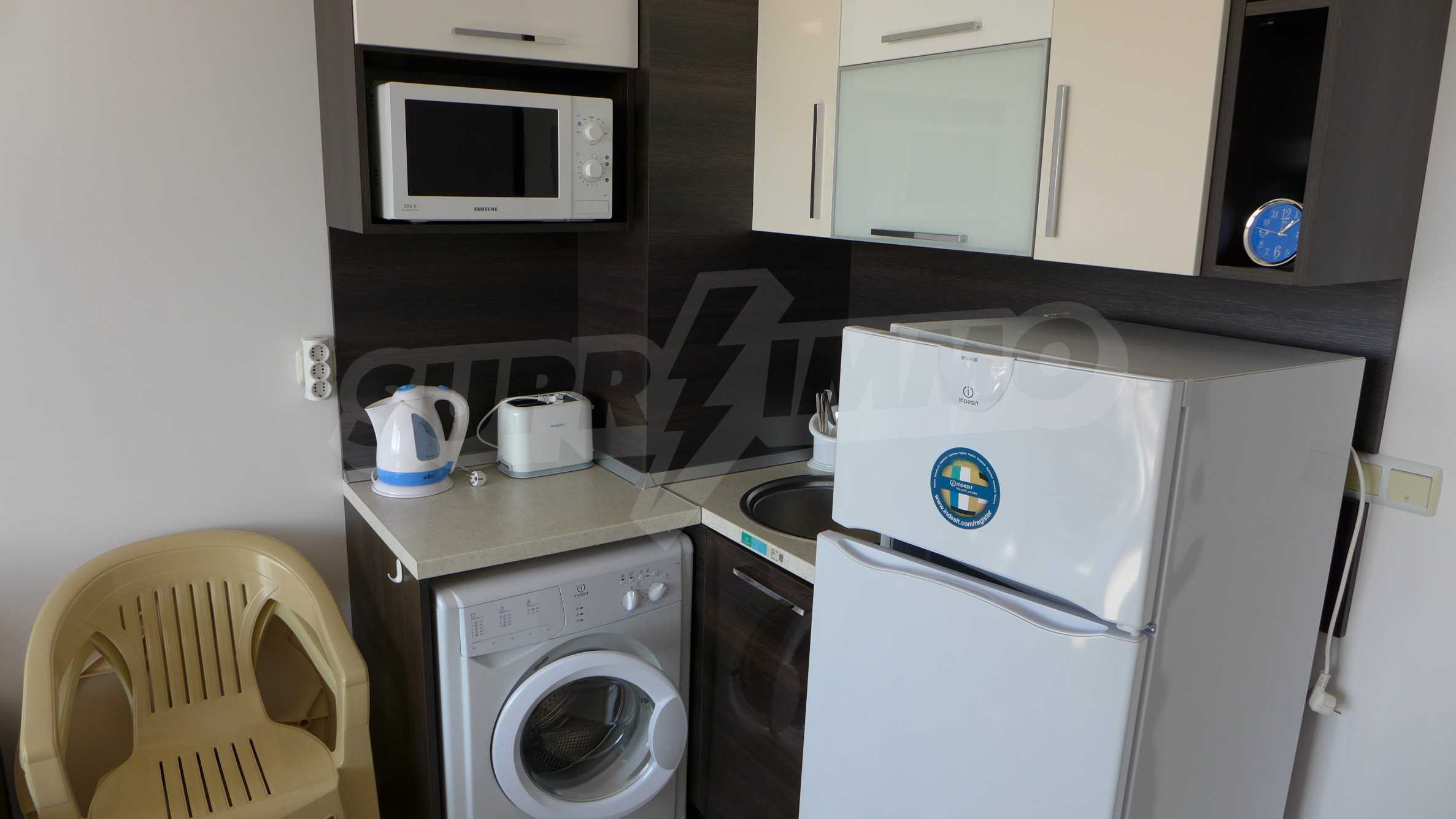The property offers a wonderful view of the surroundings, the sea and the swimming pool. The exhibition of the flat is South and North. The total area is 58.56 square meters, with available fully furnished living room with kitchenette, bedroom, balcony and bathroom.