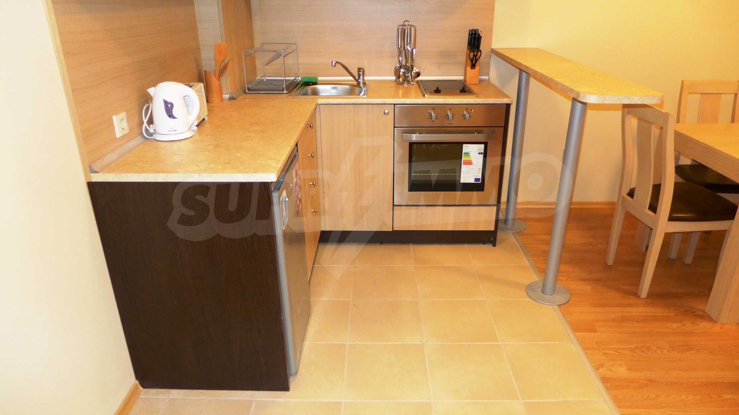 It is an excellent holiday home in clean and peaceful area with crystal mountain air, breathtaking landscapes, with quick and easy access to the ski slopes above Bansko and a popular golf course. The cozy holiday complex offers its guests modern facilities for pleasant holidays - indoor and outdoor swimming pools with children's section, fully equipped SPA center with Jacuzzi, sauna, steam room, relaxation area, beauty salon, massages, solarium, fitness. In addition, here you will find a restaurant with garden, lobby bar and vitamin bar, nonstop reception, wireless internet, outdoor parking lot with 20 places, shop, business center, children's playroom and children playground.