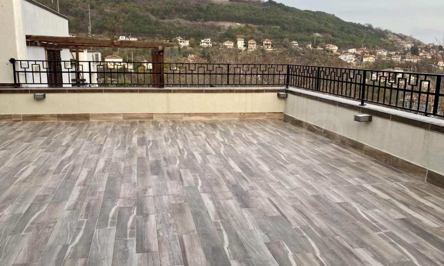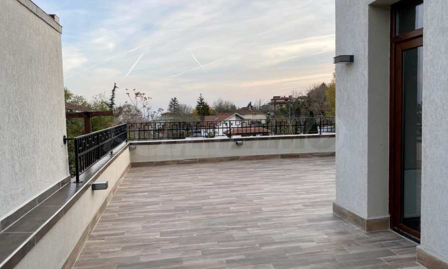 The property has external insulation, terraces - granite, armored front door, interior doors MDF, PVC double glazed windows, granite staircase, bathrooms/toilets- tiles, bedrooms and living room- laminate flooring, walls and ceilings in all premises plastered and painted, preparation and piping for mounting a Jacuzzi on the roof terrace, central air conditioning DAIKIN Alterma system is installed