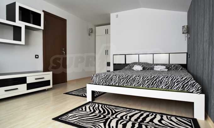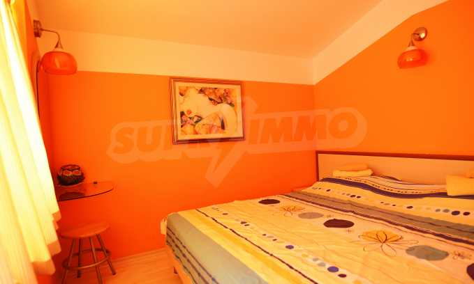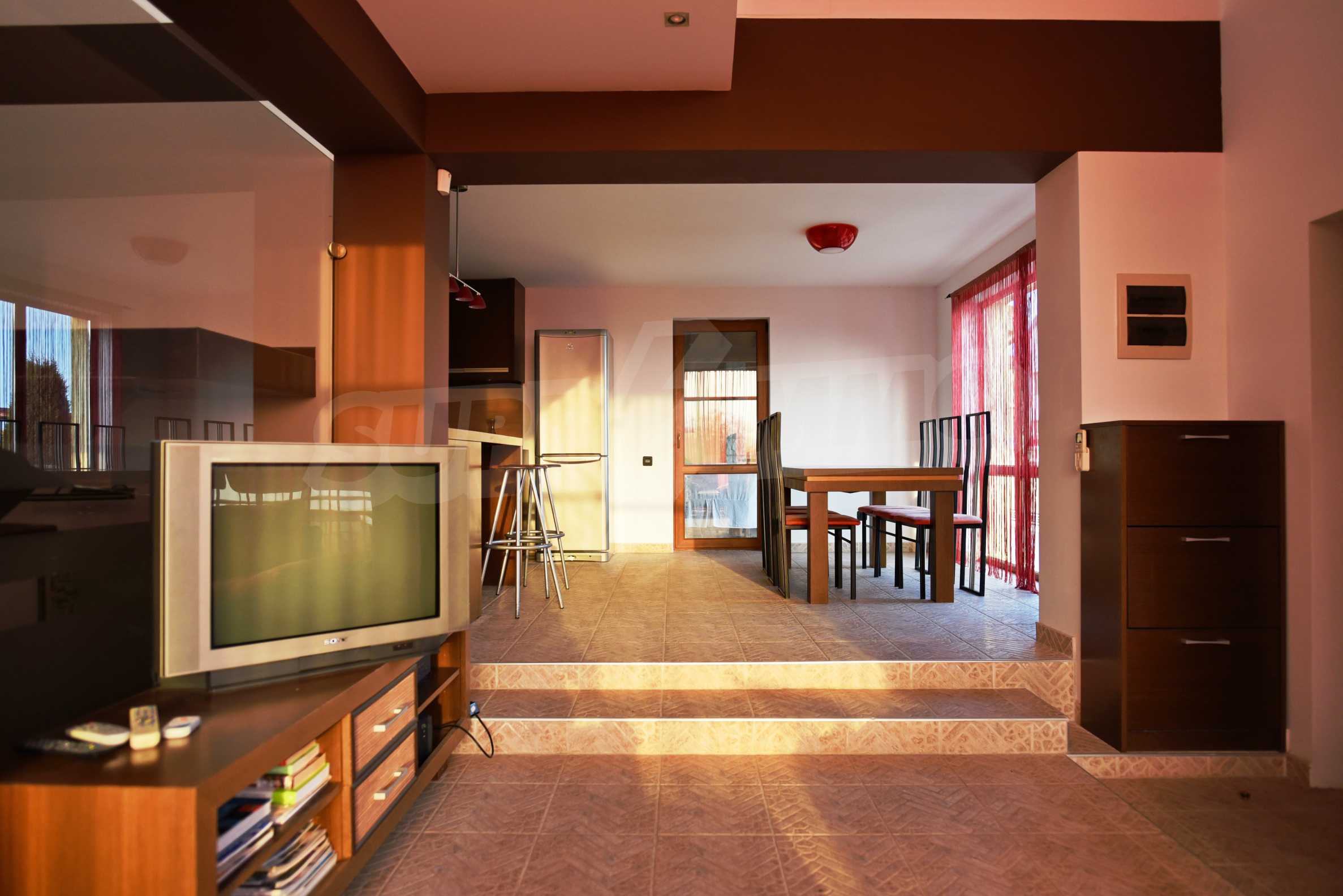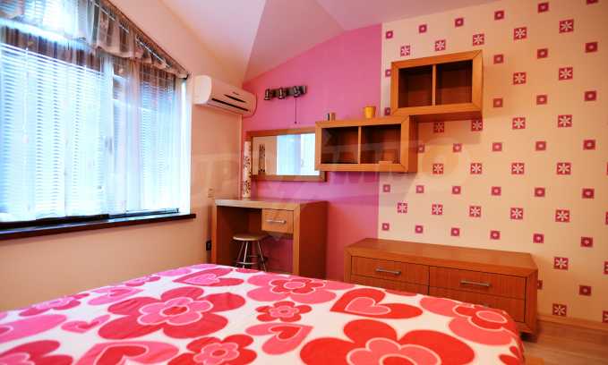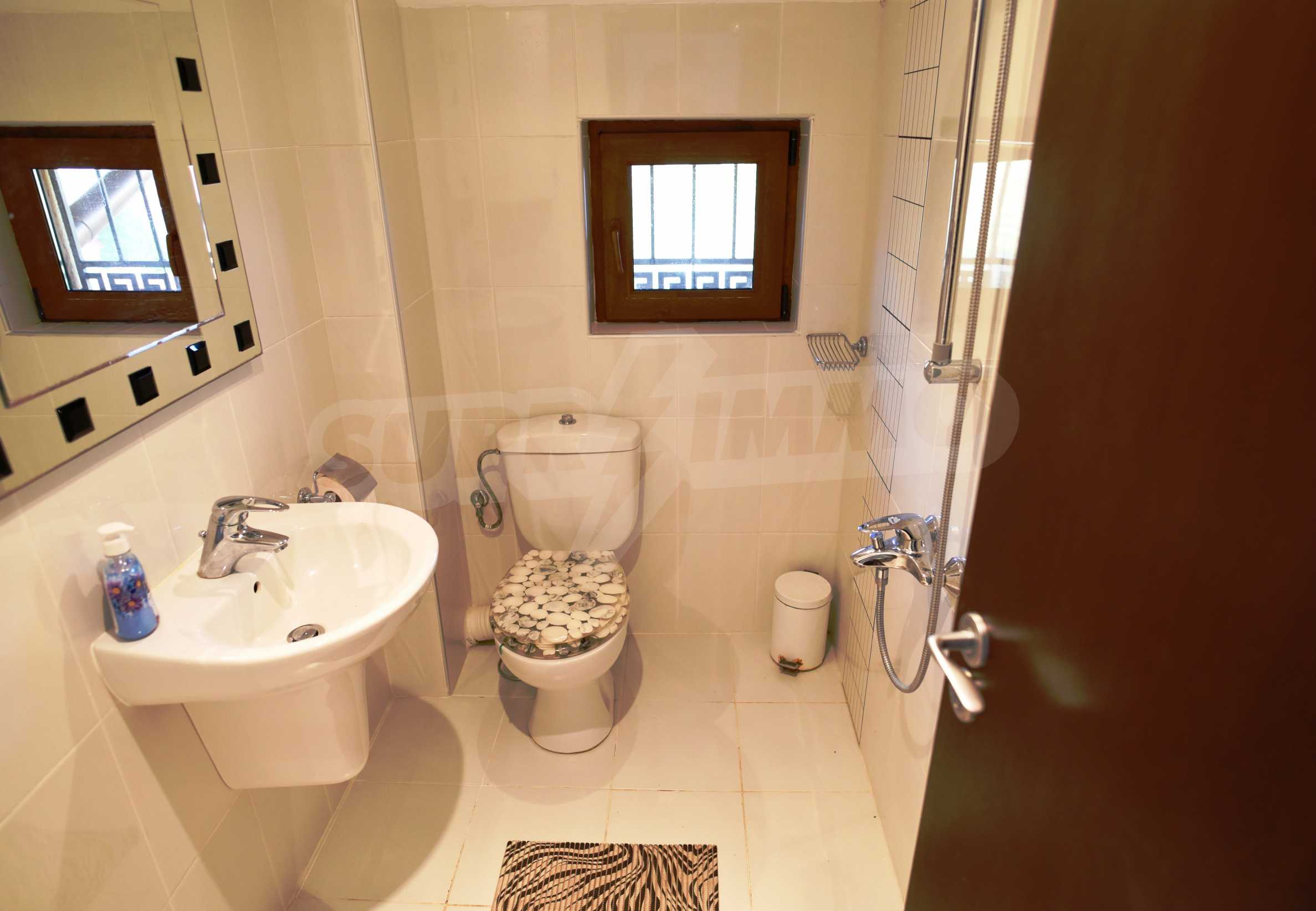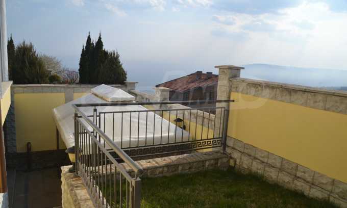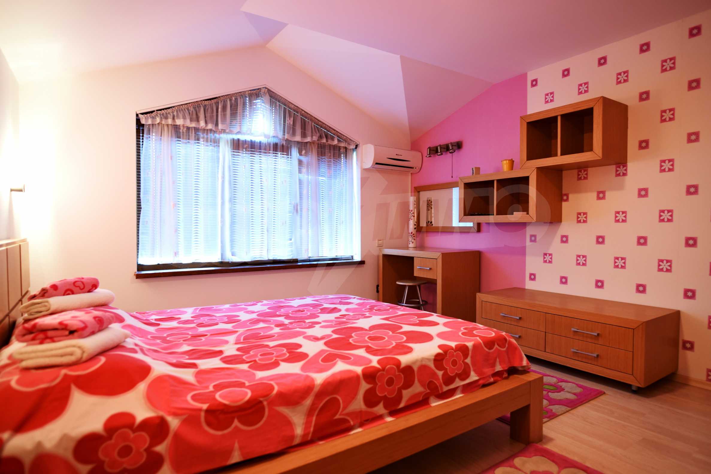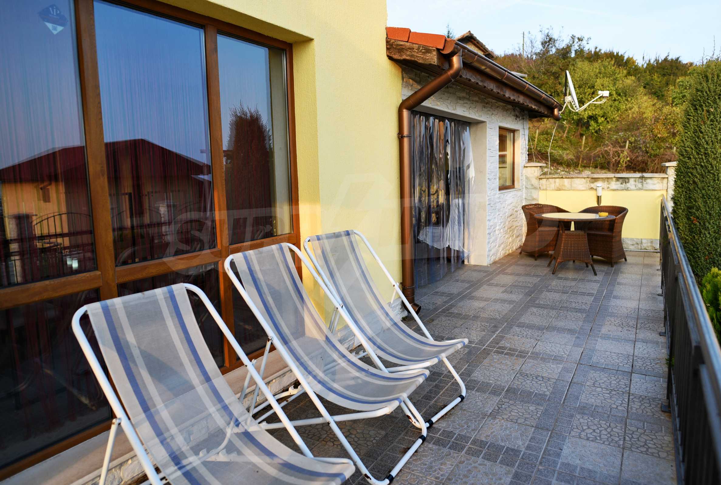 Outside this modern house is surrounded by very well trim garden with lawns and flowerbeds. There is a south facing sea view verandah with direct access from the living room with table and chairs. In the evenings, the stunning view over the enlightened resort of Albena will captivate you. In the private swimming pool sized 3,5 x 3,5 meters guests will chill out after having long day under the hot summer sun. The pool is solely for the use of guests with pool furniture around. Villa „Galini“ has a wonderful spacious roof terrace with BBQ and appropriate furniture.