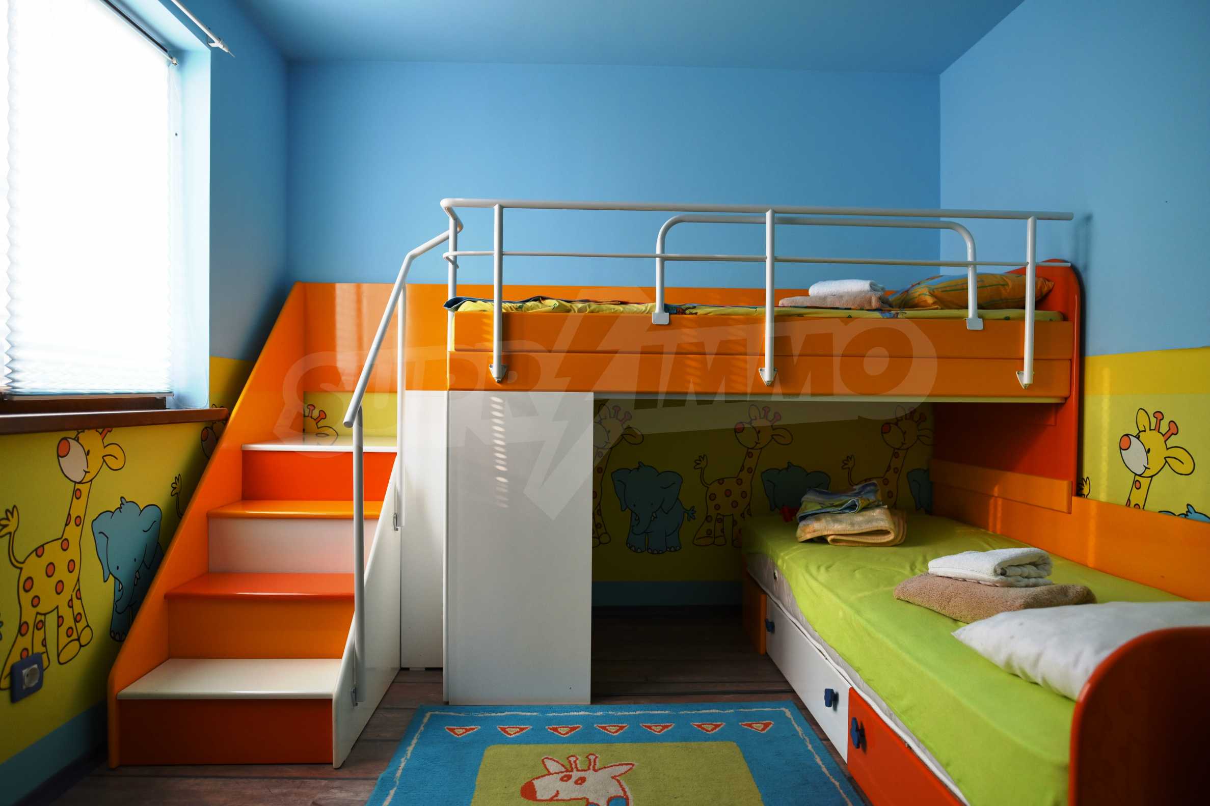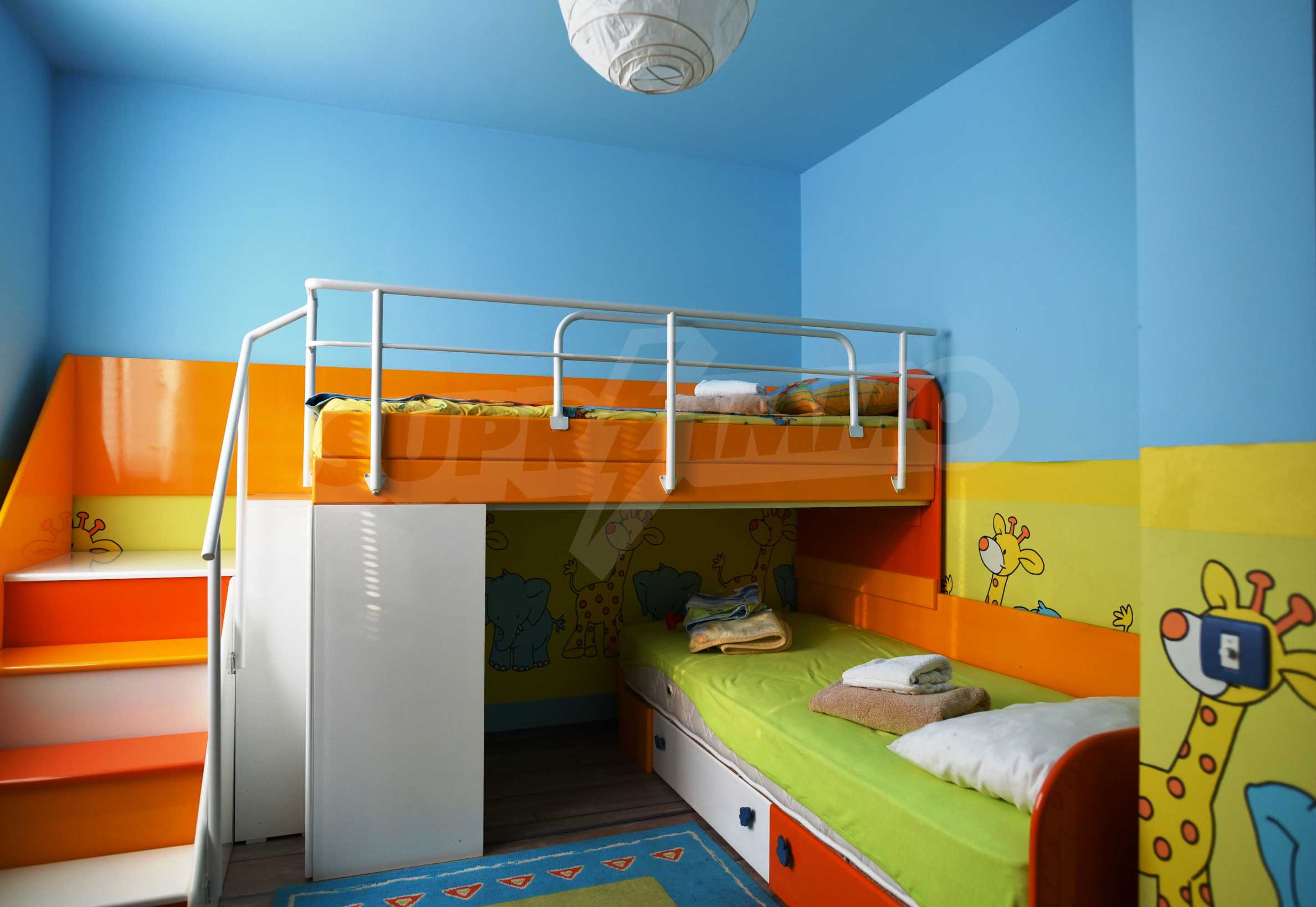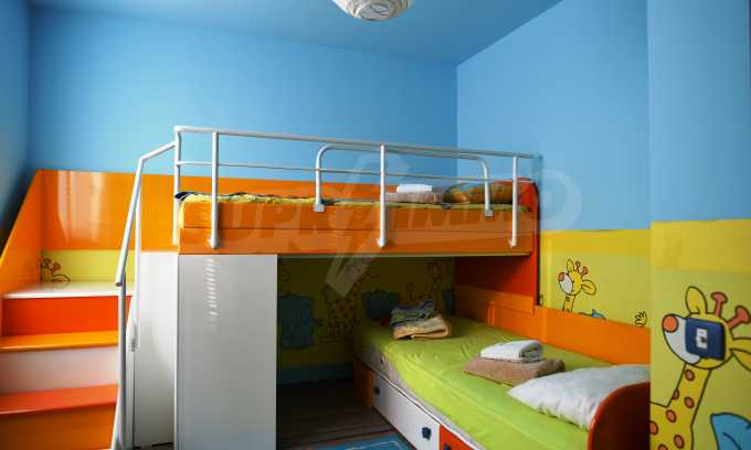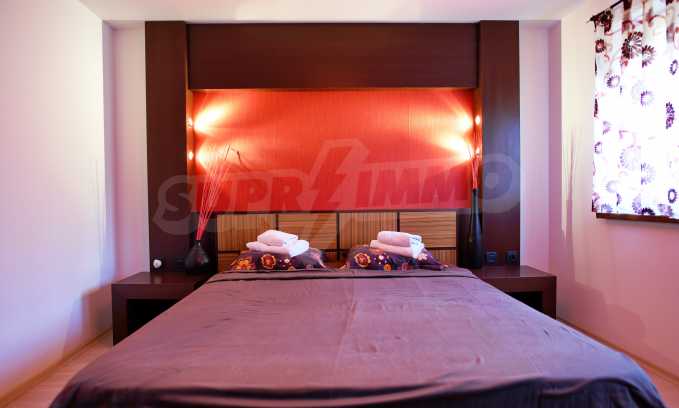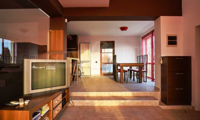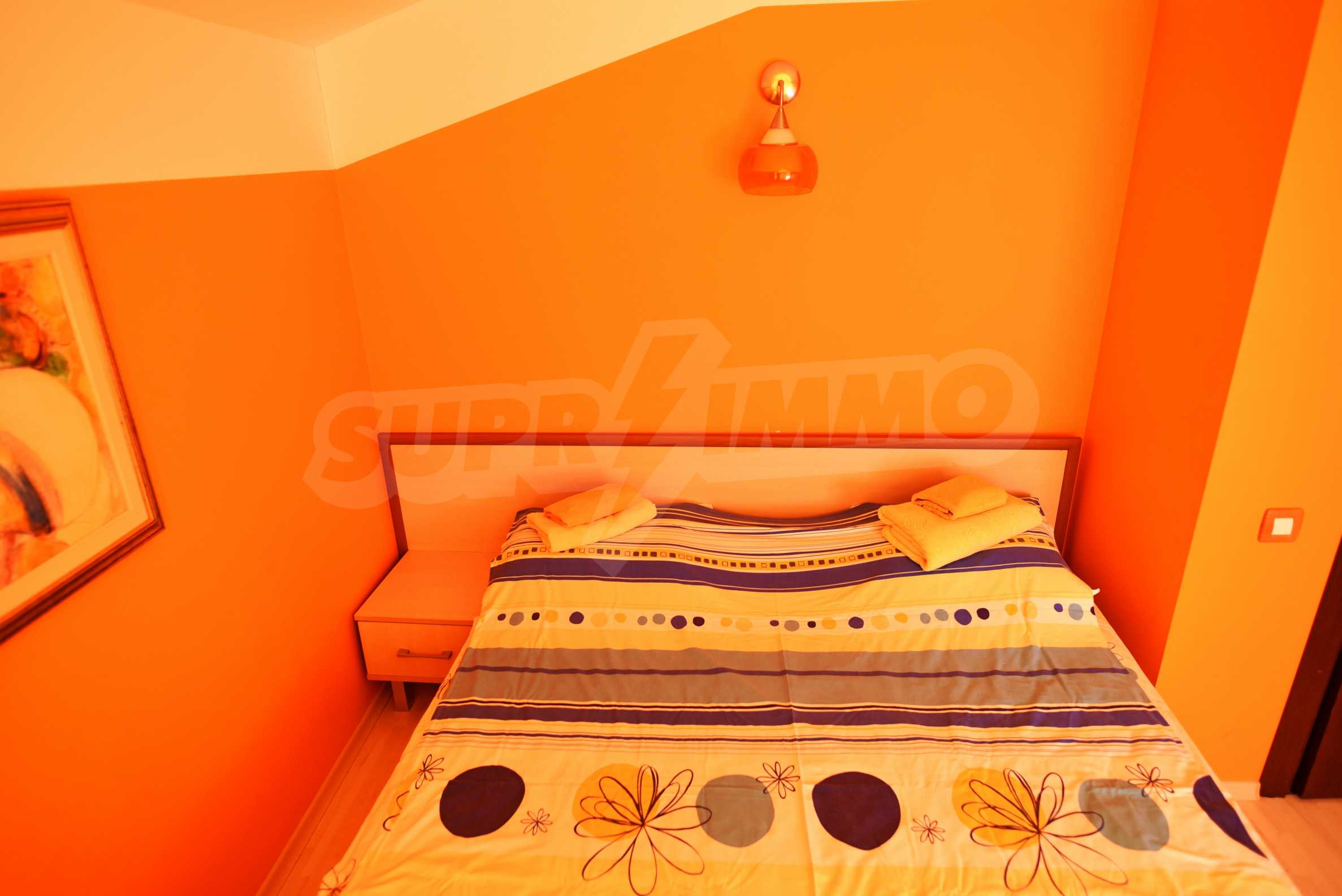 Outside this modern house is surrounded by very well trim garden with lawns and flowerbeds. There is a south facing sea view verandah with direct access from the living room with table and chairs. In the evenings, the stunning view over the enlightened resort of Albena will captivate you. In the private swimming pool sized 3,5 x 3,5 meters guests will chill out after having long day under the hot summer sun. The pool is solely for the use of guests with pool furniture around. Villa „Galini“ has a wonderful spacious roof terrace with BBQ and appropriate furniture.