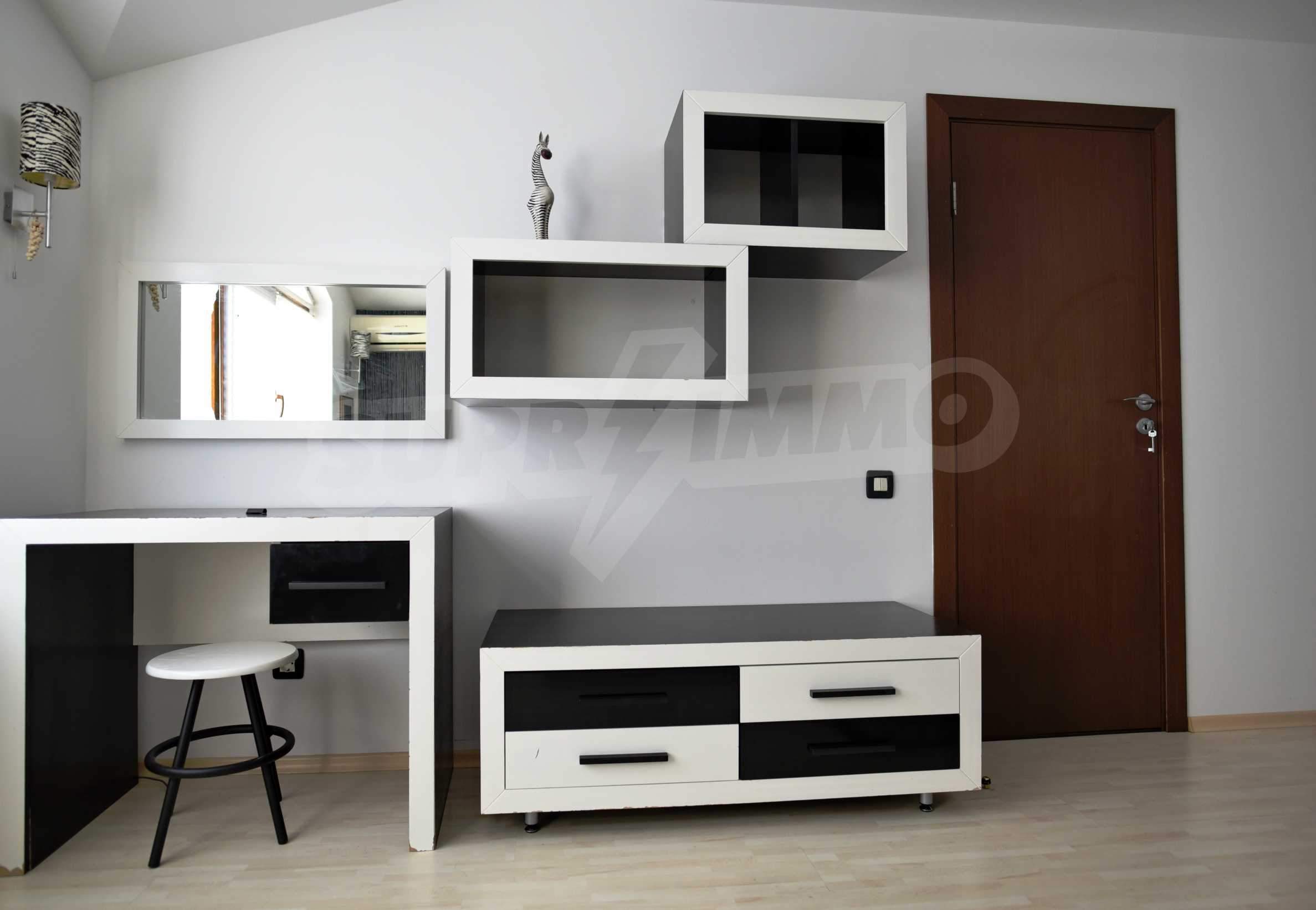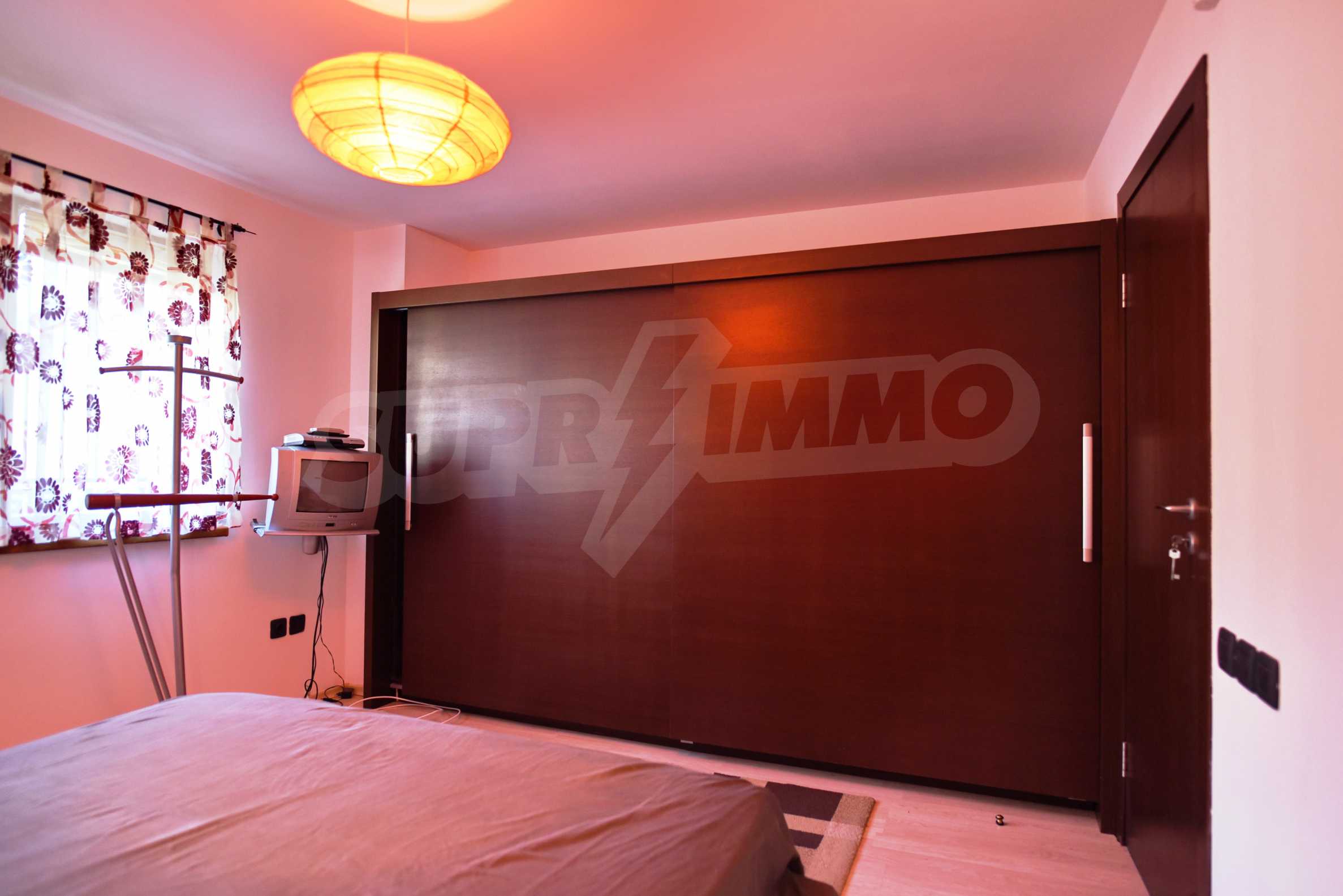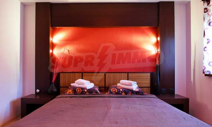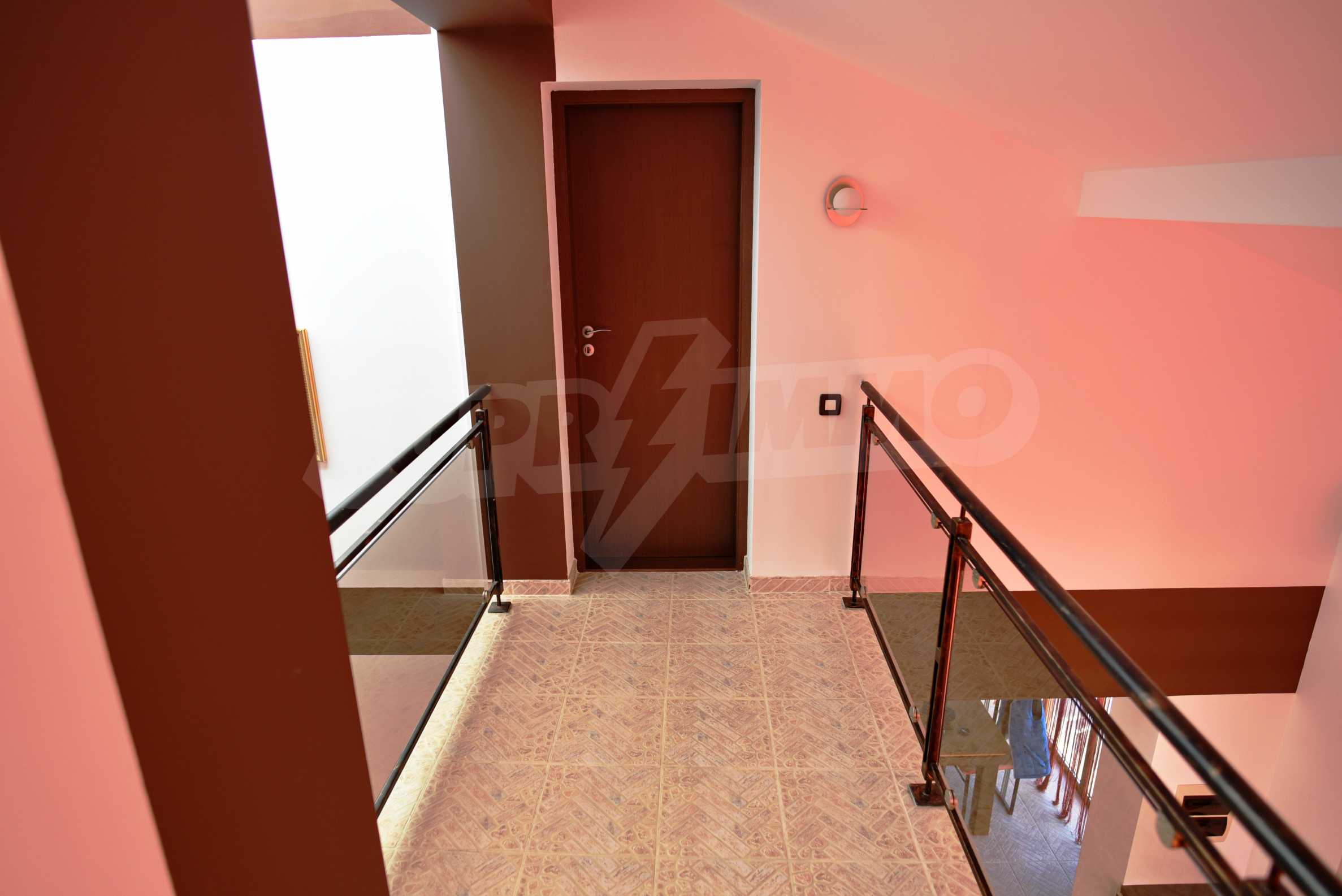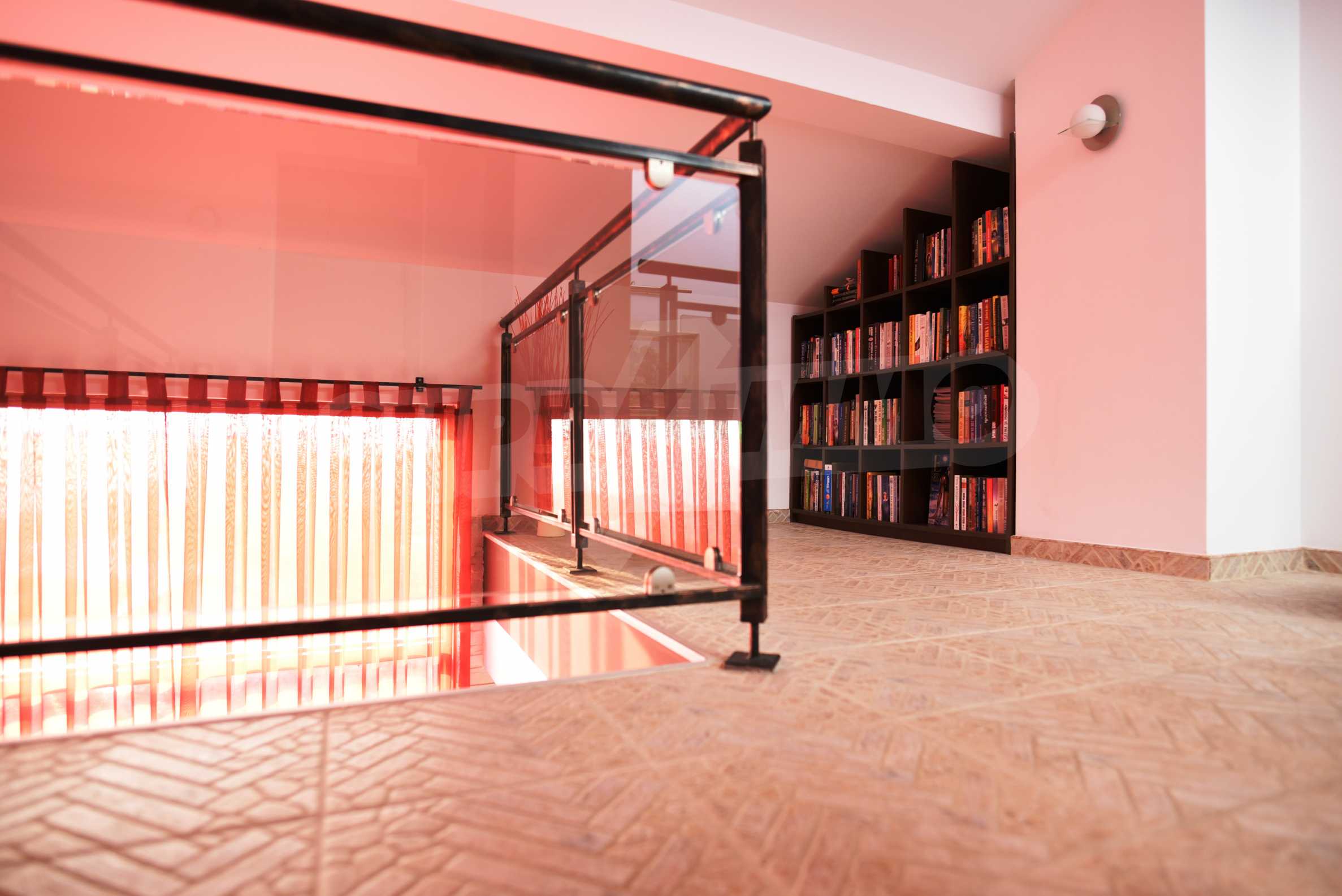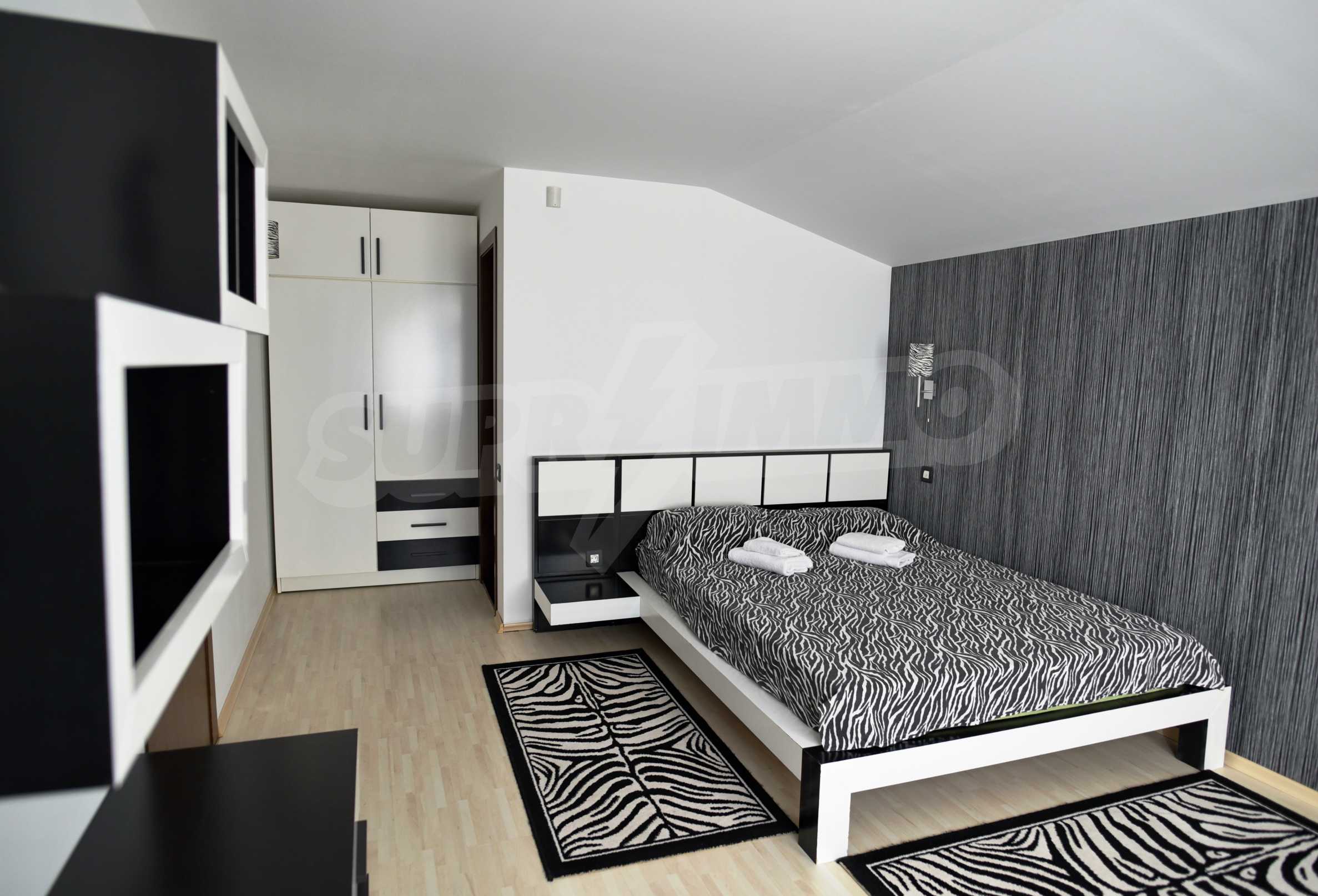 Outside this modern house is surrounded by very well trim garden with lawns and flowerbeds. There is a south facing sea view verandah with direct access from the living room with table and chairs. In the evenings, the stunning view over the enlightened resort of Albena will captivate you. In the private swimming pool sized 3,5 x 3,5 meters guests will chill out after having long day under the hot summer sun. The pool is solely for the use of guests with pool furniture around. Villa „Galini“ has a wonderful spacious roof terrace with BBQ and appropriate furniture.