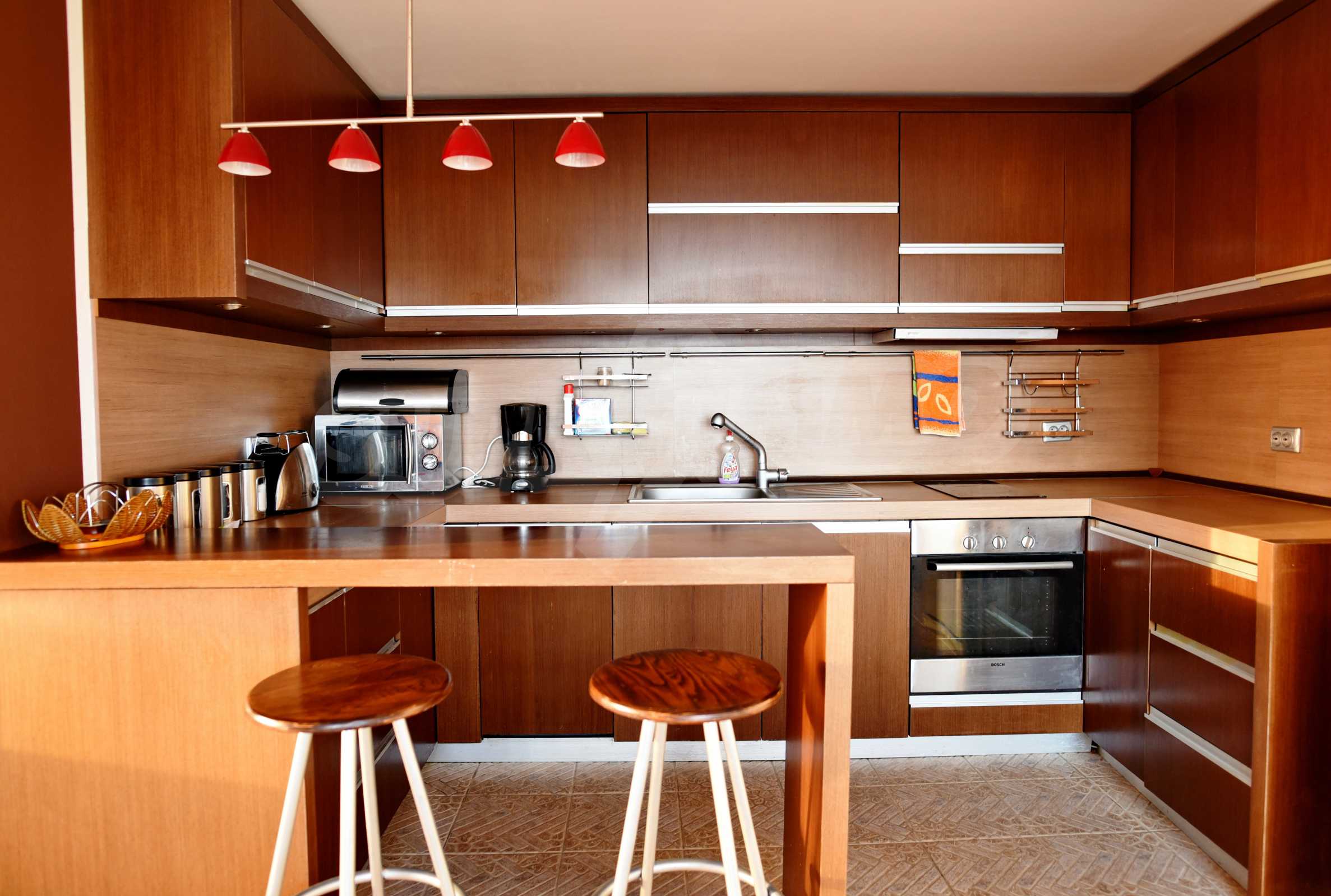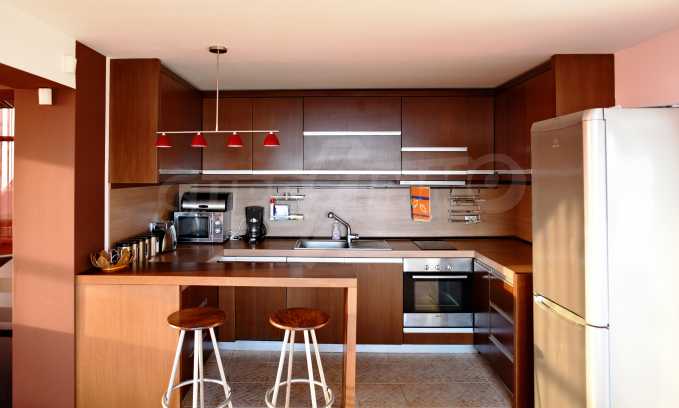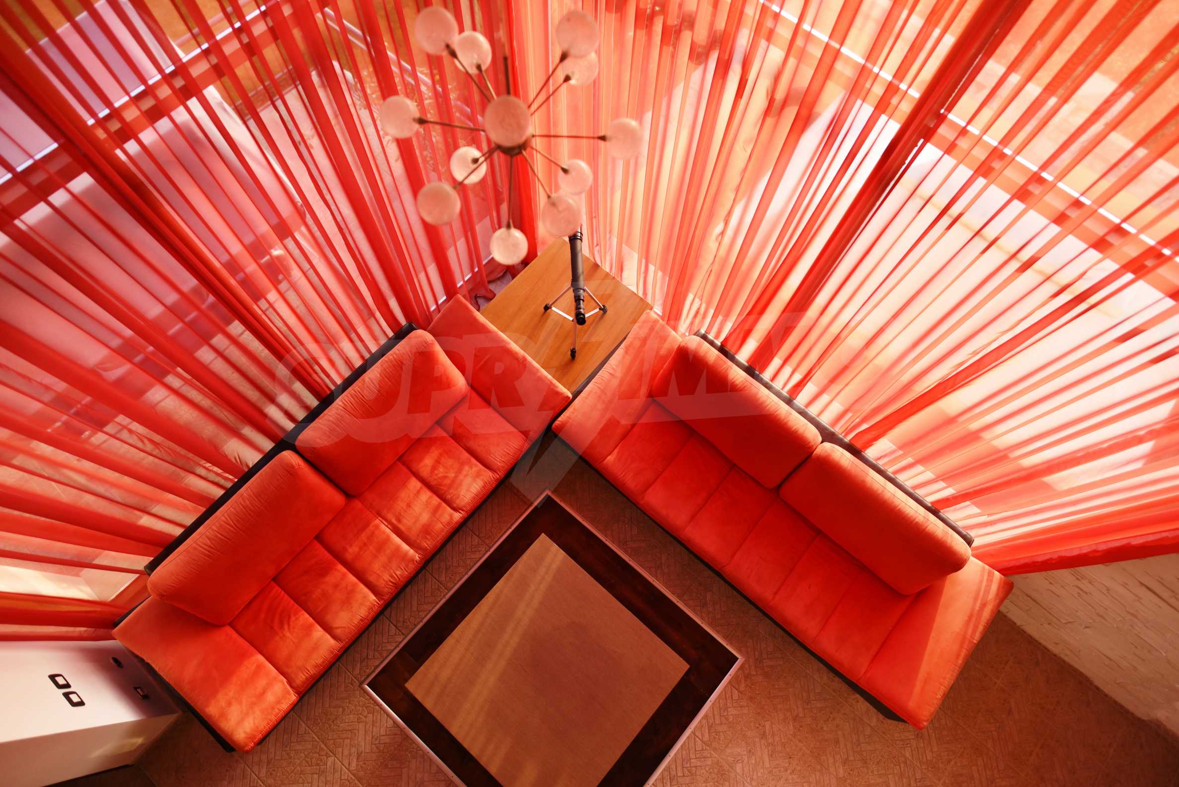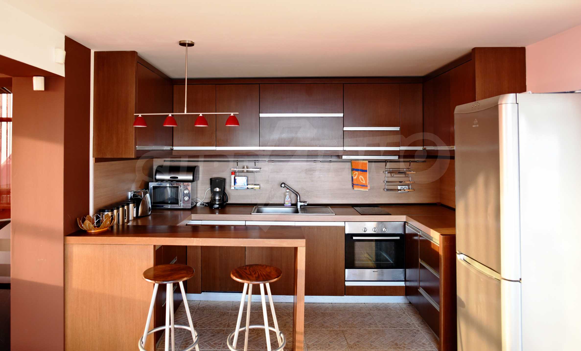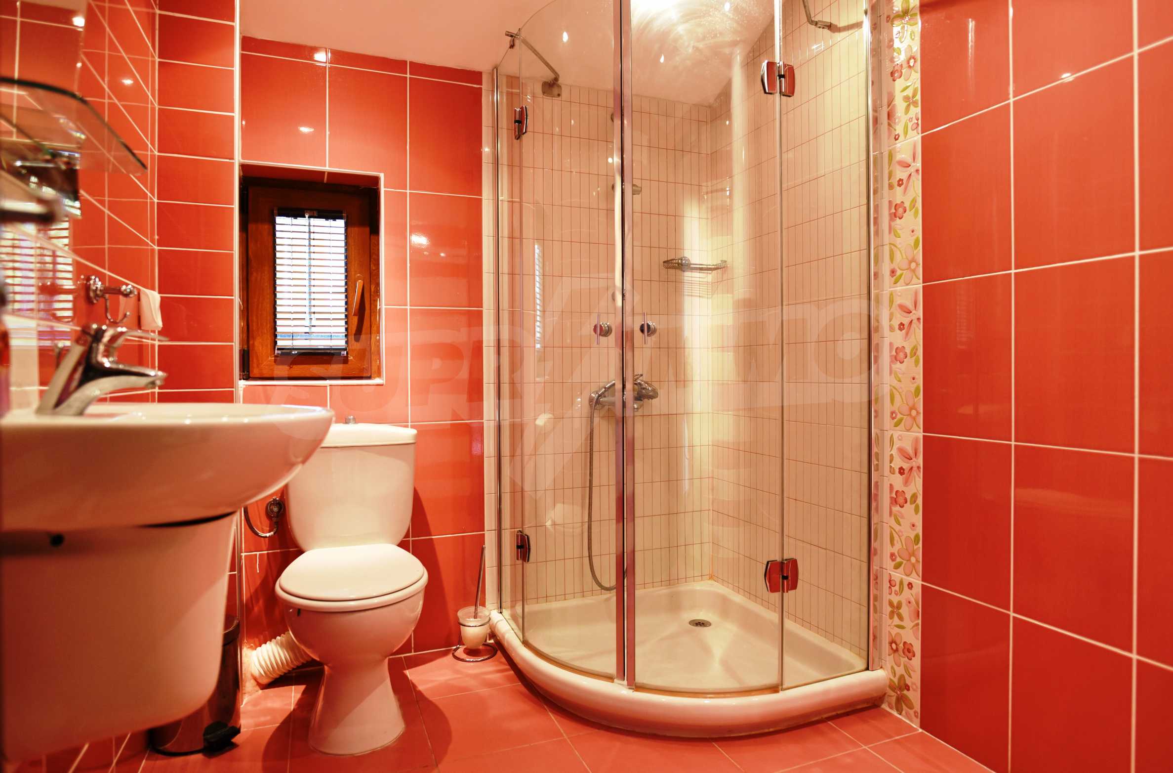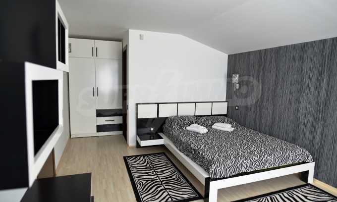 Outside this modern house is surrounded by very well trim garden with lawns and flowerbeds. There is a south facing sea view verandah with direct access from the living room with table and chairs. In the evenings, the stunning view over the enlightened resort of Albena will captivate you. In the private swimming pool sized 3,5 x 3,5 meters guests will chill out after having long day under the hot summer sun. The pool is solely for the use of guests with pool furniture around. Villa „Galini“ has a wonderful spacious roof terrace with BBQ and appropriate furniture.