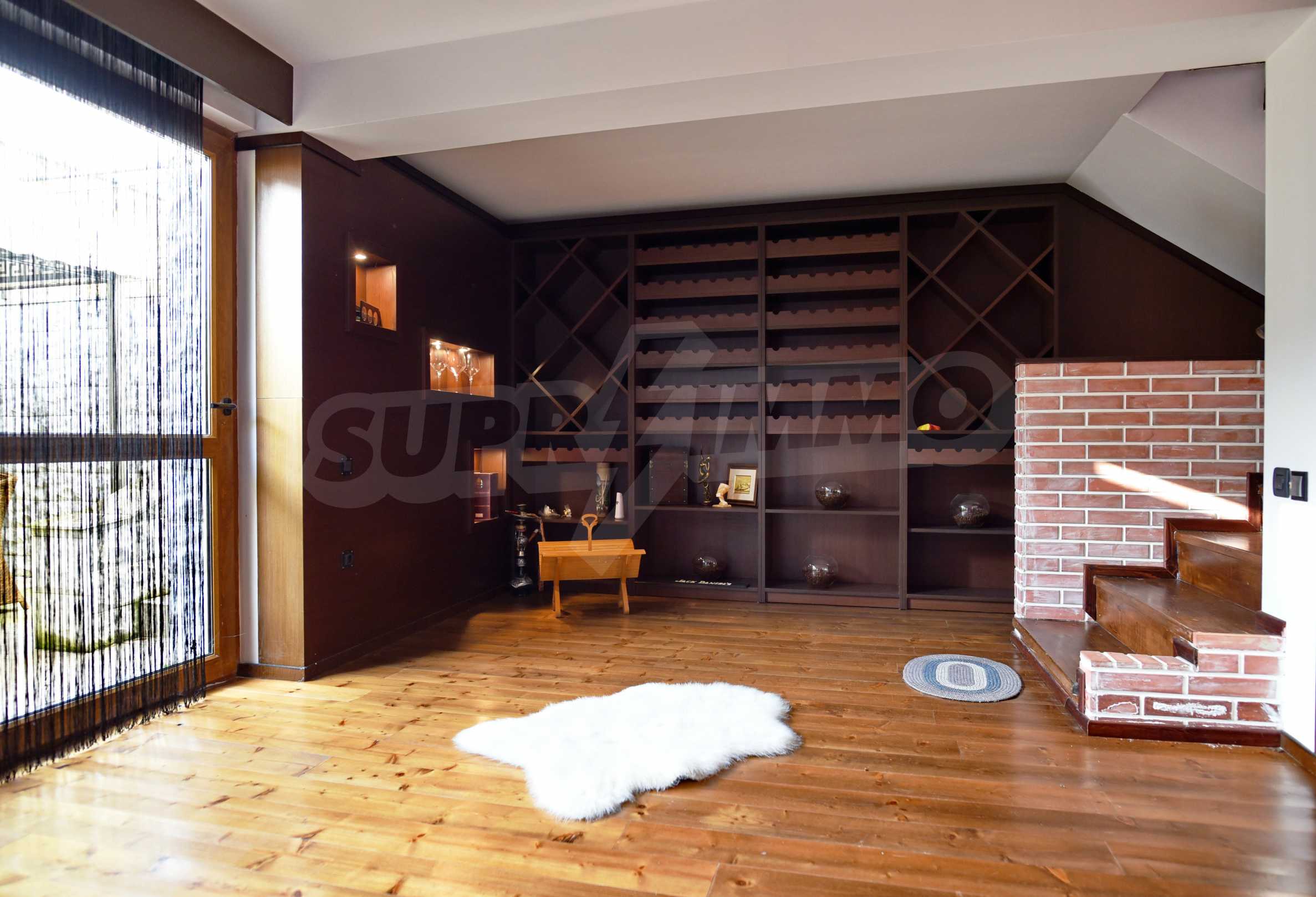 The real advantage of Villa „Galini“ is situated in the basement of the house - when you go one level under the ground, you will find a private cellar with cozy leather sofas area where you can enjoy your privacy away from the children with a glass of a selected wine. The cellar has a direct access to a small secluded outside area with bamboo chairs and table, if you prefer to relish your drink on a fresh air.