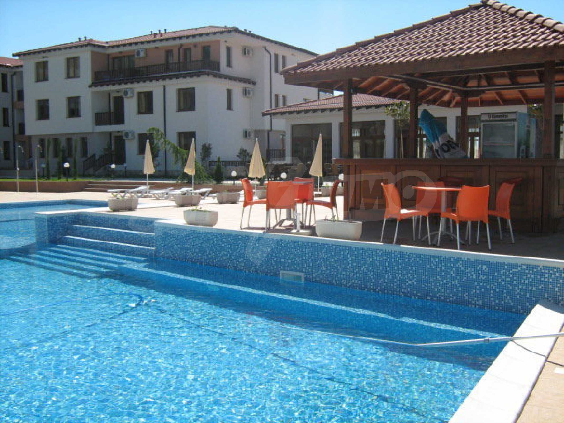 We offer you fully furnished 1-bedroom apartment in a gated complex next to one of the most popular Black Sea resorts in Bulgaria, Albena.