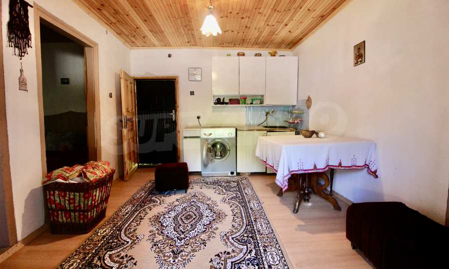 The house is in an old style typical for the area. After the renovation, the characteristic style has been preserved - a roof with stone slabs and wooden ceilings. The property is located in the center of the village on the main street.