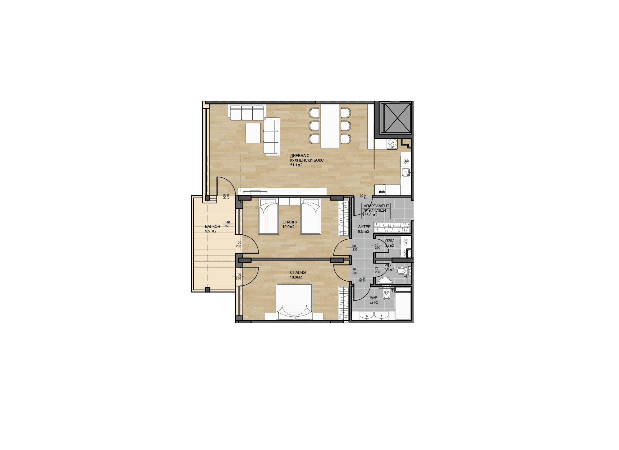 Within a short distance from the property there is a bus stop and a public transport. Close by you can find a hospital, a kindergarten, a pharmacy and a school. Additionally, the area provides the following amenities for a pleasant and comfortable living and entertainment: a restaurant, a spa centre, a sports pitch, a park, a food market and a supermarket. It is also worth-mentioning that there is no heavy industry in a close proximity.