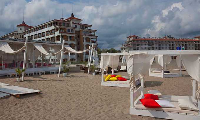We offer to your attention a spacious two-bedroom apartment on the first line. The resort complex "Regina Mare" is situated on the coast, in the southern part of the Bulgarian Coast, in the city of Tsarevo, 60 km from the town of Burgas. The hotel is located near the beach of Nestinarka, which is located in the old part of Tsarevo. The complex is built in the area, characterized by extremely rich and varied flora and fauna.