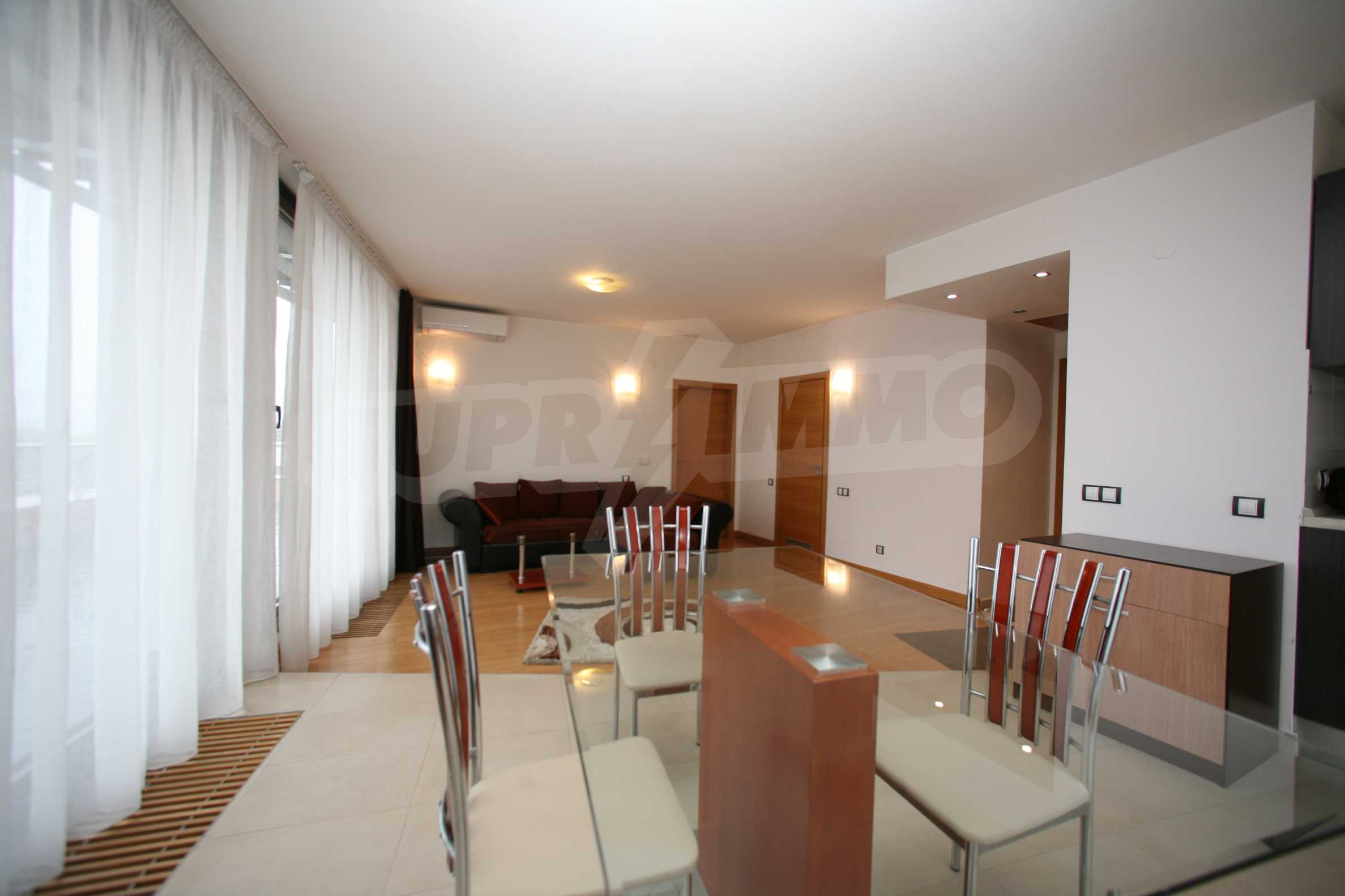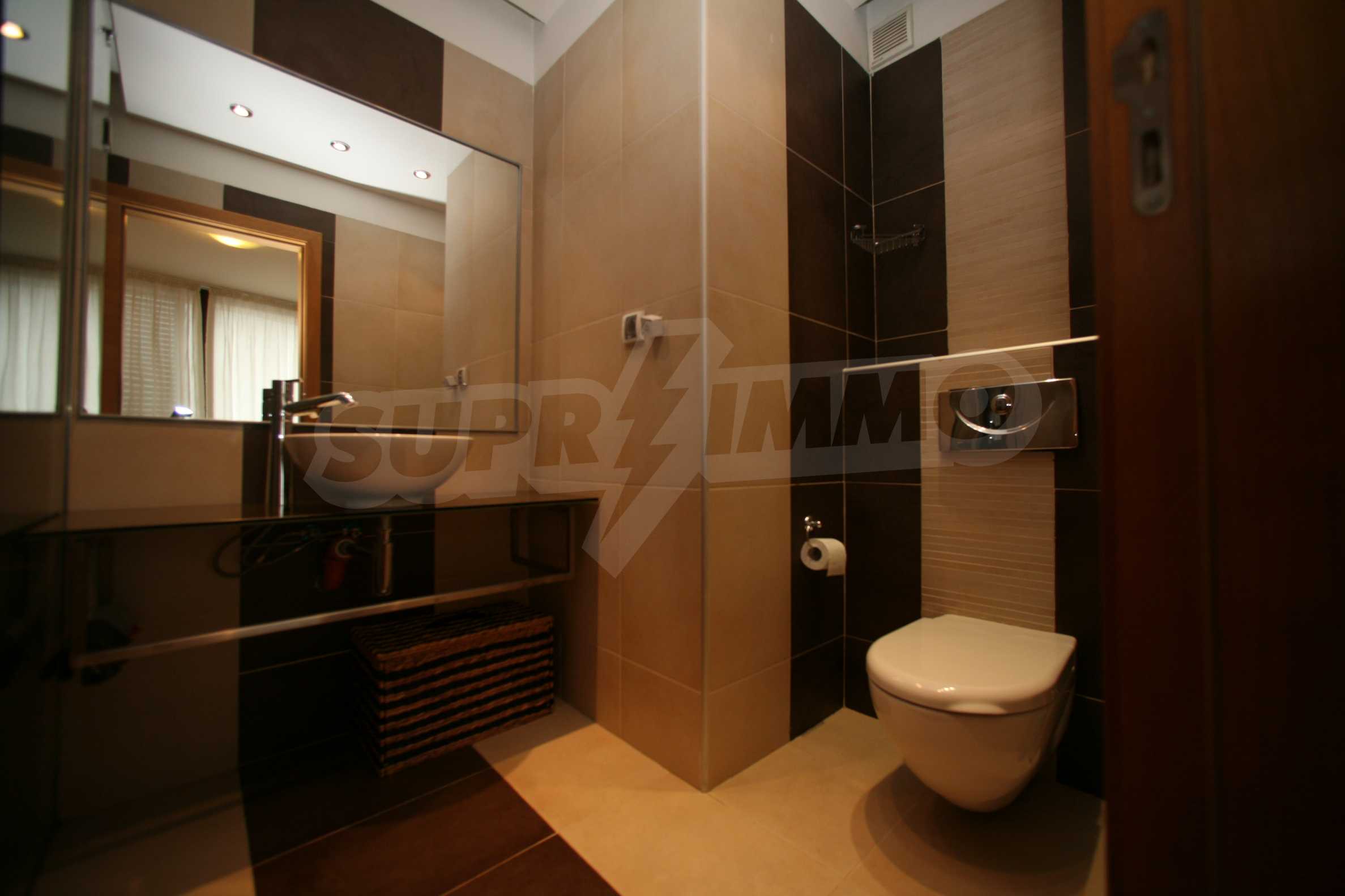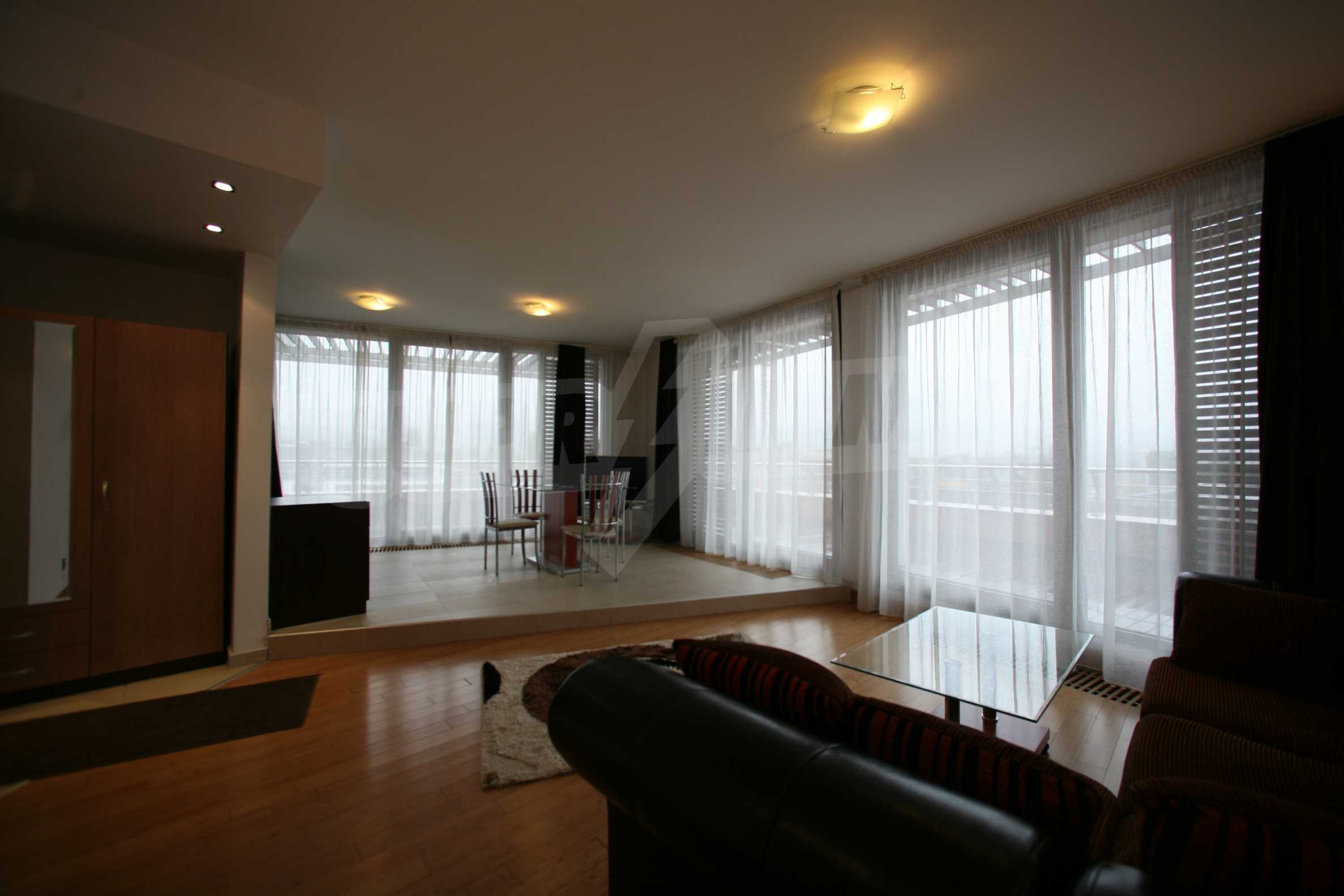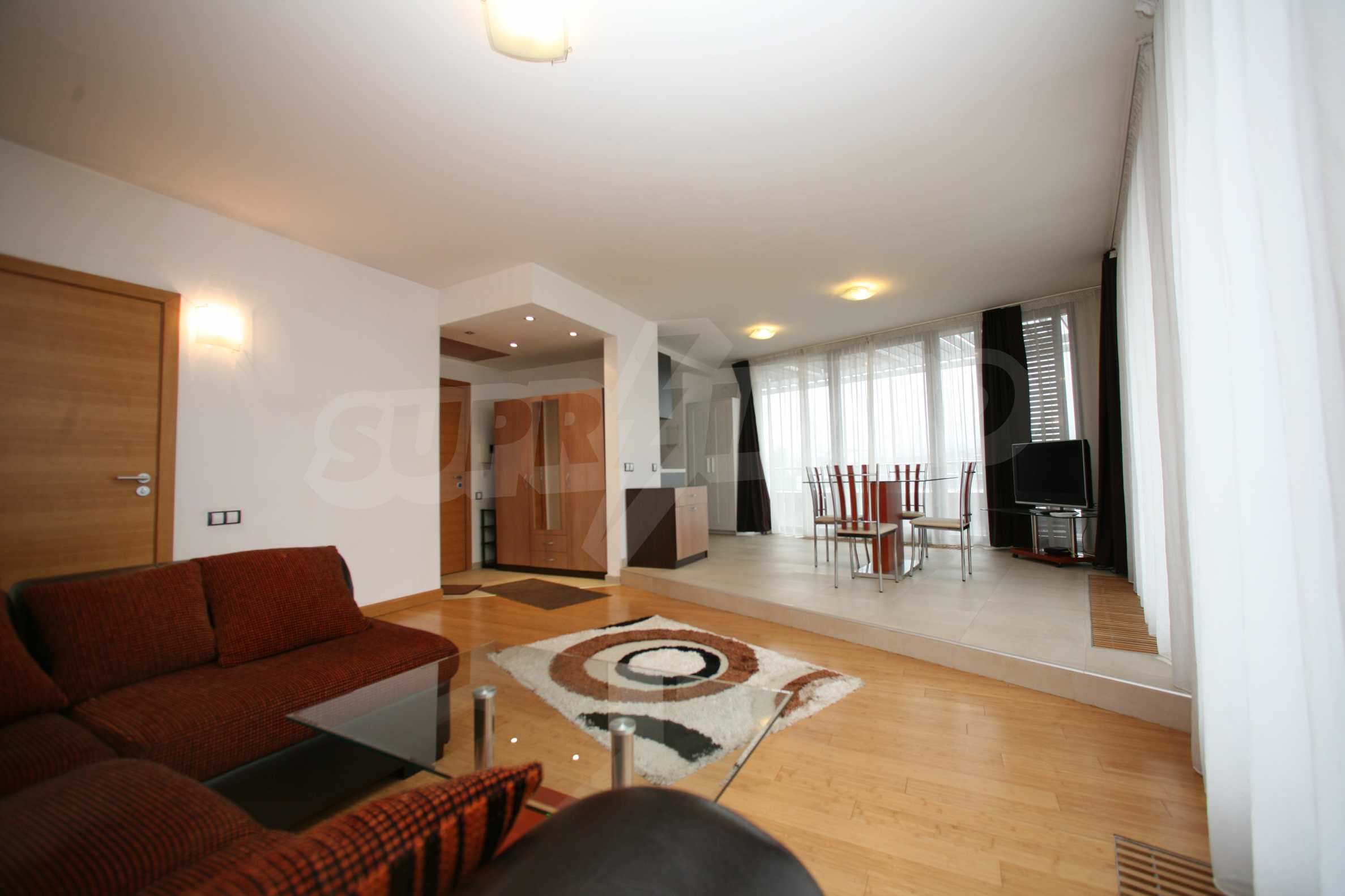 We offer you this 1-bedroom apartment with a total area of 87 m2 which is situated in a gated development. It was constructed in 2011 and has luxury common parts. The property has local heating. Aluminium window frames, external insulation, interior doors, latex painted walls, parquet flooring and tiled flooring are available in the property. The property is connected to electricity, gas heating, water and communal sewage system. Some of the other available facilities that you will certainly consider important include: a balcony, a bathroom with toilet, an internal bathroom, an internal toilet, a parking space, a storage room, a gym, a lift, a porter, a swimming pool, internet and a wi-fi. From the inside you will be able to enjoy wonderful town views.